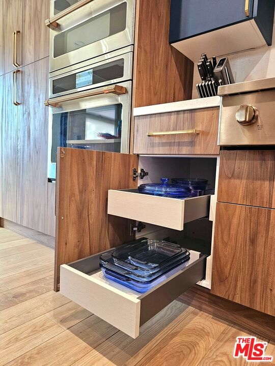 Nestled above the iconic Beachwood Canyon and Hollywoodland, 6194 Rodgerton Drive is a beautifully remodeled, move-in-ready mid-century retreat built in 1965. Thoughtfully updated from top to bottom, this 1,616 sq. ft. two-level home blends timeless architecture with modern comfort and sophistication. Featuring 3 spacious bedrooms and 2.5 bathrooms, the residence offers bright, airy living spaces framed by sweeping canyon, city, and treetop views. Multiple decks and balconies invite you to enjoy LA's legendary sunsets and peaceful hillside ambiance. The cozy living room is anchored by a remote-controlled gas fireplace, while the dining area is surrounded by picture windows that create a stunning backdrop for everyday living and entertaining. The expansive primary suite serves as a private sanctuary, complete with a walk-in closet and a spa-inspired ensuite bath featuring a double vanity and heated flooring. This home has been extensively modernized, making it truly turnkey. High-end upgrades include: New windows and sliding doors, New double entry doors, New insulated garage door, Fully remodeled kitchen with Cafe appliances, Updated bathrooms, New flooring throughout, Brilliant smart home system, Ring cameras and alarm system, and so much more. Every detail has been curated to enhance comfort, style, and everyday ease. An attached two-car garage plus driveway offers generous parking options. Unlock even greater potential with the unfinished lower level, ideal for conversion into additional living space or a possible ADU (buyer to verify). As-built plans, feasibility study, and preliminary design concepts for finishing the space are available upon request. Buyers may also explore the possibility of adding a rooftop deck with Hollywood Sign and city views (buyer to verify). Set in the sought-after Beachwood Canyon community, the home offers a serene, nature-inspired setting perfect for creatives and professionals seeking a peaceful escape. Yet it remains moments from LA's world-class amenities, including Griffith Park hiking trails, the Hollywood Reservoir, and the Hollywood Sign.Remodeled, upgraded, and move-in ready, this home invites you to settle in and start living the quintessential Los Angeles hillside lifestyle. Welcome home! Listing agent has a partial ownership in the property.