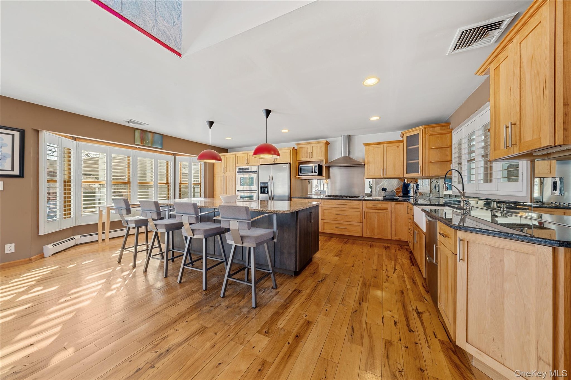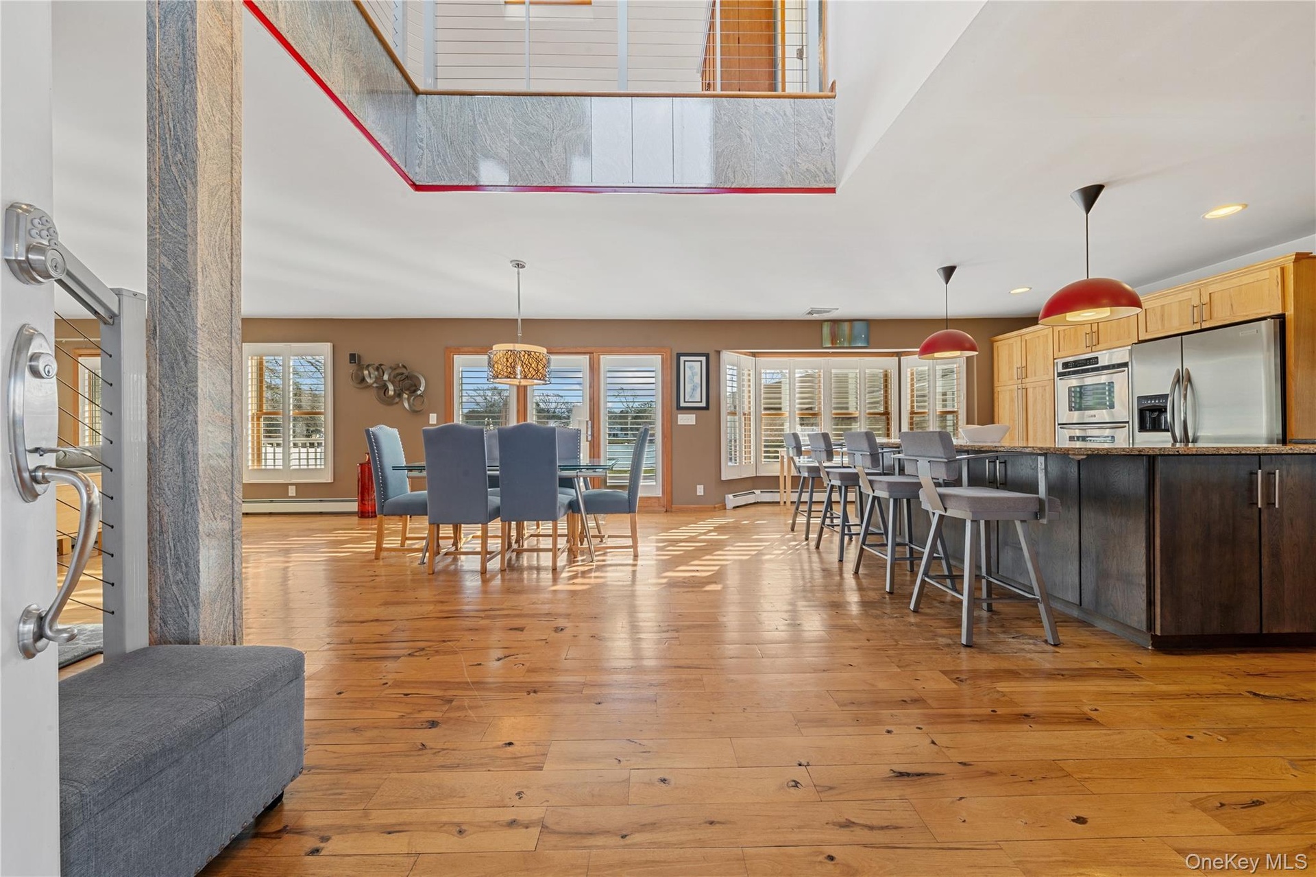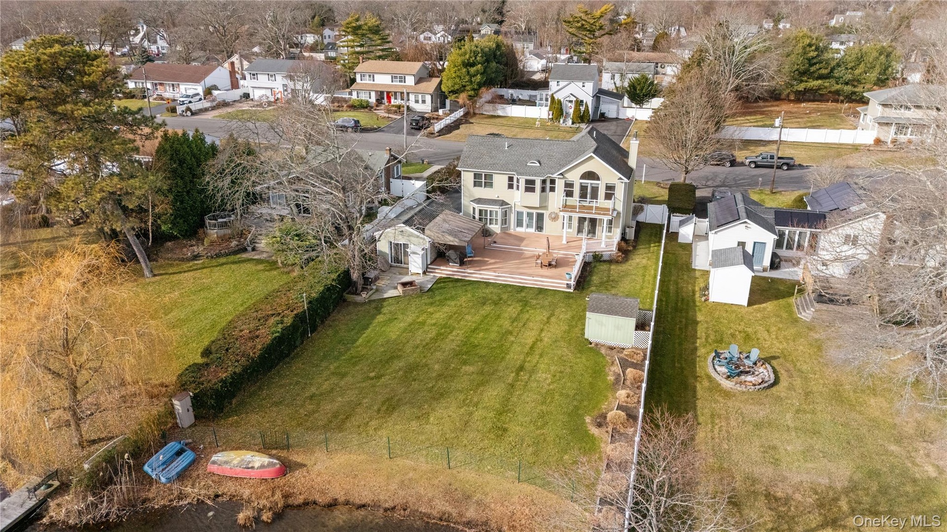 This waterfront modern Colonial, dramatically expanded in 2004, was thoughtfully designed to capture breathtaking, unobstructed views of Dunton Lake from nearly every angle. Offering over 2,000 square feet of contemporary living space, the home features a flexible, open floor plan highlighted by custom wide-plank hickory flooring and the convenience of a first-floor guest bedroom. Upon entering, you’re welcomed by a striking two-story foyer that sets the tone for the bright and airy interior. The main level flows seamlessly from room to room, enhanced by abundant natural light that accentuates the stunning water vistas. The oversized eat-in kitchen serves as the heart of the home, complete with granite countertops, rich pecan cabinetry, a center island with seating, stainless-steel appliances, a dual oven, and a gas cooktop—perfect for everyday living and entertaining alike. The second floor continues to impress and offers two additional bedrooms and a versatile sitting room—ideal for a home office, reading nook, or lounge. The modern full bathroom has been tastefully upgraded and includes a whirlpool tub, separate shower, and dual vanity, with convenient access from both the hallway and the primary bedroom. Every room on this level showcases tranquil views of Dunton Lake, enhanced by unique architectural details and an abundance of windows—including elegant Palladian designs. The primary bedroom elevates the experience even further with its private Juliet balcony overlooking Dunton Lake—an unforgettable highlight and the perfect place to savor your morning coffee while taking in the ever-changing scenery. Terrific storage options are available in the full basement and detached one-car garage. Additional interior highlights include Marvin windows with plantation shutters, Central Air, 200-amp electric service, and a generator for peace of mind. Outside, enjoy a two-level deck, fire pit area, outdoor shower, and in-ground sprinklers—all set on a beautifully landscaped 0.29-acre property. Fire Island beaches, local ferries, and vibrant Patchogue Village are just a short ride away. Your dream waterfront lifestyle awaits!
