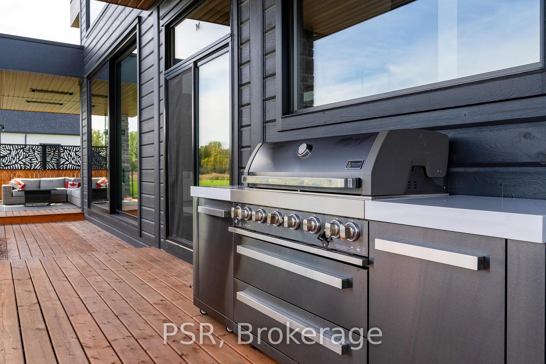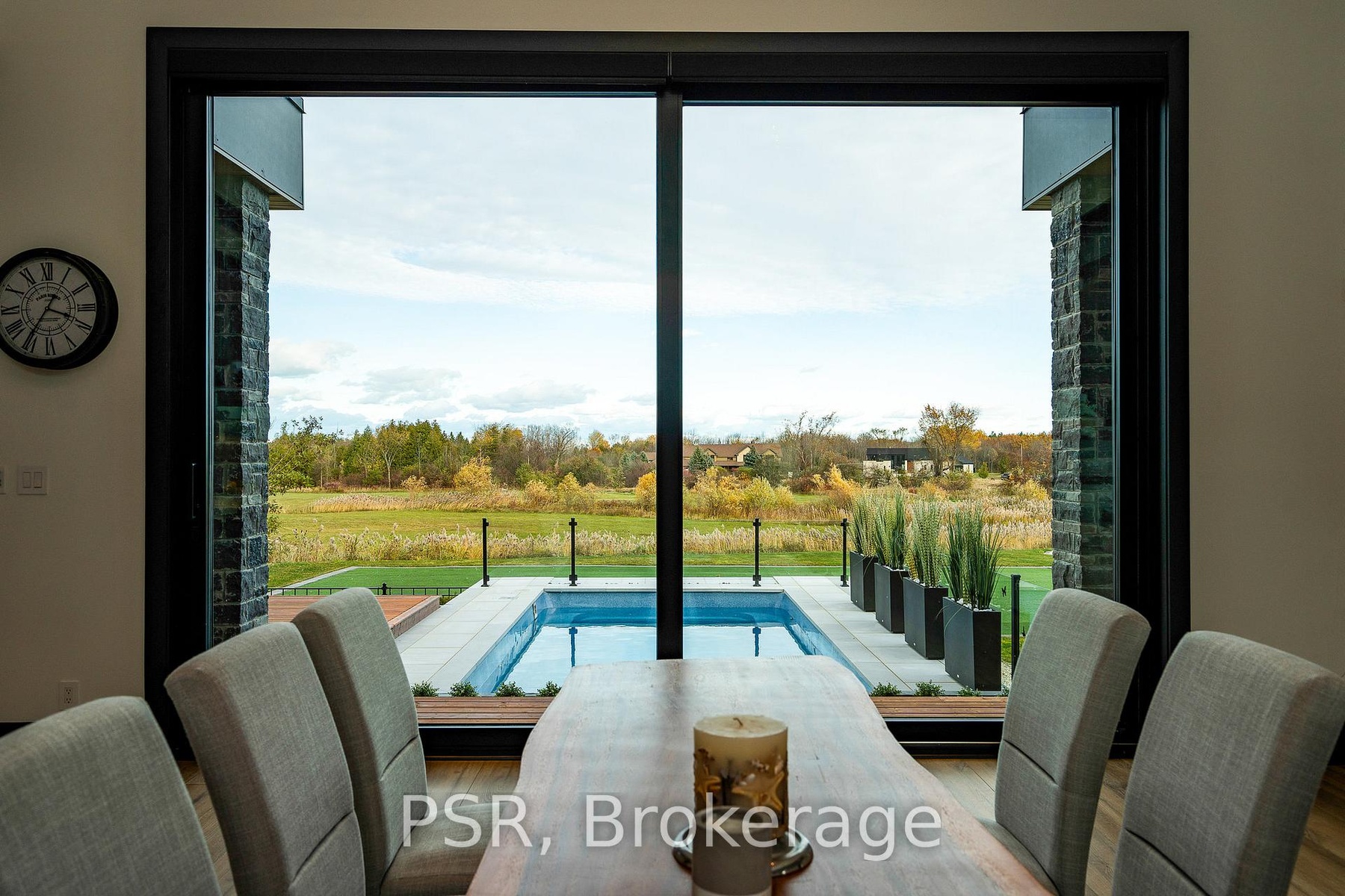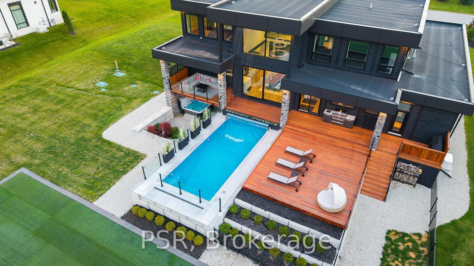 Welcome to the extraordinary turn key living experience offered by 4 Raintree Court, nestled in the heart of Ontario's ski country. This luxurious home in the exclusive Windrose Estates combines elegance and sophistication with functional amenities for today's modern families. This custom-built home offers five spacious bedrooms, seven bathrooms, a home theatre, fully equipped gym, sauna, hot tub and heated pool over 8,600 square feet of interior space on a one-acre lot. High ceilings, custom lighting design, multiple skylights and walls of windows work with the wood accent walls to create a contemporary space that is flooded with light. In-floor radiant heating keeps the space cozy and warm throughout ski season as you sit by the fireplace watching the snow fall. The grand kitchen and dining area serve as the heart of this home, with soaring 23ft ceilings and the 10ft high by 16 ft wide sliding doors overlooking the backyard and 10-acre parkland beyond. Equipped with top-of-the-line appliances and designer counters and finishes, the kitchen is a perfect space for those who love to cook and entertain. The outdoor entertainment area includes a new outdoor kitchen, conversation area featuring patio heaters, heated pool and a waterfall that cascades from the upper roof into the pool. The property offers stunning mountain views of Osler Bluffs and Blue Mountain which can be enjoyed from throughout the home. Both resorts are less than ten minutes from the estate, as is downtown Collingwood. Simcoe County is known for its vibrant community atmosphere and natural beauty. From hiking trails to farmers' markets and local festivals-there's always something to see or do here. Notably, Clearview Township allows you to snowmobile or side by side directly out of your own property to the trails located right in the neighbourhood. 4 Raintree Court is more than just a house-it's a lifestyle destination that combines stylish luxury living within your own personal sanctuary.