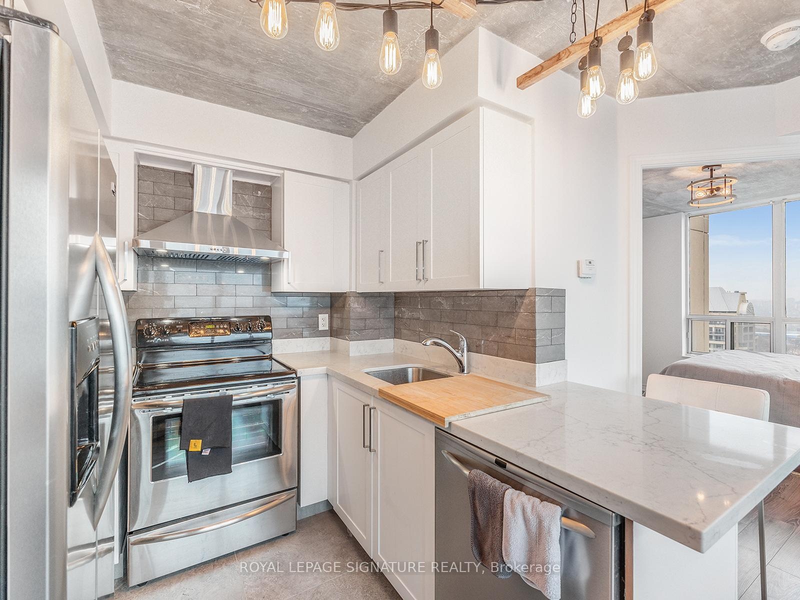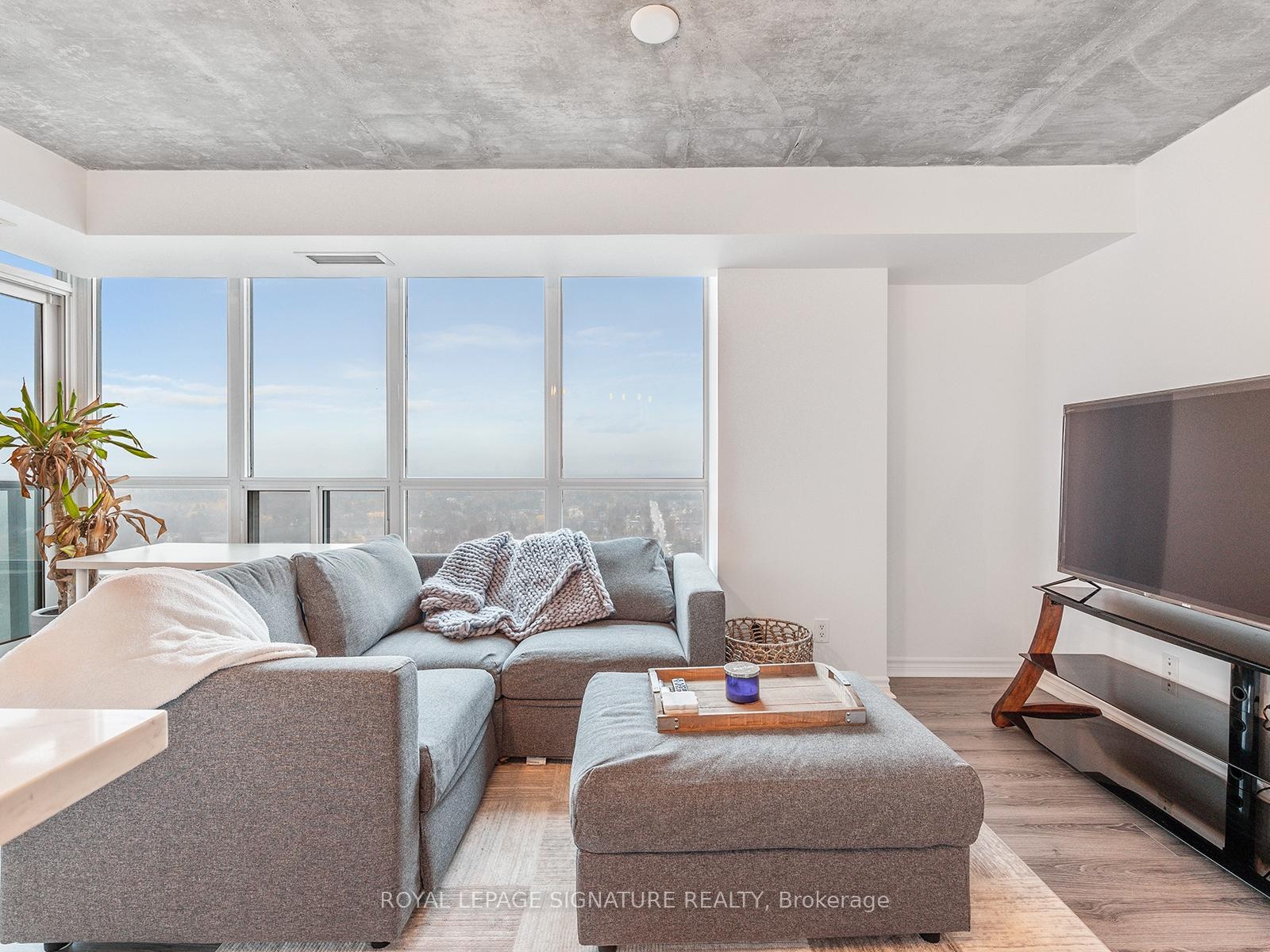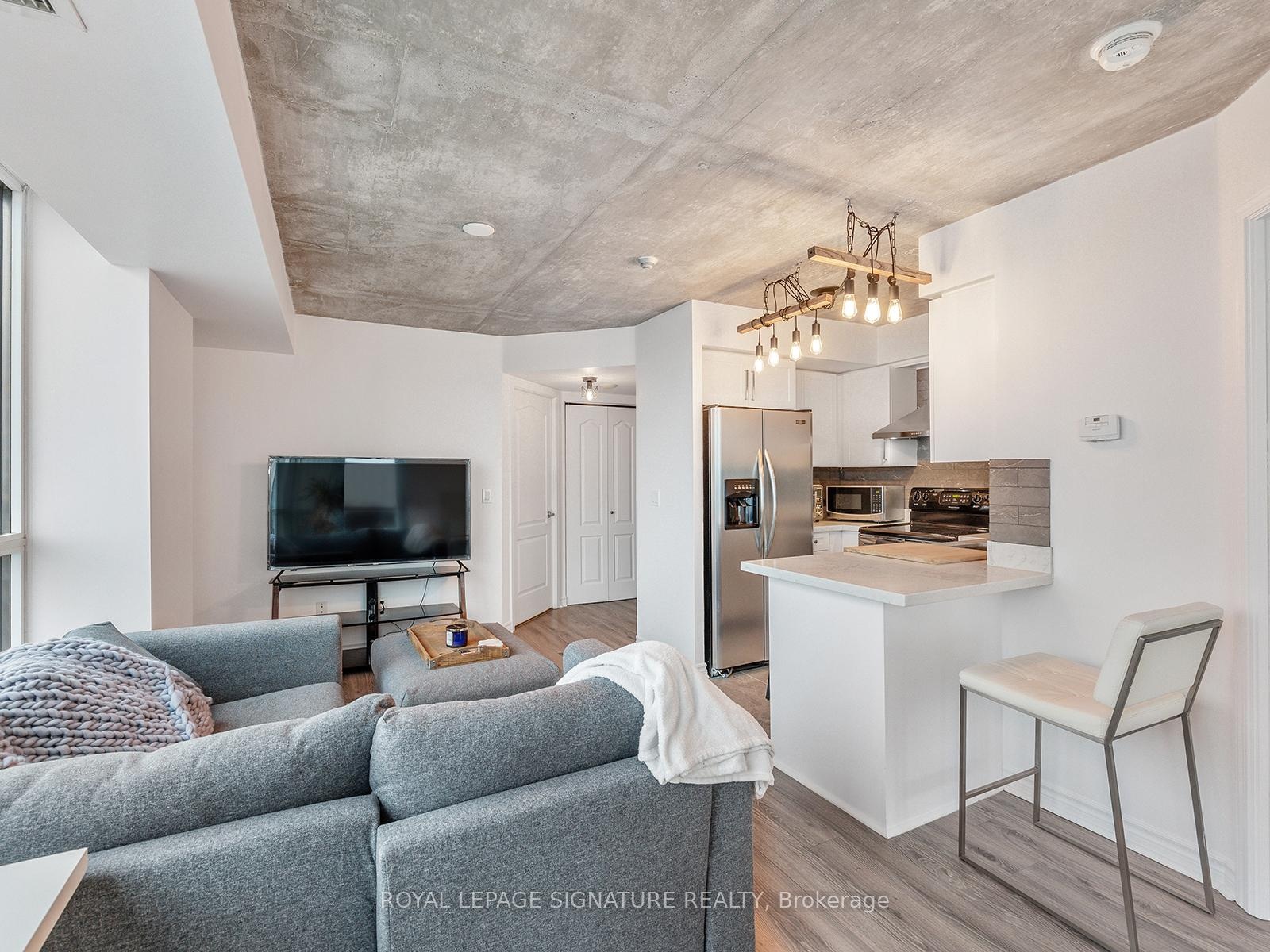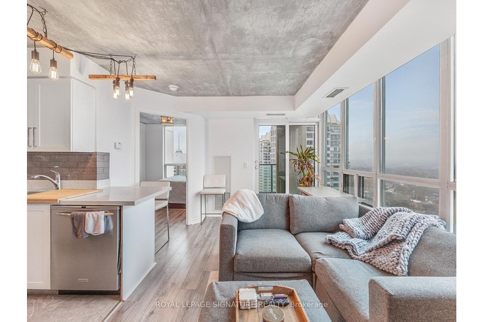 Luxury Bayview Village Condo. This unique, upgraded unit features exposed concrete ceilings, upgraded laminate flooring, granite countertops with a breakfast bar, stainless steel appliances, new light fixtures, large windows, and a walk-out balcony with panoramic city views. Abundant natural light fills this spacious one-bedroom throughout the day. Enjoy the convenience of walking to parks, shops, transit, and everything downtown has to offer. Amenities include a 24-hourconcierge, gym, and more.