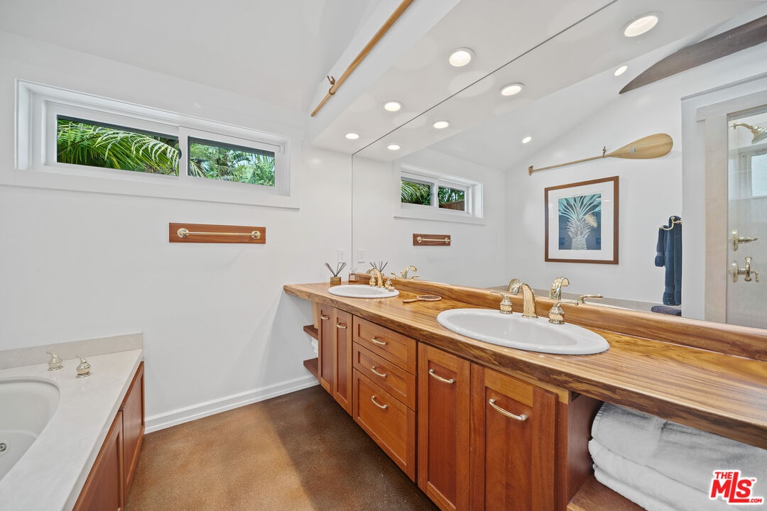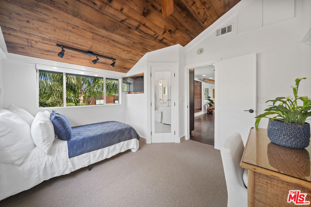 Set behind gates on one of Point Dume's most desirable streets, this private coastal refuge blends relaxed California living with a refined, resort-style atmosphere. Surrounded by lush landscaping and tall palms, the single-story main residence opens to expansive sun-filled spaces, warm wood accents, and seamless indoor-outdoor flow. The heart of the home is an impressive chef's kitchen appointed with richly toned cabinetry, striking natural-stone counters, professional-grade Viking appliances, and an oversized center island designed for cooking, gathering, and entertaining. The adjoining dining and living areas feature dramatic exposed beams, skylights, and large glass doors that frame views of the tropical backyard. The serene bedroom suites offer peaceful garden outlooks, vaulted wood ceilings, generous closet space, and beautifully remodeled bathrooms finished with stone surfaces, spacious showers, and a freestanding soaking tub. An additional flexible room functions well as an office or cozy lounge. A powder room with direct access to the yard adds convenience for poolside living. Outside, the property becomes a private retreat with a large pool, expansive patio areas for dining and lounging, vibrant greenery, and an outdoor bathing pavilion with a sculptural clawfoot tub. Mature hedges provide exceptional privacy throughout. A detached structure accommodates use as a gym along with abundant storage, while the main driveway provides generous parking. Located moments from Point Dume's shops, schools, and world-renowned beaches, this offering presents an exceptional opportunity to lease a beautifully maintained home in one of Malibu's most coveted neighborhoods. Beach key to Riviera II is included, providing access to one of Malibu's most treasured sandy stretches. *Guest house not included in lease*