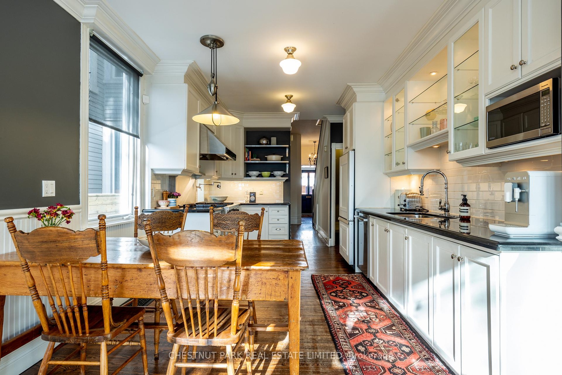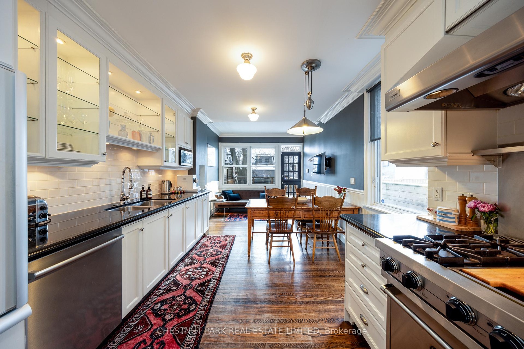 Stunning 3-Storey Grand Victorian in Prime Cabbagetown. Stylish & Sophisticated Blending Modern Amenities W/Classic Architectural Detail. Ideal For Family Living & Entertaining. Gourmet Eat-In Kitchen with Walk-Out To Deck & Fenced, Tree-Canopied Backyard. Perfect For Summer Evenings W/Friends & Family! Original Trim & Mouldings, Hdwd Floors, Soaring Ceilings, Formal Dining & Living Rms, Cozy kitchen/fam room. 2nd Flr Laundry, Spa-Like Baths, Home Office Options, Skylight, Roof-Top Glass-Panelled Deck W/Sweeping S/W City Views. Fully Finished Walk-Out Bsmt W Bdrm, 3Pc Bath, 2nd Kitchenette & Walk-Out To garden. 1 Car Parking Off Rear Lane. Approx 2500 Sq Ft + Fin Walk-Out Bsmt.