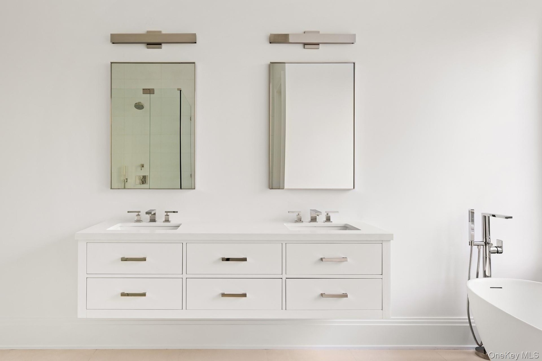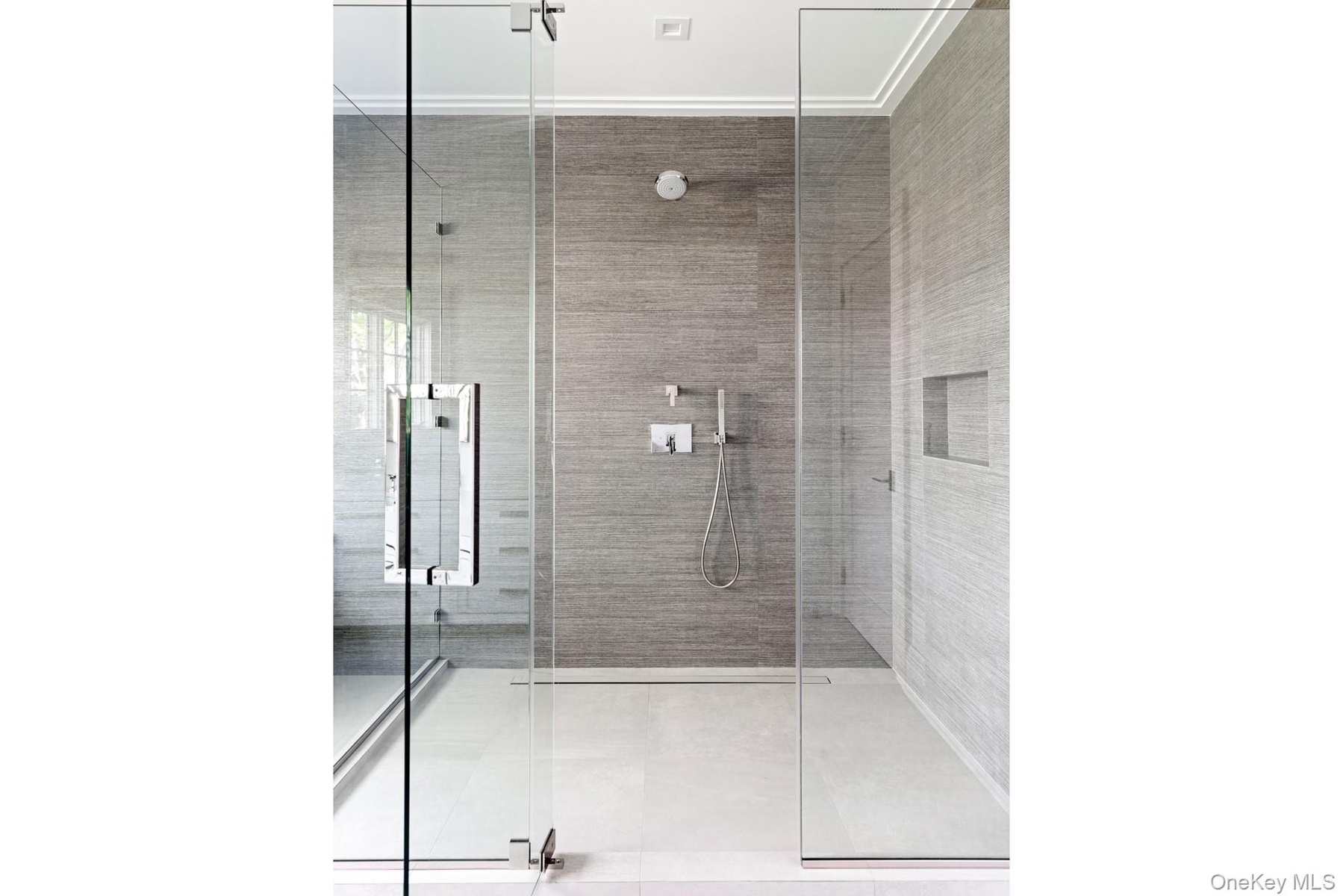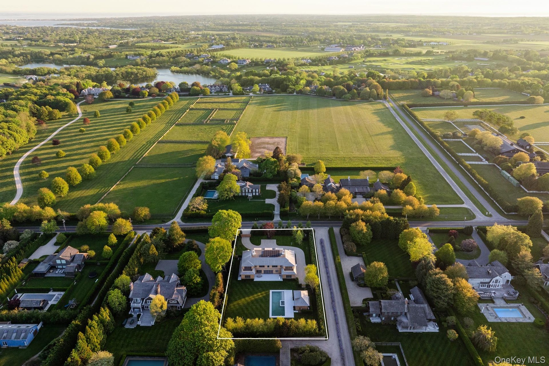 Nestled in the heart of Bridgehampton's renowned horse country, 361 Mitchell Lane offers a rare blend of timeless elegance and cutting-edge luxury. Situated on a 1-acre lot just 0.7 miles from Bridgehampton Village and minutes from world-class ocean beaches, this newly built estate showcases thoughtful landscaping that ensures both privacy and beauty. From the moment you approach via the automatic gated driveway, the home's traditional English country exterior and Alaskan yellow cedar roof set a tone of refined sophistication, perfectly framed by beautiful western views from the second story. Spanning approximately 11,100 square feet of conditioned living space, including a fully equipped pool house, the residence offers seven bedrooms and twelve bathrooms across three levels, all accessible by a custom staircase and an elevator. Interior highlights include 10-foot ceilings, coffered principal rooms, radiant heated floors, and four fireplaces with custom marble surrounds. The kitchen is a culinary dream, featuring a 60" Wolf range, dual Thermador refrigerators, and handcrafted Ciuffo cabinetry with Imperial Danby marble countertops. Thoughtfully designed for modern living, each bedroom boasts individual climate control, while architectural lighting, whole-house audio, and a comprehensive security system enhance both function and ambiance. The lower level is a full lifestyle destination, offering a multi-level screening room with a 150" infinity screen, a glass-walled gym with steam shower, and a bar with wine towers holding up to 400 bottles. Outdoors, resort-style amenities include a 20' x 54' heated gunite pool with integrated spa, a 540± square foot pool house, and a DCS outdoor kitchen setup. Sustainability is top of mind with a 12KW solar system and a whole house Kohler generator, all connected to underground utilities. This meticulously constructed property is a rare offering that pairs architectural excellence with the luxury of location and lifestyle in Bridgehampton.