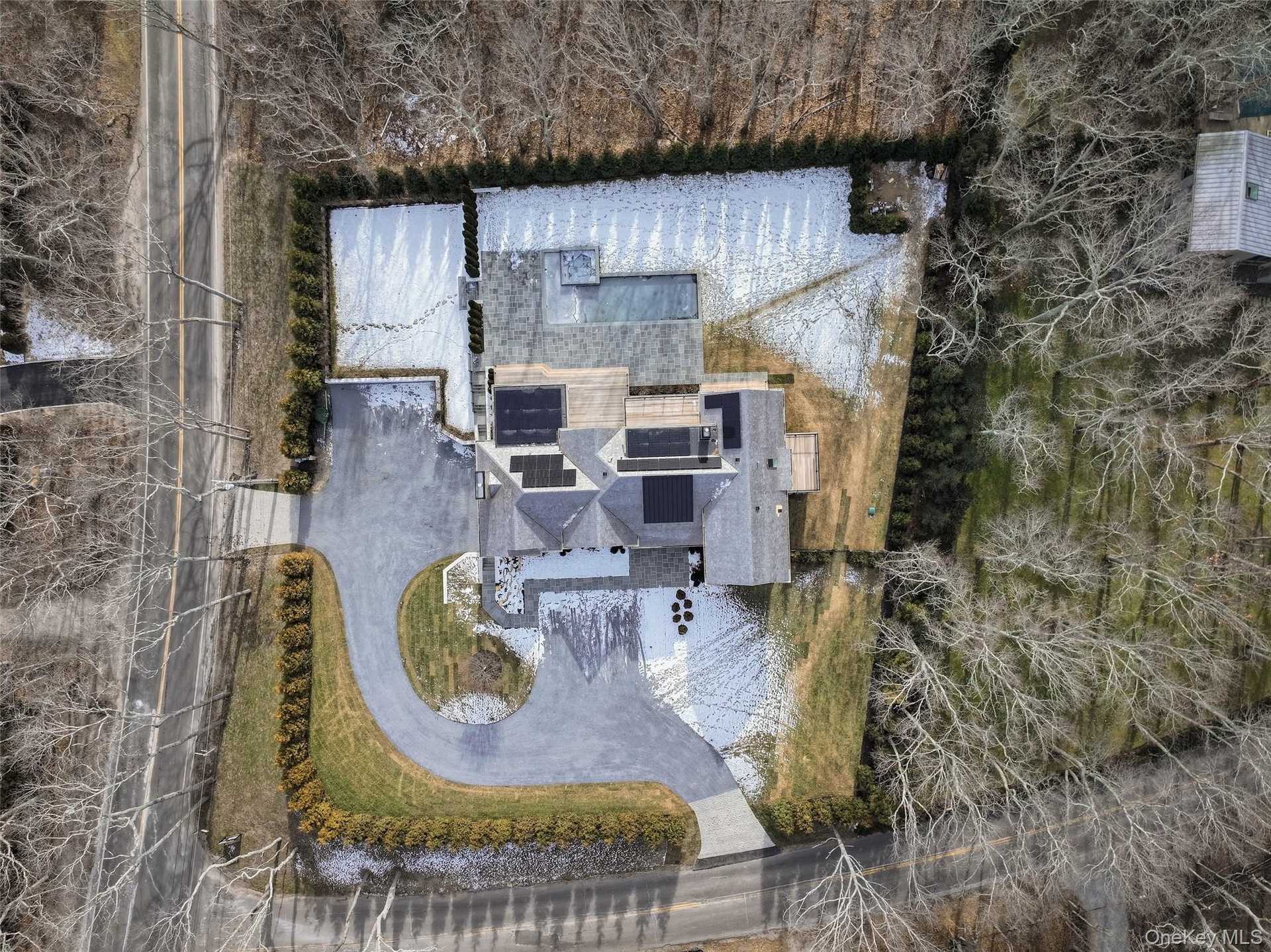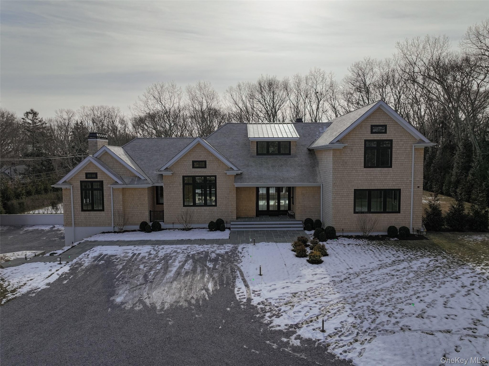 Welcome to 512 Edge of Woods - a newly constructed transitional residence offering refined design, modern comfort, and over 7,520 square feet of beautifully finished living space. Situated on 0.94 landscaped acres and available in December 2025, this three-story home blends classic Hamptons craftsmanship with contemporary finishes. The main floor showcases an inviting open-concept layout featuring a large kitchen with quartz countertops, stainless steel appliances, a built-in coffee maker, oven/range, refrigerator, two dishwashers, wine fridge, and microwave. Additional highlights include a spacious entry foyer, living room, a great room anchored by one of two fireplaces. Exposed white oak beams and high ceilings elevate both the living and kitchen areas, while nine-inch-wide white oak flooring flows seamlessly throughout. Abundant natural light fills the home, offering effortless transitions to the outdoor living spaces. A private 4-person elevator provides easy access from the garage to the kitchen, enhancing the home's thoughtful design. The first floor also features a luxurious primary suite with an en-suite bathroom and spacious closet-ideal for single-level living or accommodating guests. Upstairs, a second primary suite offers a serene retreat complete with a spacious en-suite bathroom, generous closet, and large exterior balcony. Additional bedrooms and bathrooms provide ample comfort and privacy for all, including a third guest bedroom that features its own private balcony. The fully finished lower level spans 2,892 square feet and includes two bedrooms, two full bathrooms, and a private guest area with interior access to the attached two-car garage for added convenience. This level also features a sauna and an optional steam room, providing a luxurious wellness retreat. Two separate pre-wired media areas offer flexibility for entertainment or home theater use, while an additional space is designed to accommodate a golf simulator, wine room, or bar. The home's six-zone forced-air heating and central air conditioning ensure year-round comfort, enhanced by a combination of electric, propane, and solar fuel systems for improved energy efficiency. Outdoors, enjoy a 16' x 48' heated gunite pool with integrated 10-person (10 x 10) spa, an outdoor BBQ and bar area surrounded by a fenced patio, deck, and covered porch ideal for entertaining. The home's cedar shake and masonry exterior, cedar and metal roofing, irrigation system, and professionally landscaped grounds with lighting create a private and scenic retreat. Additional Features: Modern upgrades include a full exterior camera and alarm system, pre-wiring for state-of-the-art surround sound, and complete audiovisual readiness. A premium water softener and filtration system enhances daily functionality. Thoughtfully designed and meticulously built in 2025, 512 Edge of Woods presents the perfect blend of timeless style and modern sophistication. Optional add-ons include a pool house with outdoor shower, spa/steam room, golf simulator, movie theater, wine room, and exterior fire pit feature.