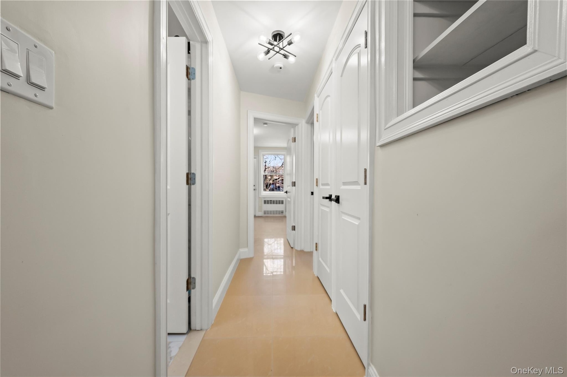 The space is enhanced by natural water-based hardwood floors, elegant modern chandeliers throughout, and abundant natural light.