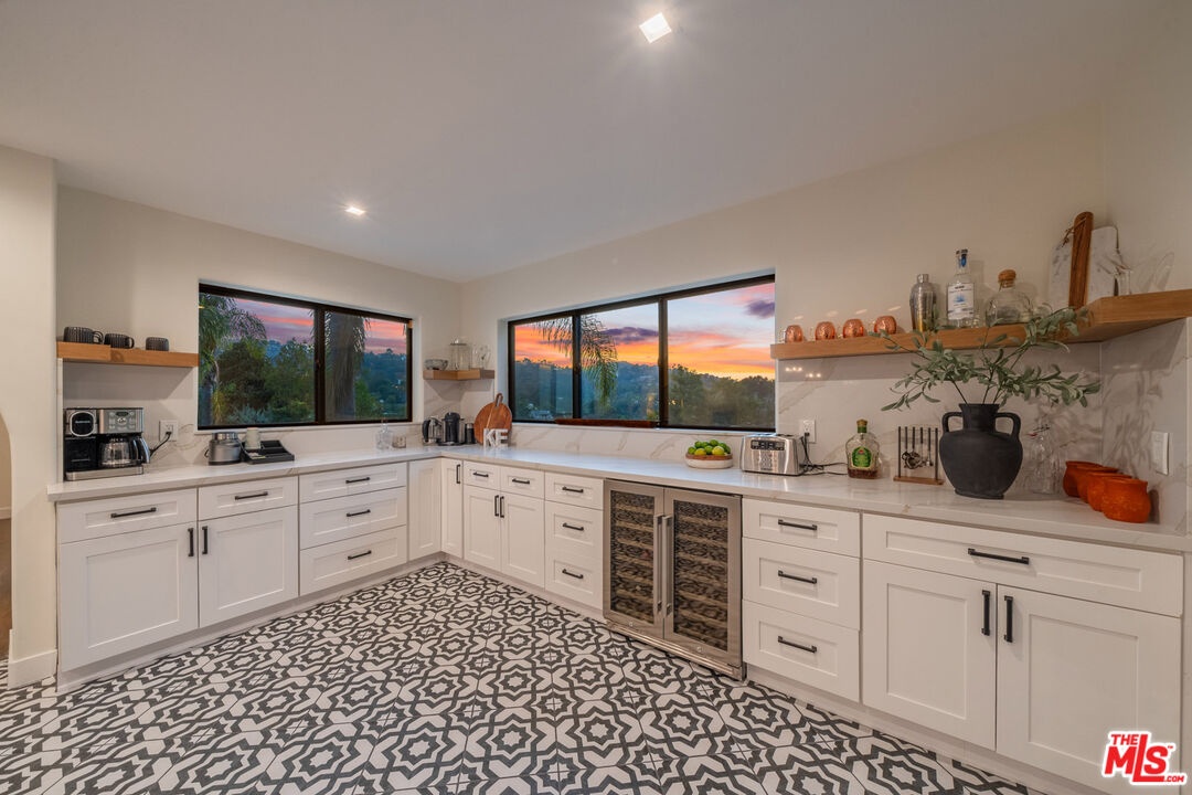 Welcome to your dream home in the prestigious Lake Hollywood Knolls. This exceptional residence has been recently renovated and offers breathtaking views from every room and an unparalleled location, just moments away from major freeways, shopping, dining, fitness centers, hiking trails, and entertainment hotspots, including Universal Studios. Step into the grand foyer and ascend to the stunning main level, where open-concept living awaits. The spacious family room, filled with natural light, flows seamlessly onto a private balcony perfect for soaking in those iconic California sunsets. Adjacent is the elegant dining area and a chef's gourmet kitchen, complete with a large island, high-end appliances, and plenty of space for entertaining. French doors open to the private backyard oasis, featuring a built-in BBQ, cozy fire pit, and lush landscaping that ensures privacy and shade. Upstairs, the expansive primary suite offers the ultimate in luxury, with its own fireplace, a secluded deck, and a spa-like ensuite with dual vanities, double closets, and a separate tub and shower. Two additional generously sized bedrooms and a guest bathroom with direct access to the backyard deck complete the upper level, ideal for hosting gatherings or simply enjoying serene outdoor living. Conveniently located near the bedrooms is a laundry area. The lower level presents a unique opportunity with a converted basement that serves as an in-law suite or potential ADU. Equipped with a private entrance, kitchenette, full bathroom, closet, and washer/dryer, it offers flexible space for guests, extended family, or income generation. With nearly 4,000 square feet of living space and a coveted location just steps from Universal Studios, this Hollywood Hills masterpiece is a rare find. Don't miss your chance to experience the perfect blend of luxury, privacy, and convenience.