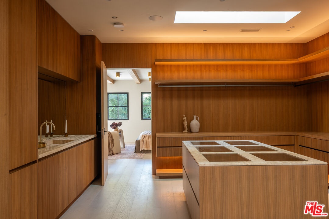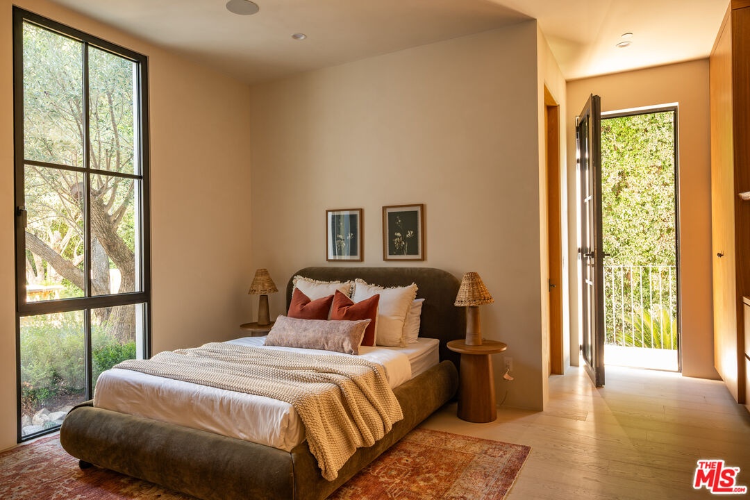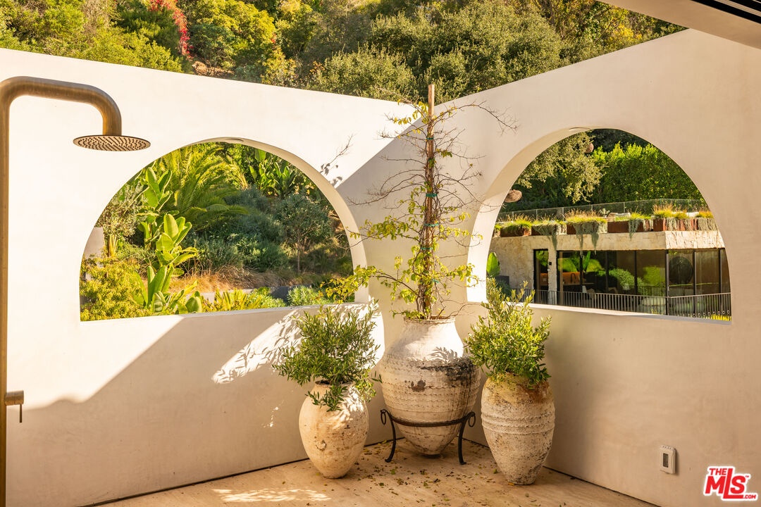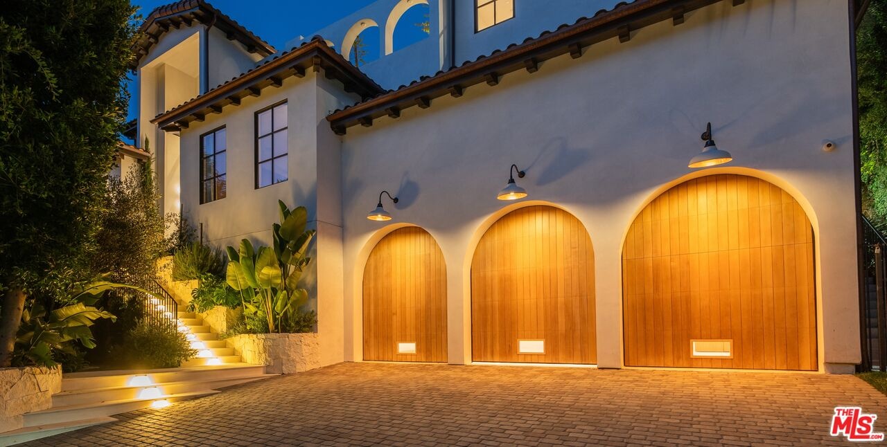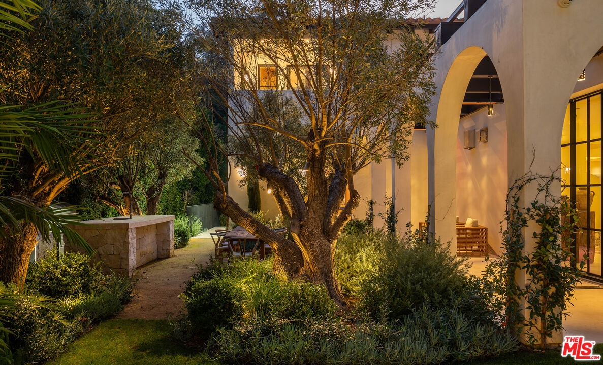 Positioned in the prestigious East Gate of the highly sought after lower Bel Air neighborhood near the iconic Hotel Bel-Air, this astonishing Spanish-Mediterranean estate seamlessly blends timeless elegance with modern sophistication. As you enter, double height glass & steel entry doors bathe the house with an abundance of natural light. Massive automated sliding door systems create the ultimate California lifestyle blurring the home's resort style exteriors with organic toned interior spaces. Adorned in custom Walnut millwork the gourmet kitchen is equipped with built-in Miele and Wolf appliances only missing a Chef's kiss. The entire home is complemented by select grade hardwood floors, handcrafted plaster walls, custom travertine stonework, and light fixtures by Apparatus and Allied Maker throughout.Featuring five luxurious bedrooms, an executive office, and a state-of-the-art theater, this home is designed for both elevated comfort and non-stop entertainment. Luxurious custom plumbing fixtures by Gessi and Graff add a spa-like touch to the primary bath, kitchen, bar & powder room. On the exterior you'll find limestone balconies, hardscaping, and a limestone-clad ADU with a roof deck that accentuate the outdoor living experience. Copper gutters, custom steel and aluminum windows and doors, and lush landscaping including 125-year-old olive trees and thousands of plants create a private, serene retreat. A three-car garage completes the offering, making this property the epitome of luxury living in one of Los Angeles' most coveted areas.