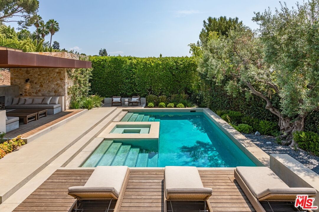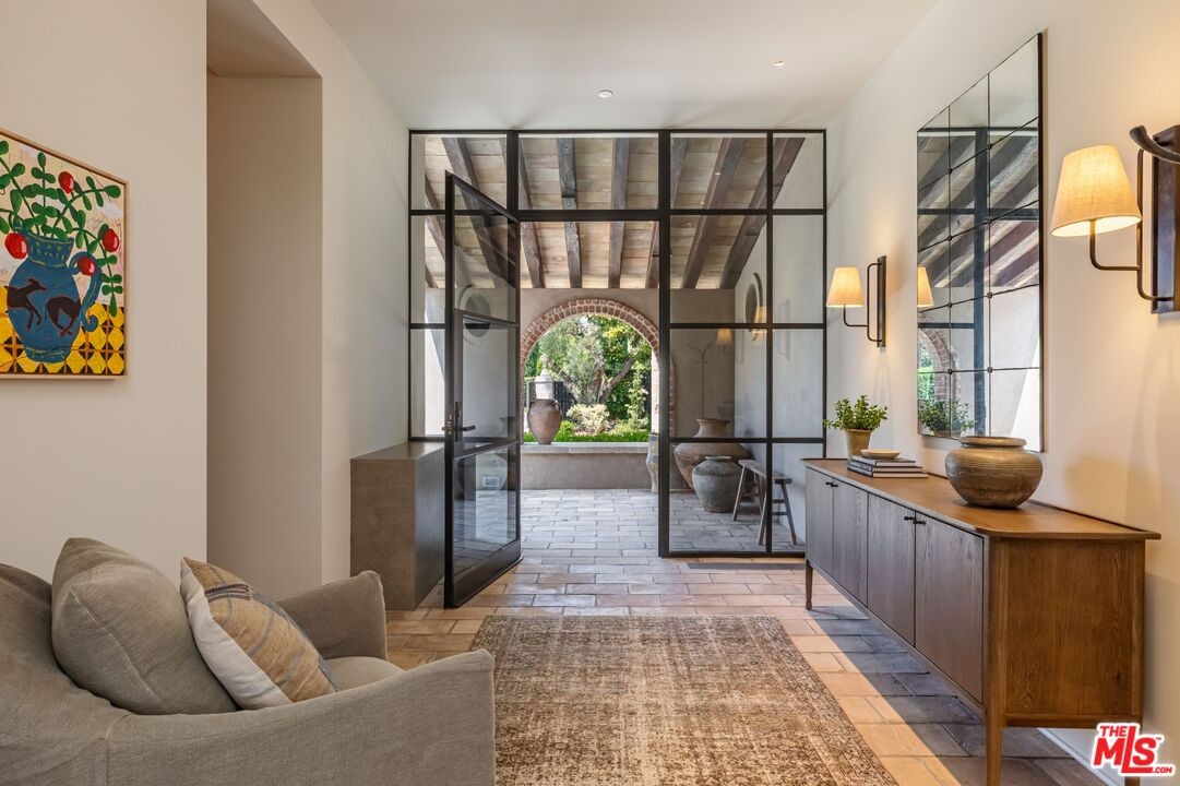 Alpine Ranch, located on one of the most prestigious streets in Beverly Hills, is a gated, custom-built Italian Villa originally designed by acclaimed architects Luis Ortega and Jose Fernandez. It has been fully reimagined as a brand-new home, impeccably redesigned and furnished by Amber Interiors. Every detail of this 5-bed, 5-bath estate has been thoughtfully upgraded, from fully renovated bathrooms, bedrooms, and living spaces to a comprehensive redesign by Amber Interiors. Their curated touches include bespoke furnishings, hand-thrown ceramics, artfully stacked books, and carefully layered textiles all included in the sale for a true turnkey experience. Interior highlights blend rustic charm with refined elegance, including exposed wood beam ceilings, steel-framed windows, and natural stone accents reminiscent of a countryside villa in the South of France. The main level is thoughtfully laid out with a sunlit formal living room that opens to a serene outdoor patio, an inviting dining room, and a chef's kitchen outfitted with Wolf appliances. Four bedrooms are located on this level, including a private primary wing that serves as a true retreat, featuring garden and pool views, a spa-quality bath with rain shower, freestanding tub, and overhead skylights that bathe the space in natural light. Upstairs, a separate private casita and an additional flex bedroom or gym open onto a generous covered balcony and rooftop deck. Set behind gates, the grounds are just as captivating as the interiors. A sprawling motor court offers ample parking for guests, while the expansive grassy yard, resort-style pool, and sun-drenched cabana invite effortless indoor-outdoor living. Thoughtful details like a private outdoor shower and a dedicated pool bathroom add both convenience and charm, creating a true sanctuary for relaxation and entertaining under the California sun.Just moments from the Beverly Hills Hotel and the world-class shopping, dining, and entertainment of Rodeo Drive, Alpine Ranch is a rare opportunity to own a fully furnished, design-forward estate in one of the most iconic neighborhoods in the world.