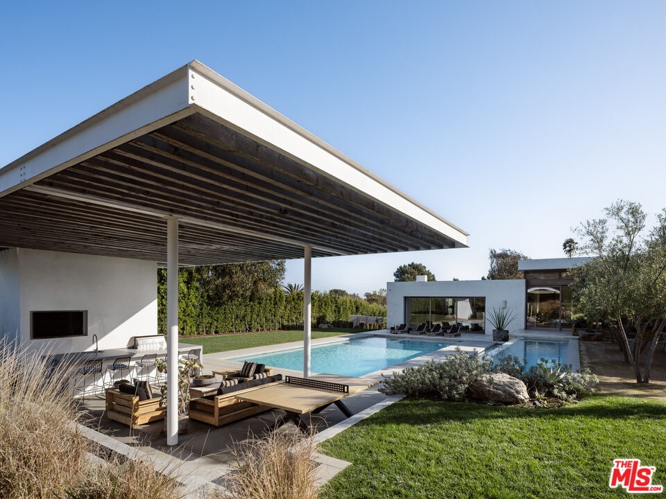 Discover a rare sanctuary in the heart of Point Dume: a newly built architectural masterpiece by internationally acclaimed Standard Architecture. Designed as a private resort and retreat, this estate unfolds across 1.7 acres of pristine, park-like grounds, offering unmatched space, seclusion, and effortless access to Malibu's most coveted amenity - a private Riviera 2 beach key to Little Dume Beach. From the moment you enter, the home commands attention with soaring cedar-clad ceilings, expansive gallery walls for art, and a palette of timeless finishes - white oak, Italian travertine, and imported Calcutta stone - that radiate warm modern elegance. Vast sliding pocket doors open to the outdoors, where every gathering feels like a destination event. This five-bedroom, eight-bathroom compound includes a separate guest house, creating room for both privacy and community. Resort-style amenities abound: two pools, seven fire features, a fully equipped outdoor cabana with pool bath, a private home theater, and expansive lawns perfect for entertaining on any scale. Whether hosting weekend gatherings, arriving at the beach by golf cart, or enjoying a sunset cocktail around one of the firepits, every corner is designed for leisure and connection. Smart home technology - including Crestron and Lutron systems, Bocci lighting, and Cocoon fixtures - brings effortless sophistication, while custom white oak millwork elevates every space. Set within the coveted Point Dume neighborhood, this estate combines exclusivity with a timeless sense of community. From surfing the legendary Little Dume break to nature walks along the bluffs of Big Dume, life here unfolds like an endless vacation - a true retreat where luxury, recreation, and coastal beauty converge.