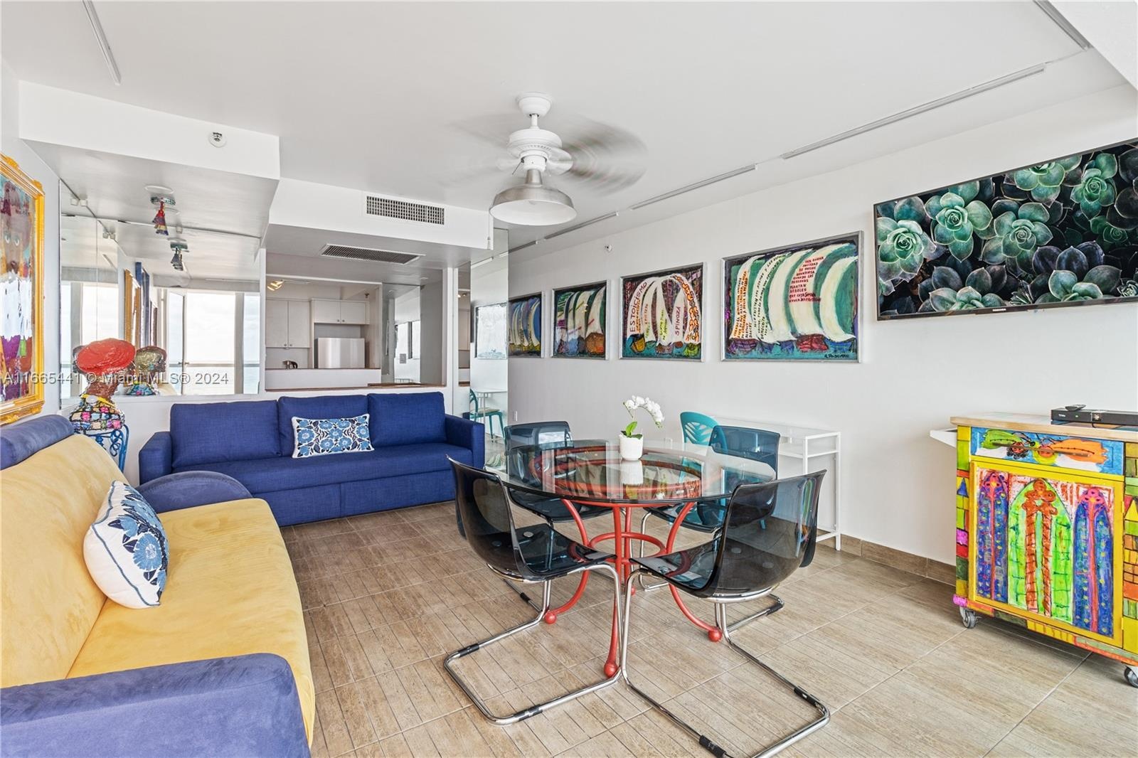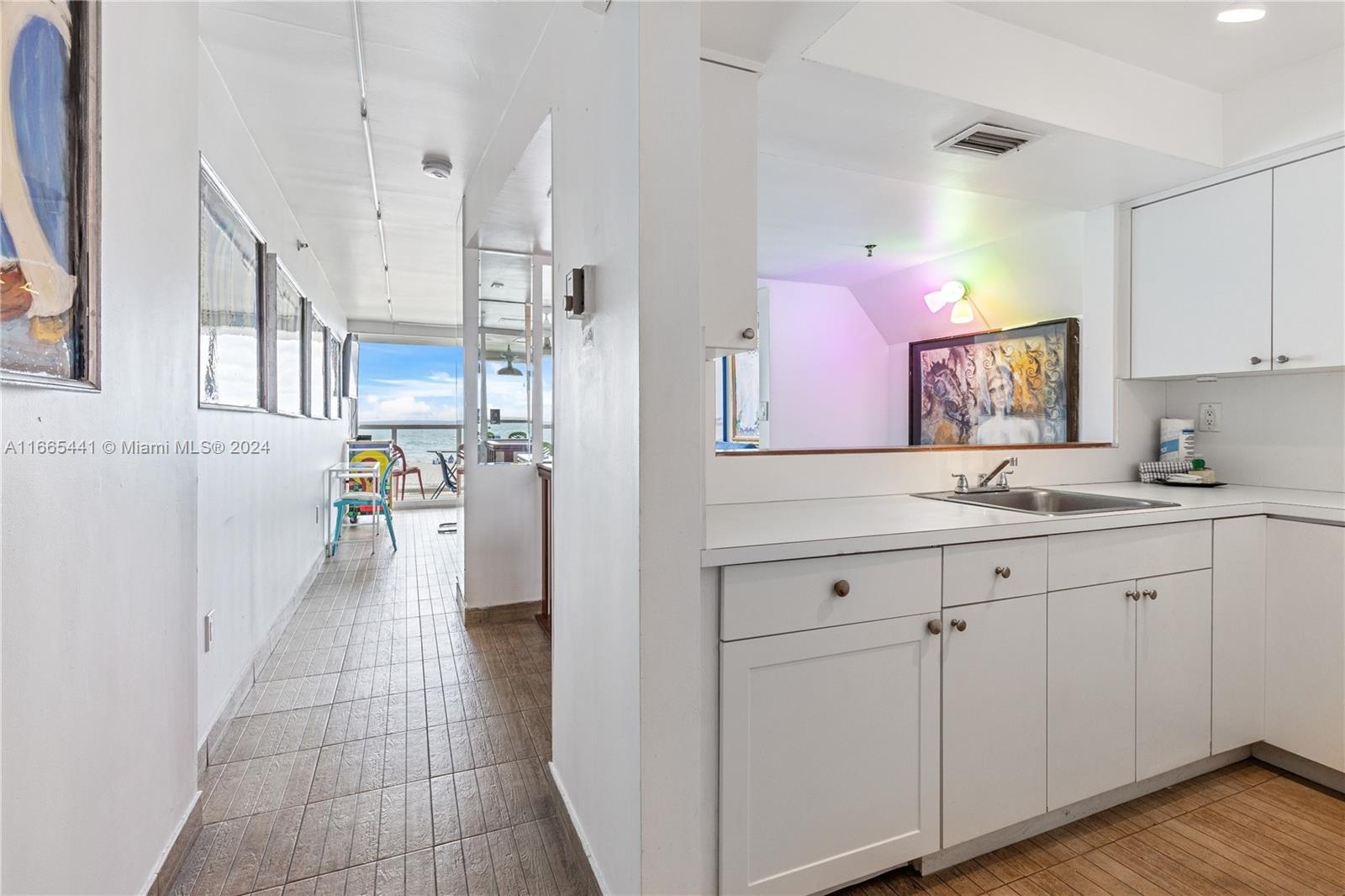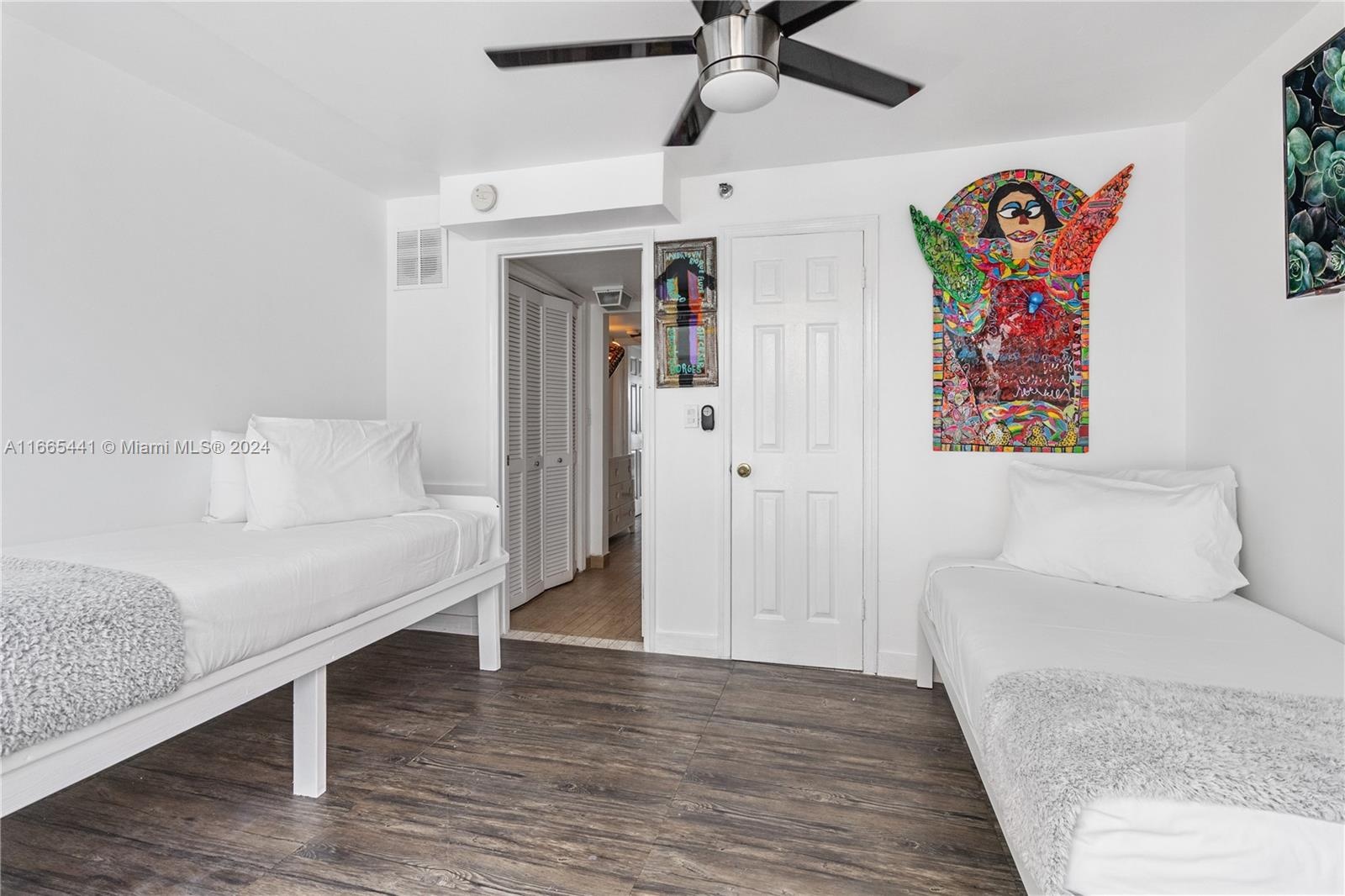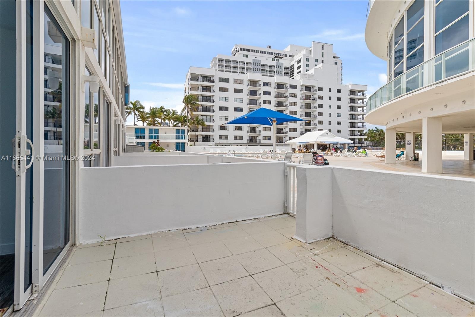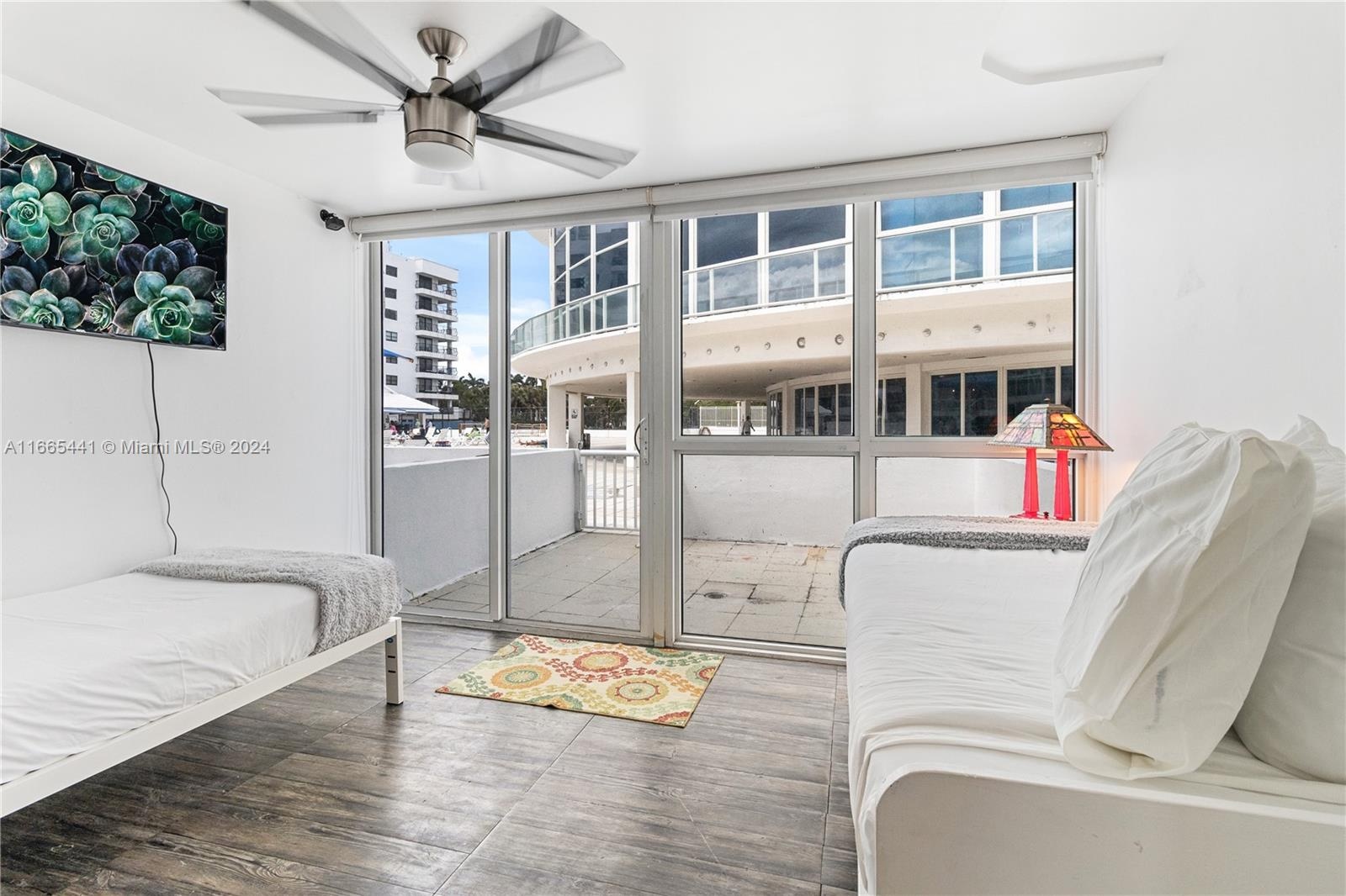 CASTLE BEACH This stunning two-story townhouse is located on the sought-after Miami Beach and boasts direct access to the boardwalk, making it the perfect oasis for those who love the sand, sun, and sea. The unit also features a private balcony with sliding glass high impact windows, where you can relax and soak up the sun while enjoying the ocean views. The living area is spacious and bright, with high ceilings and large windows that allow natural light to flood in. The sliding glass doors lead to a private balcony. The stairs leading from the first floor to the ground floor . The stairs lead directly to the bedrooms on the ground floor, providing privacy and convenience.