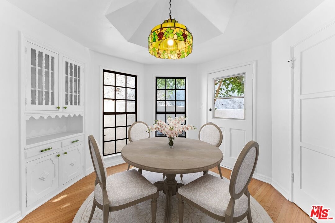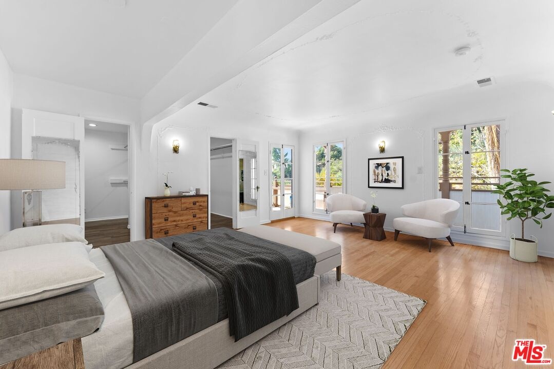 Tucked away in a serene cul-de-sac in the prestigious Hollywood Hills, this magnificent 5-bedroom, 6-bathroom, Spanish-style home seamlessly blends classic charm with modern luxury. Offering space, privacy, and timeless elegance, this beautifully restored residence is just minutes from the Sunset Strip, Runyon Canyon, Hollywood Bowl, and some of LA's best dining, shopping, and entertainment. Step inside to discover original hardwood floors, vintage tiling, and elegant period details throughout. The bright and expansive living room features soaring ceilings, and French doors that open onto a spacious terrace - ideal for outdoor entertaining or simply enjoying the hillside views.The formal dining room is adorned with a hand-painted fresco and large windows, leading to a stunning, remodeled kitchen outfitted with high-end stainless steel appliances. A charming breakfast room with wraparound windows offers the perfect spot for morning coffee, opening to yet another inviting outdoor space. The luxurious primary suite boasts a walk-in closet and a spectacular vintage-style bathroom complete with original tiles and a whimsical wall mural. Don't miss the opportunity to make this private retreat home - nestled in the heart of the Hollywood Hills where classic architecture meets contemporary comfort, and the best of Los Angeles is just moments away.