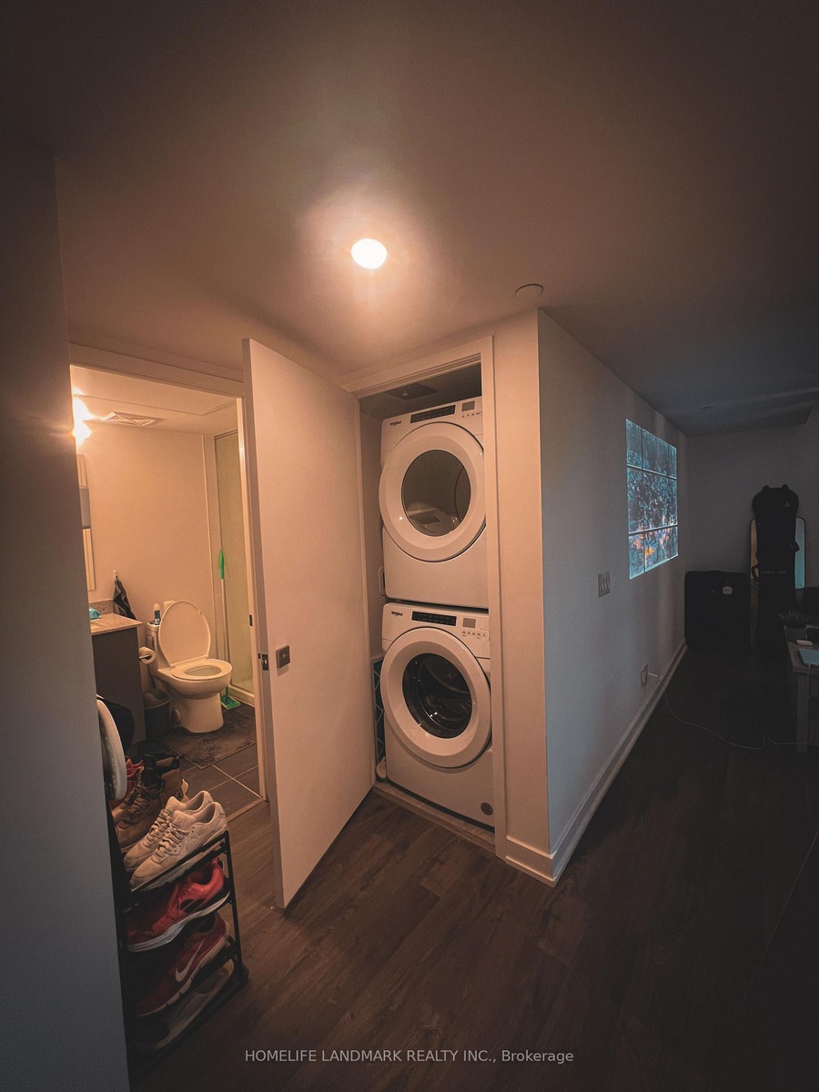 Modern Furnished 1-Bedroom, 1-Bath Condo for Lease in North York. This nearly-new two-year-old unit offers a well-designed open-concept layout with a contemporary kitchen featuring dark black wood cabinetry, integrated appliances, and a functional dining/workspace setup. The suite comes fully furnished, including a sofa bed in the living room, extendable coffee table, projector, and a height-adjustable work desk in the bedroom, making it ideal for a single professional or a couple.Located with direct access to the subway station at the podium level, providing a 35-minute commute to Union Station. Costco is within a 10-minute walk, and Highway 401 is just 5 minutes away for easy driving access. This pet-friendly building features a dedicated pet room with indoor grass area and a professional dog-washing station, allowing for comfortable pet care without needing to go outdoors in winter.