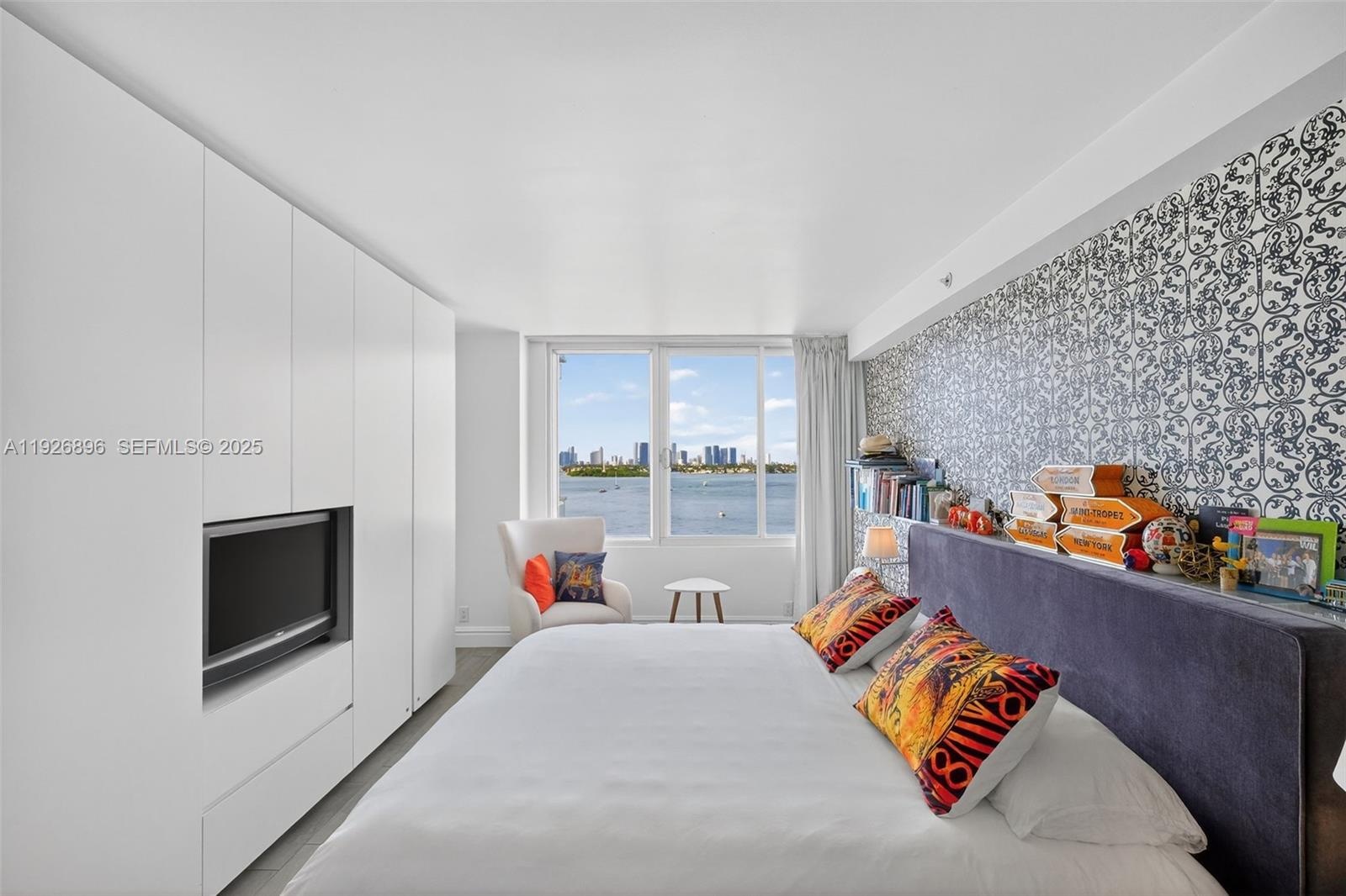 One large bedroom unit with Panoramic sunrise views over the Bay. This spectacular 1-bedroom condo — perched high in the iconic Mondrian South Beach — offers true beachfront living, with floor-to-ceiling windows and a private balcony.
