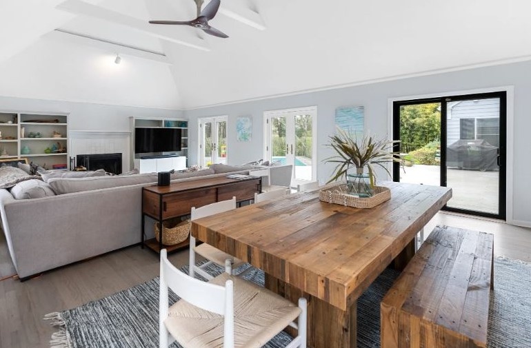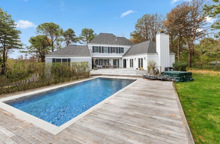 Shinnecock Hills spacious traditional features 5 bedrooms, 5.5 baths, open living and dining area, gourmet kitchen. Finished lower level with recreation room, bar, pool table, media area & sauna. Private grounds with heated pool, hot tub and extensive decking. Perfect for summer living and entertaining. 3 Bedrooms on first floor, 2 Bedrooms on second floor. Rental Reg # RP220800