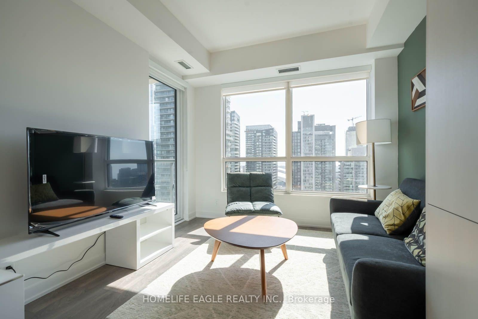 This luxury 1-bedroom + oversized den residence lives like a 2-bedroom, offering 2 full bathrooms. 38th floor with a private balcony and breathtaking south views overlooking the CN Tower and Skydome. The generous den functions perfectly as a second bedroom. Fully furnished with premium finishes, the suite features high-end built-in appliances, 9-foot ceilings, quartz countertops, and floor-to-ceiling windows that fill the space with natural light. Residents enjoy world-class amenities, including a rooftop pool with cabanas and lounge deck, BBQ terrace, state-of-the-art gym, yoga studio, infrared sauna, co-working space, private dining room, stylish party lounge, and 24-hour concierge.