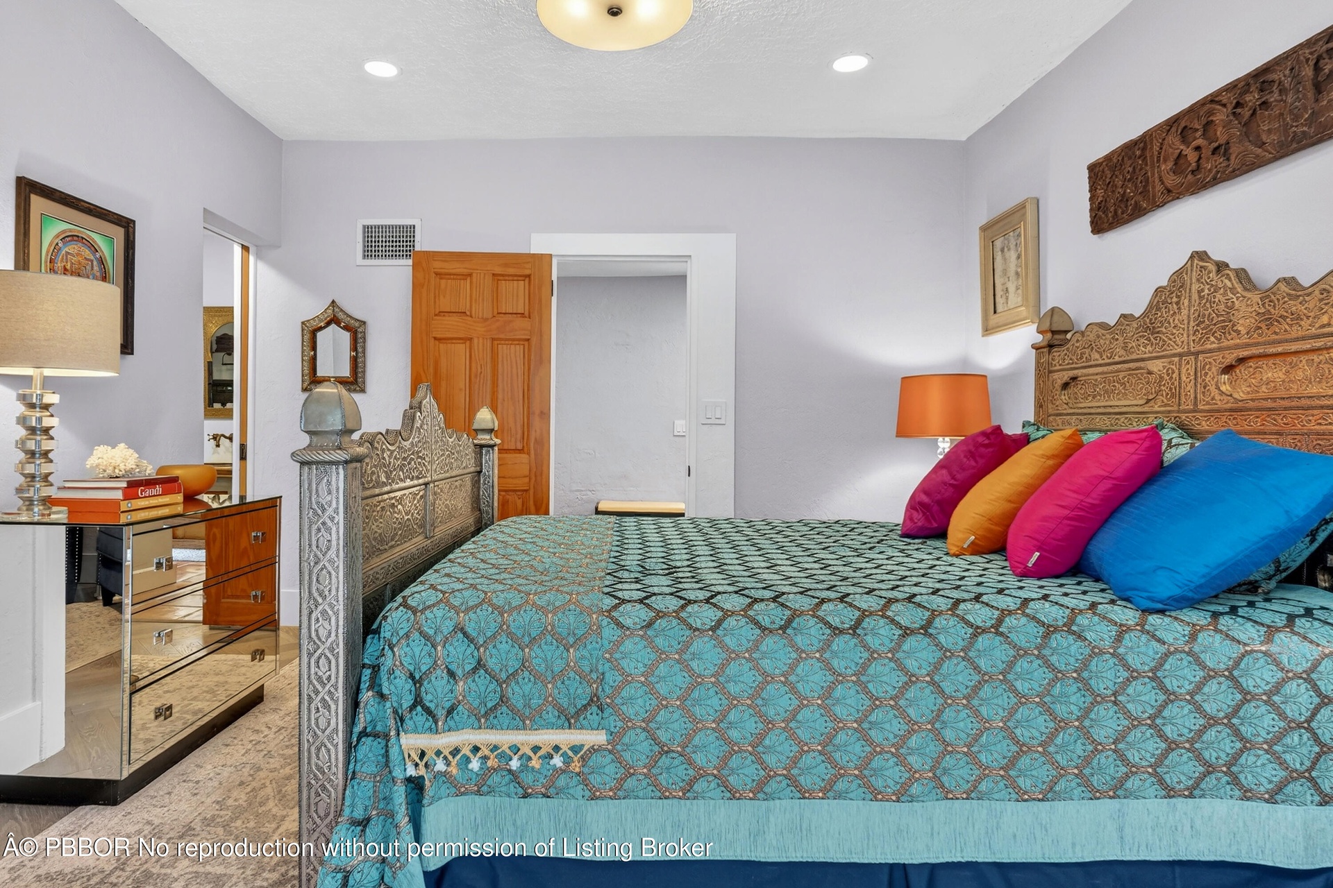 The main house offers three bedrooms and two full bathrooms, with a private primary retreat that is separated from the main living area, allowing exceptional privacy and space. The primary retreat features a dressing room and its own outdoor patio that is perfect for quiet mornings or relaxed evenings. The ensuite bathroom has a view to the tropical gardens surrounding the pool.