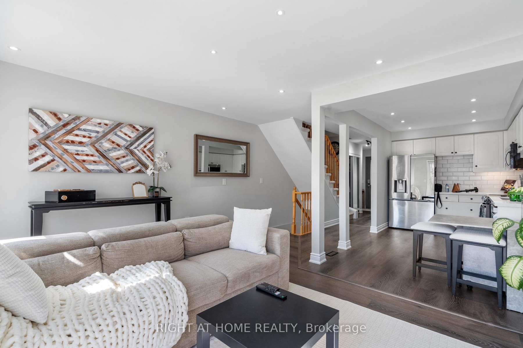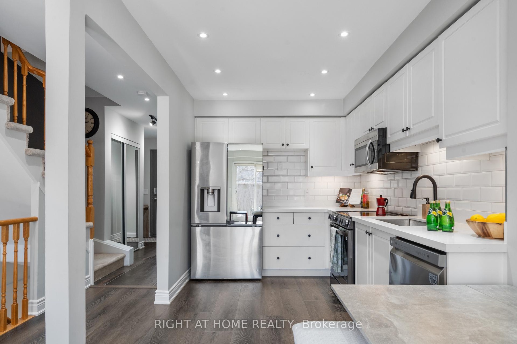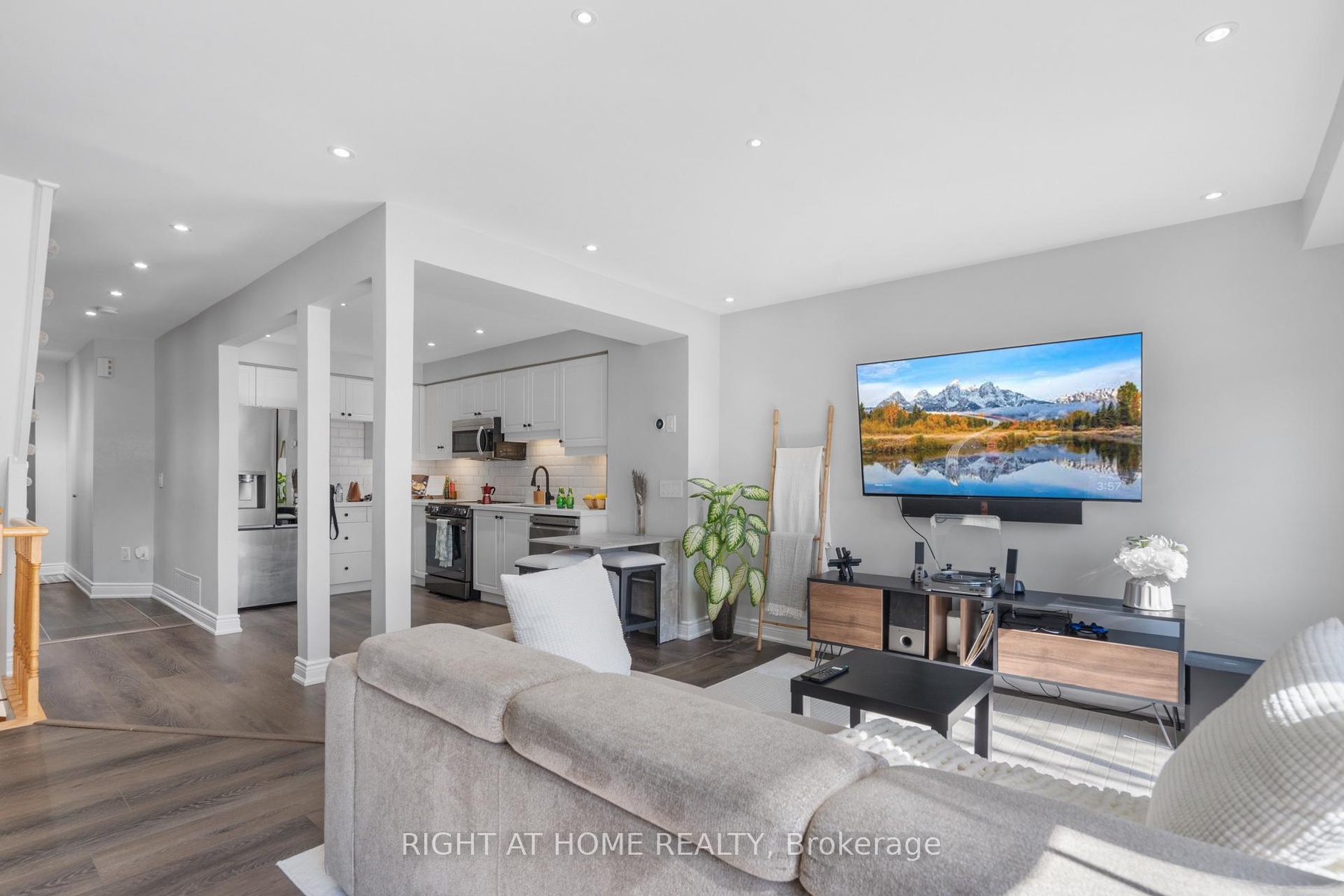 Fully furnished, renovated townhome offering approximately 1,624 sq. ft. of living space with a custom layout. Features include an open-concept main floor, upgraded kitchen with quartz countertops, backsplash, under-cabinet lighting, under-mount sink, and stainless steel appliances. LED lighting and pot lights throughout main living areas. Entryway finished with tile flooring and updated light fixture. Stucco ceilings removed in kitchen and living room. Freshly painted throughout, including loft, bedrooms, bathrooms, and finished basement.Finished basement provides additional flexible living space. Smart light switches and smart garage door opener included. Additional improvements include updated plumbing in kitchen and bathrooms, gas line for BBQ and fire pit, and garage shelving.Low-maintenance backyard with artificial turf. Convenient location with quick access to highways, shopping, restaurants, places of worship, and medical clinics. Note: Carpets will be professional cleaned and shampooed before new tenant takes possession