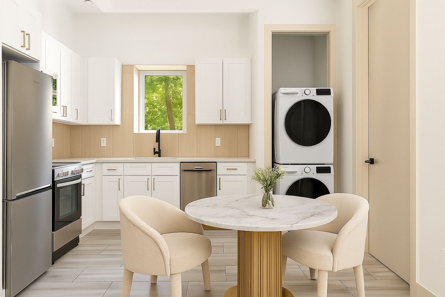 Luxury is woven throughout the unit, from its modern design, abundant natural light, high ceilings, luxurious hardwood floors, and top-notch modern appliances, including stainless steel appliances and an in-unit washer dryer.