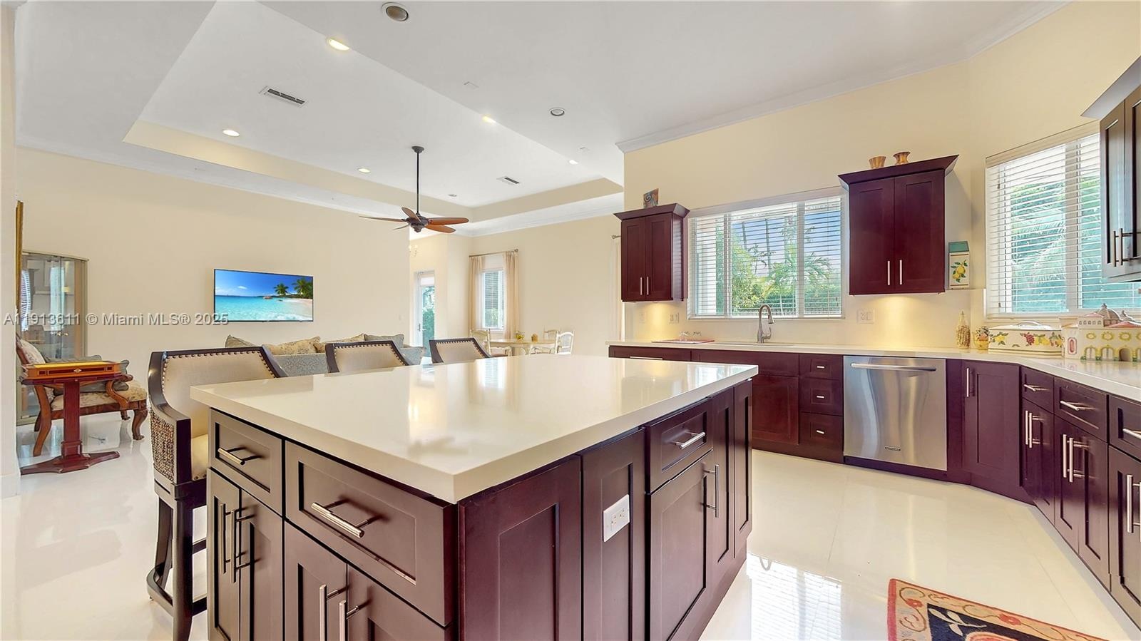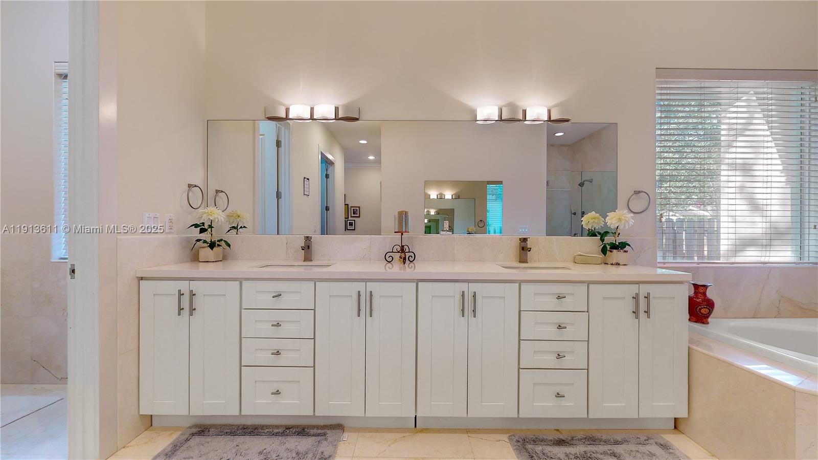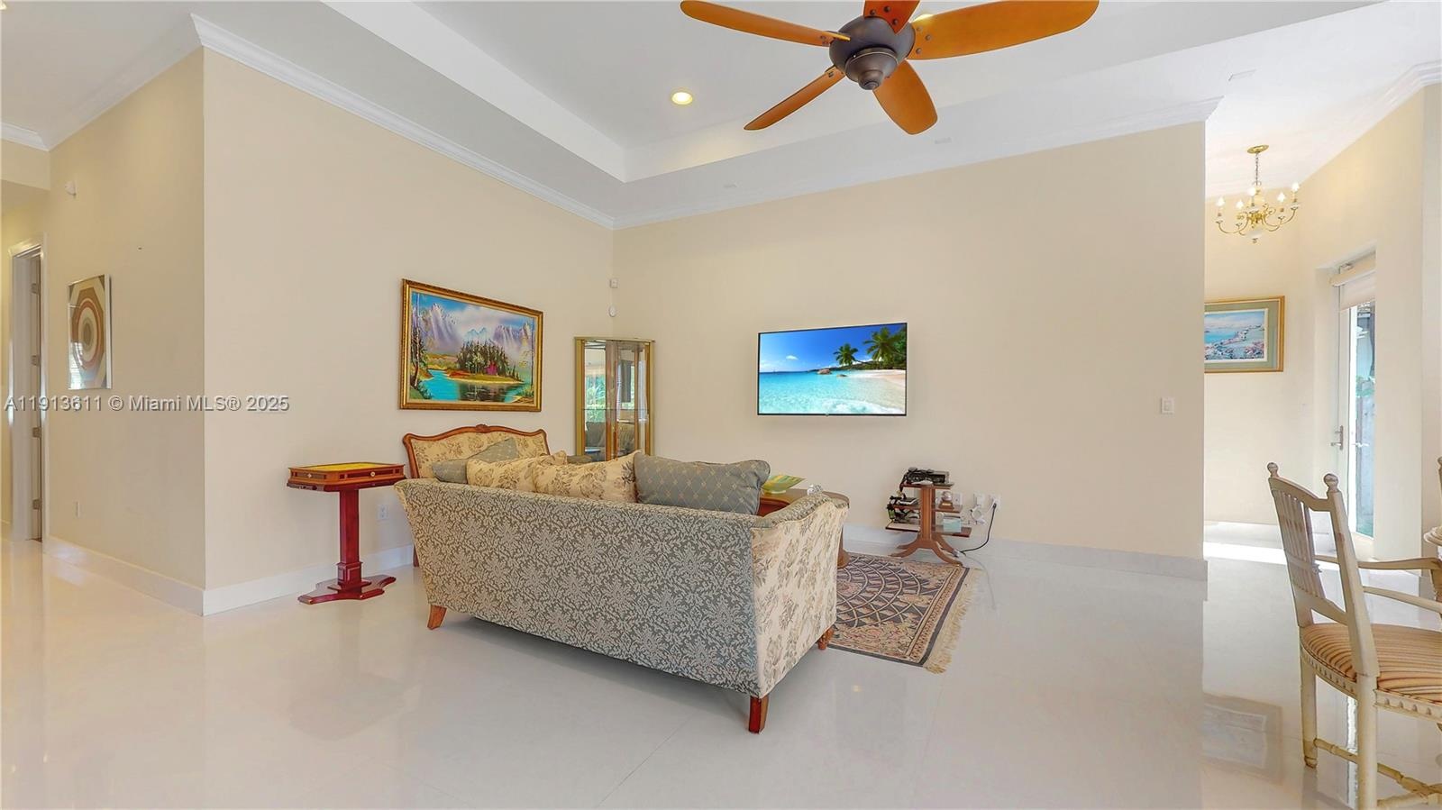 Welcome to your dream home, nestled within the highly sought-after, gated, and guarded community of Oak Ridge! This spacious and luxurious residence features 4 generously sized bedrooms and 4 updated bathrooms. The main living areas showcase elegant porcelain floors, while the bedrooms offer comfortable wood-like flooring. You will love the modern kitchen, complete with a large island, sleek quartz countertops, and stunning custom cabinets. Architectural details abound, including crown molding throughout, a sophisticated tray ceiling in the living area and primary suite, and the security of impact windows and doors. Step outside to your private oasis, featuring a spacious yard that is perfect for adding a pool and creating the ultimate outdoor entertaining space.