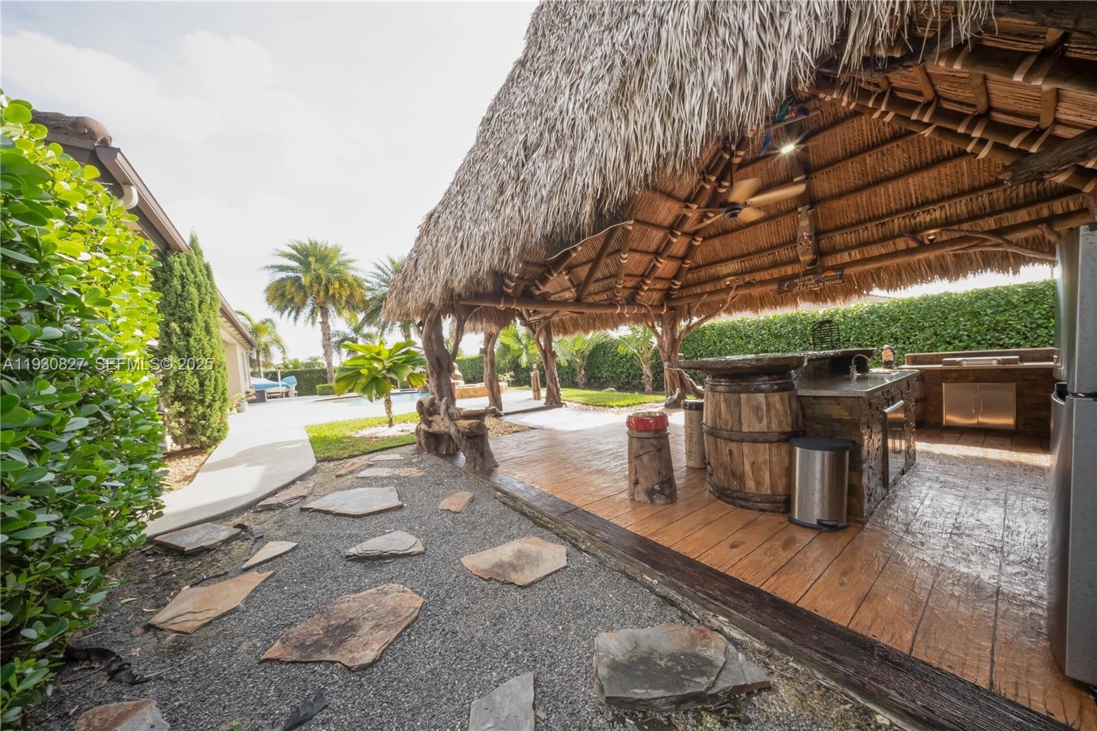 Beautiful 4 Bed / 3 Bath Home with Pool and Exceptional Backyard Built in 2006, this well-maintained 4-bedroom, 3.5 bath home features, Roof replaced in 2019, and offers outstanding outdoor living. The property boasts a spectacular backyard designed by a renowned artist and sculptor, creating a truly unique and dream-like space with a pool and gazebo—ideal for entertaining or relaxing. Additional highlights include a two-car garage and side access for RV or boat parking. A rare opportunity to own a home with a one-of-a-kind patio design and exceptional charm corner lot.