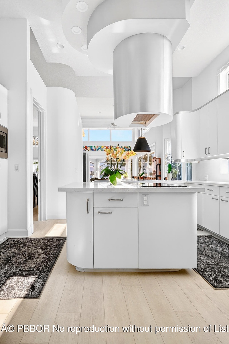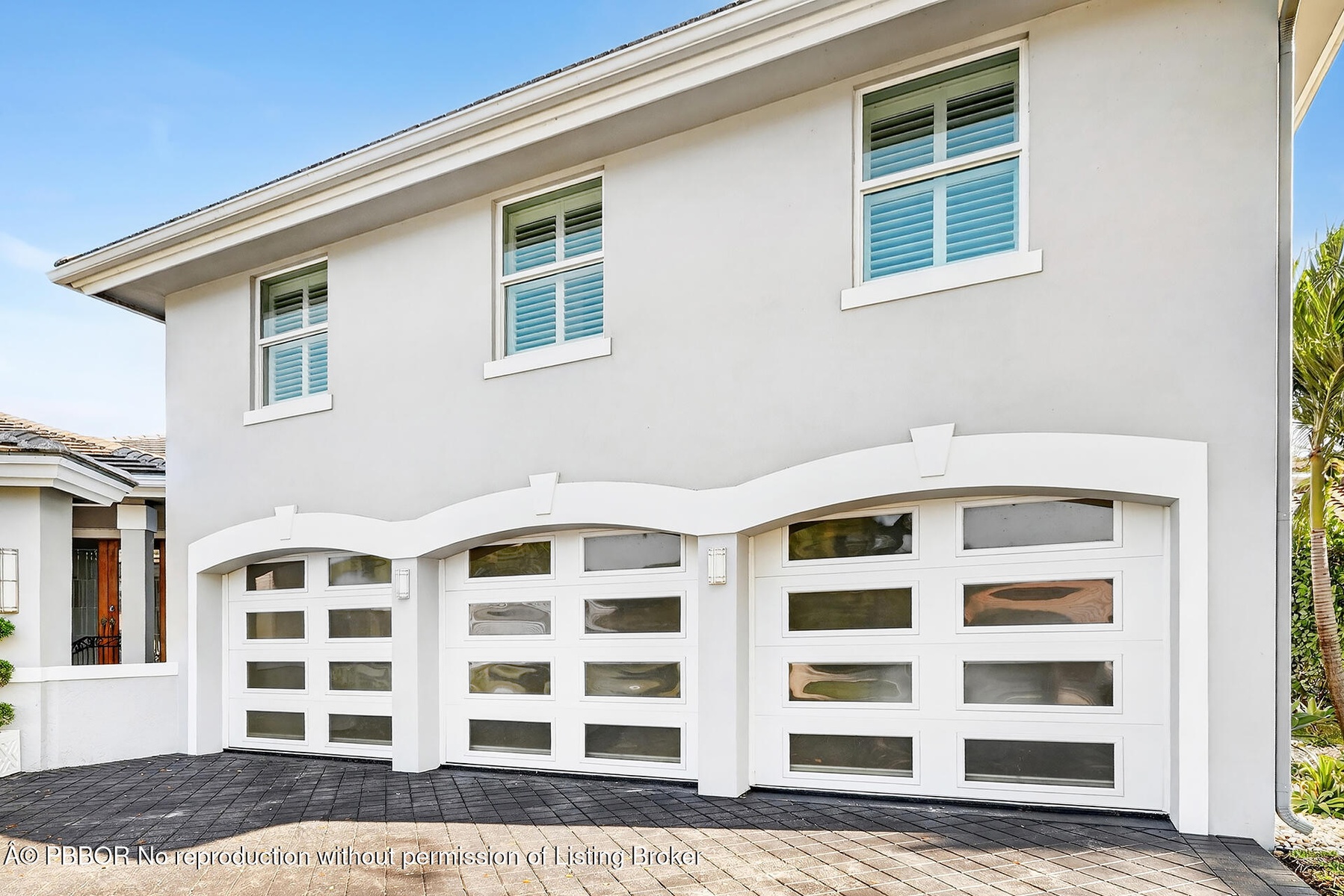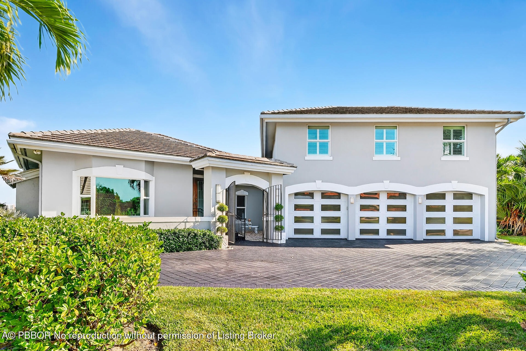 Bring your cherished antique and collectible cars to this spectacular contemporary residence, perfectly tucked away on a peaceful cul-de-sac overlooking the sparkling waters of Lake Mangonia. Custom built in 2019 by the current owner, this gracious home offers a versatile canvas designed to complement a wide range of taste and lifestyles. Nestled in the heart of West Palm Beach within the prestigious gated community of Presidential Estates, the property features a luxurious first-floor primary suite with a spa-inspired en-suite bath, a private workout/massage room, and a flexible loft space ready to adapt to your needs. Soaring ceiling and expansive windows bathe the interiors of this home in natural light, creating an open, airy atmosphere. Multiple sliding glass doors seamlessly connect the living space to the pool and terrace, inviting year-round enjoyment of Florida's indoor-outdoor lifestyle. The spacious backyard framed by endless lake views, sets the stage for unforgettable entertaining, alfresco dining under the stars, relaxed lounging, and of course, productive work-from-home days. Above the 3-car garage with 3 lifts, is a beautifully appointed one-bedroom apartment with a full kitchen that provides the perfect retreat for guests, family or an au pair. This home is more than a residence - it's a lifestyle, offering elegance, comfort, and endless possibilities in one of West Palm Beach's most desirable communities.