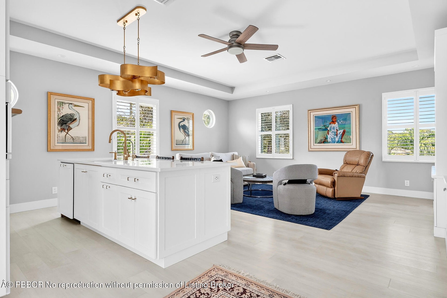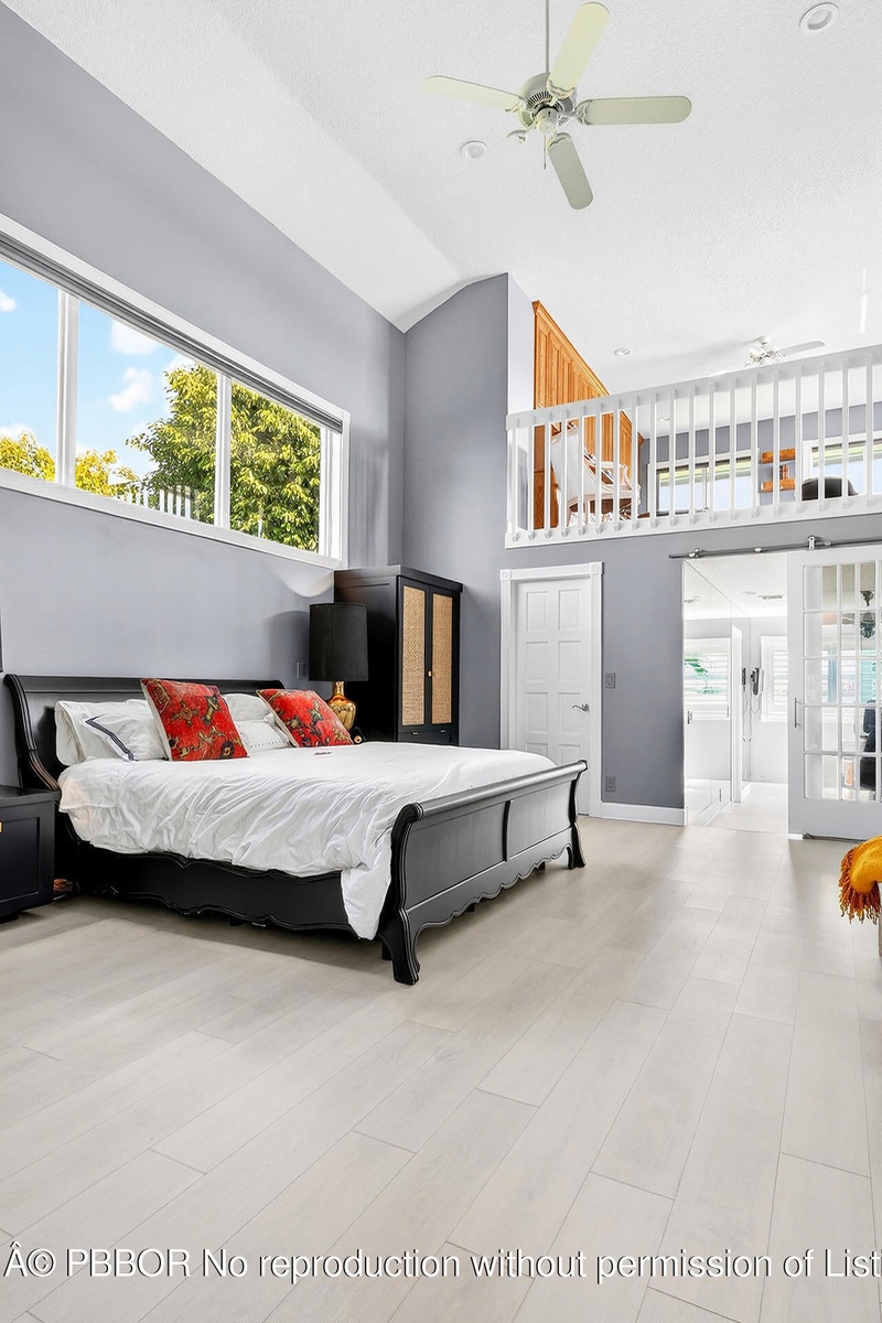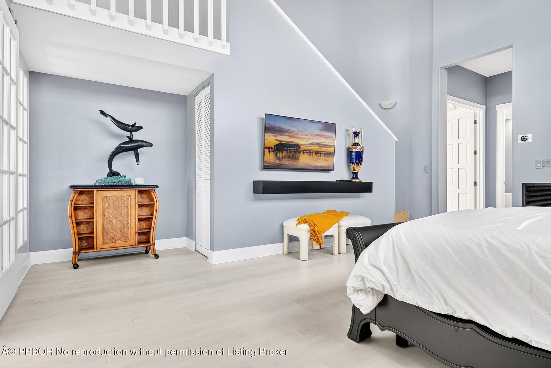 Bring your cherished antique and collectible cars to this spectacular contemporary residence, perfectly tucked away on a peaceful cul-de-sac overlooking the sparkling waters of Lake Mangonia. Custom built in 2019 by the current owner, this gracious home offers a versatile canvas designed to complement a wide range of taste and lifestyles. Nestled in the heart of West Palm Beach within the prestigious gated community of Presidential Estates, the property features a luxurious first-floor primary suite with a spa-inspired en-suite bath, a private workout/massage room, and a flexible loft space ready to adapt to your needs. Soaring ceiling and expansive windows bathe the interiors of this home in natural light, creating an open, airy atmosphere. Multiple sliding glass doors seamlessly connect the living space to the pool and terrace, inviting year-round enjoyment of Florida's indoor-outdoor lifestyle. The spacious backyard framed by endless lake views, sets the stage for unforgettable entertaining, alfresco dining under the stars, relaxed lounging, and of course, productive work-from-home days. Above the 3-car garage with 3 lifts, is a beautifully appointed one-bedroom apartment with a full kitchen that provides the perfect retreat for guests, family or an au pair. This home is more than a residence - it's a lifestyle, offering elegance, comfort, and endless possibilities in one of West Palm Beach's most desirable communities.