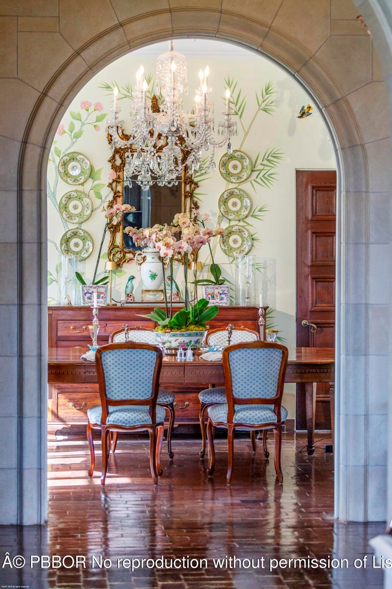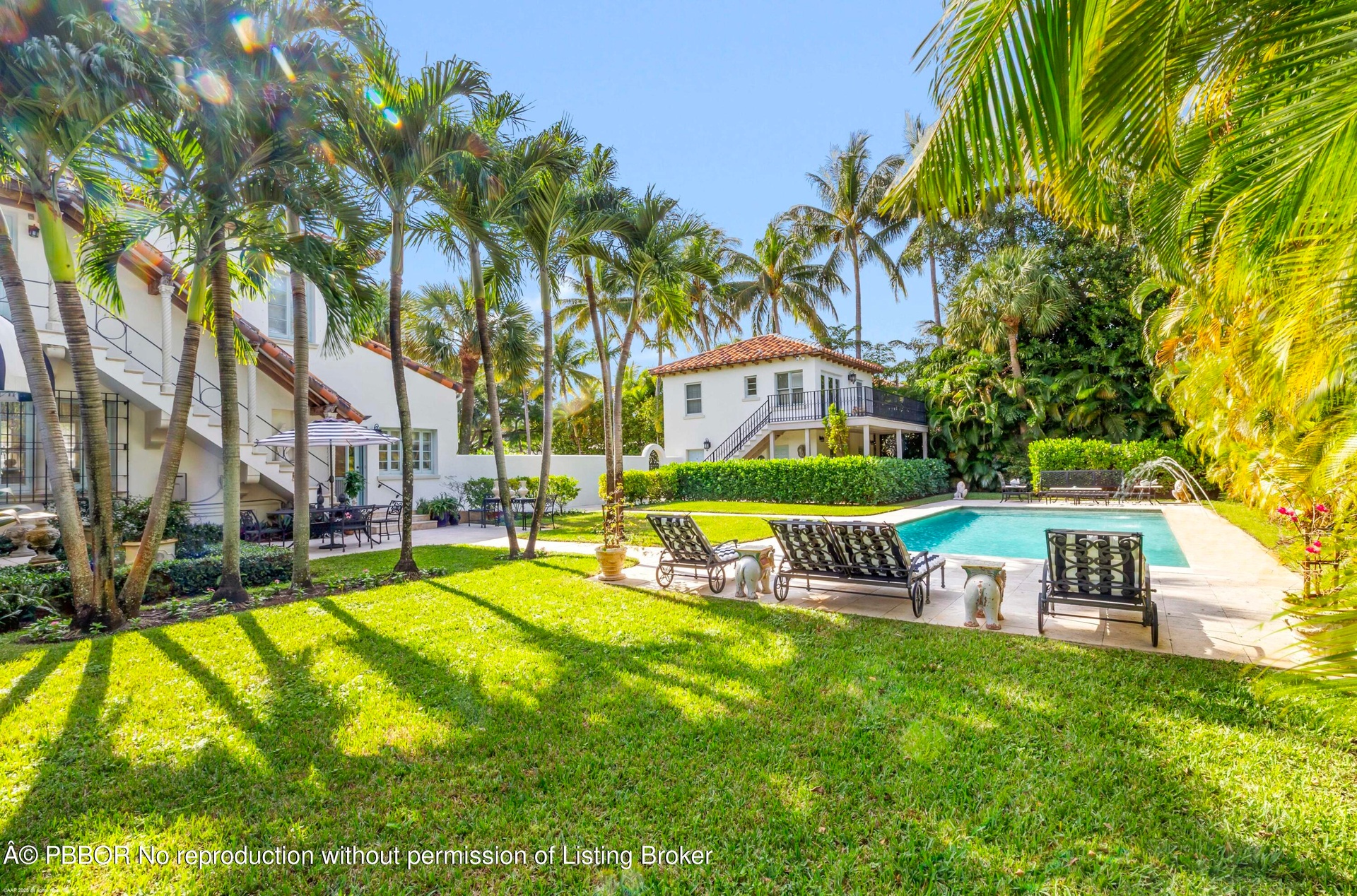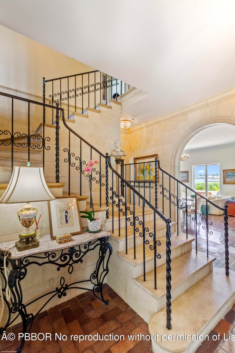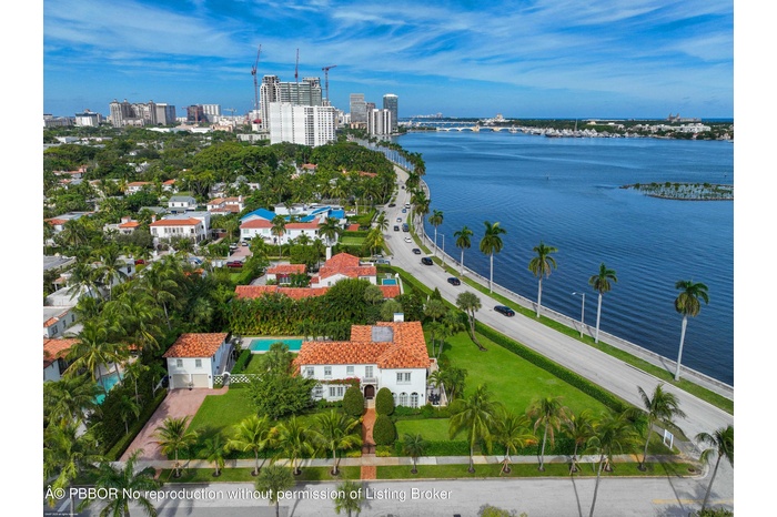 Built in 1925, the ''Grand Dame'' of El Cid is the most important Historic waterfront home of its era in West Palm Beach. The architectural splendor of the roaring twenties is bountiful in this unique masterpiece from the soaring ceiling heights right down to the original hardware on the windows. After welcoming you with priceless Pecky Cypress radius top double entry doors, the wrought iron and ''cast-in-place'' concrete staircase dominates the entry foyer and serves as the centerpiece of the home. From there, the living and family rooms are graced with original French doors that lead to the open waterfront patio. The views from every room across the massive front lawn to the Intracoastal Waterway and Palm Beach are breathtaking. The formal dining room and recently updated gourmet kitchen and butler's pantry dominate the opposite side of the entry and are state-of-the-art in appointments. A hardwood paneled library and powder room are off the entry foyer. Upstairs the views from the massive Master Suite are as you would expect...fabulous. Three additional bedrooms plus 2 baths and a large laundry make this the perfect home for both family and guests to enjoy. This spectacular waterfront home sits on a huge corner lot that boasts over 25,000 square feet of property and 138' of frontage along Flagler Drive. The large driveway, accessed from Valencia Road leads to a two car garage with a fully efficient guest house above it. This magnificent home has been updated to include, but not limited to, a fabulous gourmet kitchen, 2 new baths, barrel tile roofs, Icynene attic insulation, A/C systems, irrigation and new landscaping/outdoor lighting.