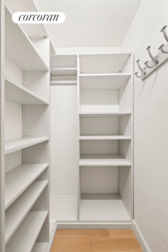 The home features south and east-facing exposures that bring in consistent sunlight throughout the day. The oversized living room comfortably fits a large dining table and a spacious living area, allowing for easy entertaining and relaxed everyday living. The king-sized bedroom is just as inviting, and both spaces are enhanced by brand new hardwood floors and four custom-built closets that elevate the home with a clean, contemporary feel.