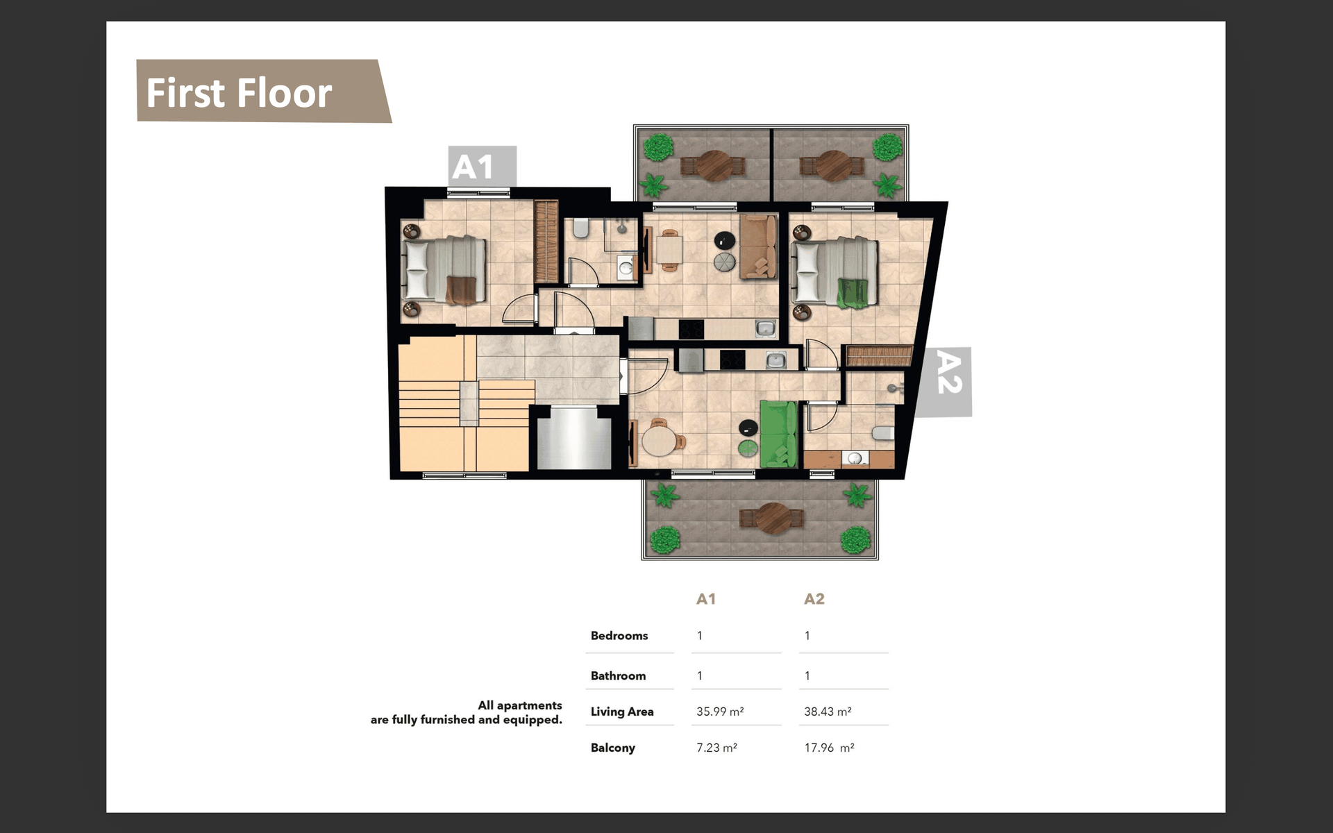 • Apartment sizes from approximately 36 sqm to 39 sqm