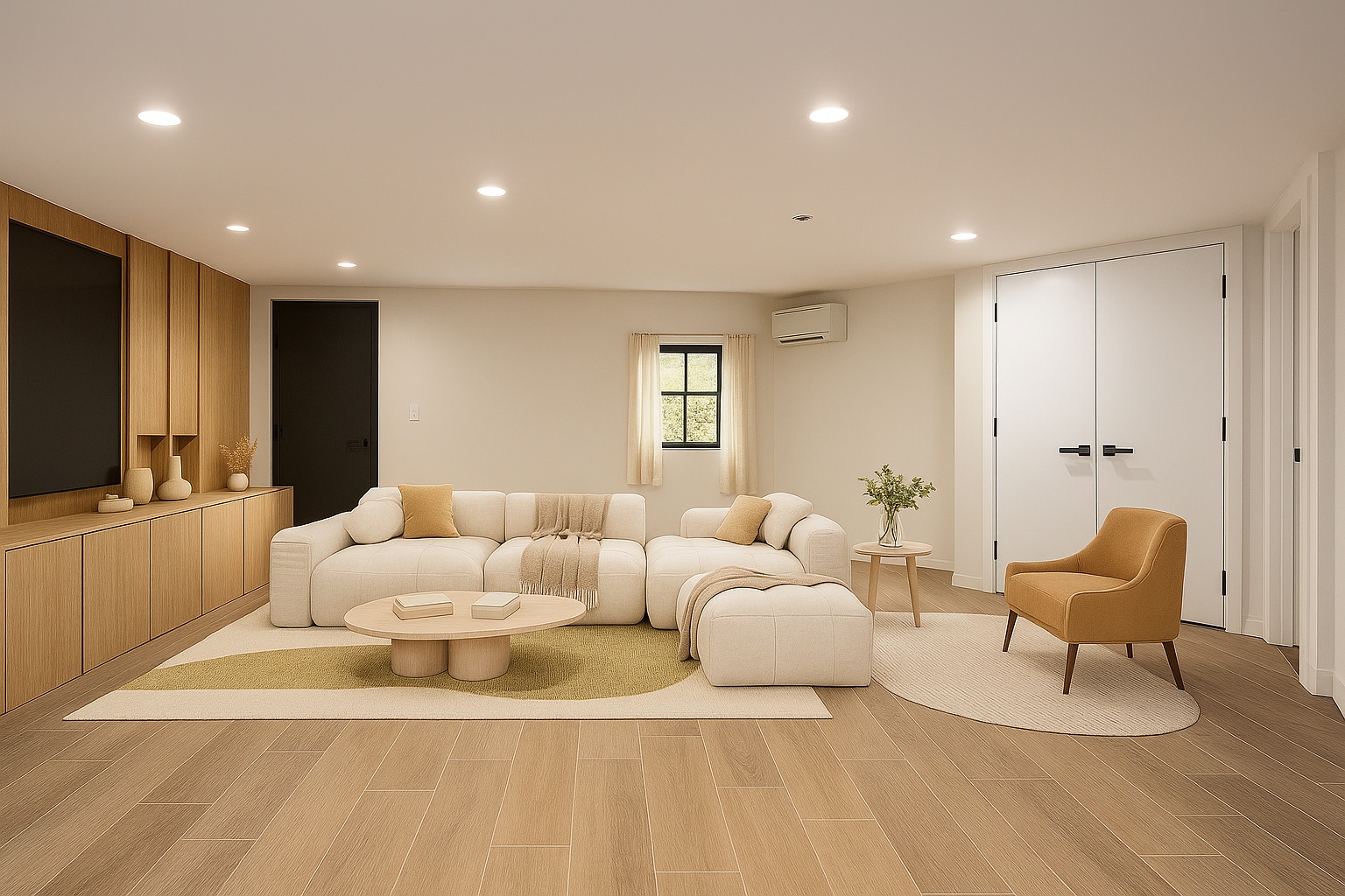 Enter the upper level to find a tucked away kitchen for cooking. The combined dining/living area is perfect for family gatherings. Two bedrooms on this floor accommodate queen-size beds and have access to your private garden. Descend the stairs to the lower level, offering a separate entrance for potential entertainment space while maintaining privacy upstairs. This versatile area serves as a media room, playroom, living space, or an additional bedroom—the possibilities are limitless. To provide functionality you can access the private outdoor garden from either your bedroom or the downstairs rec room.