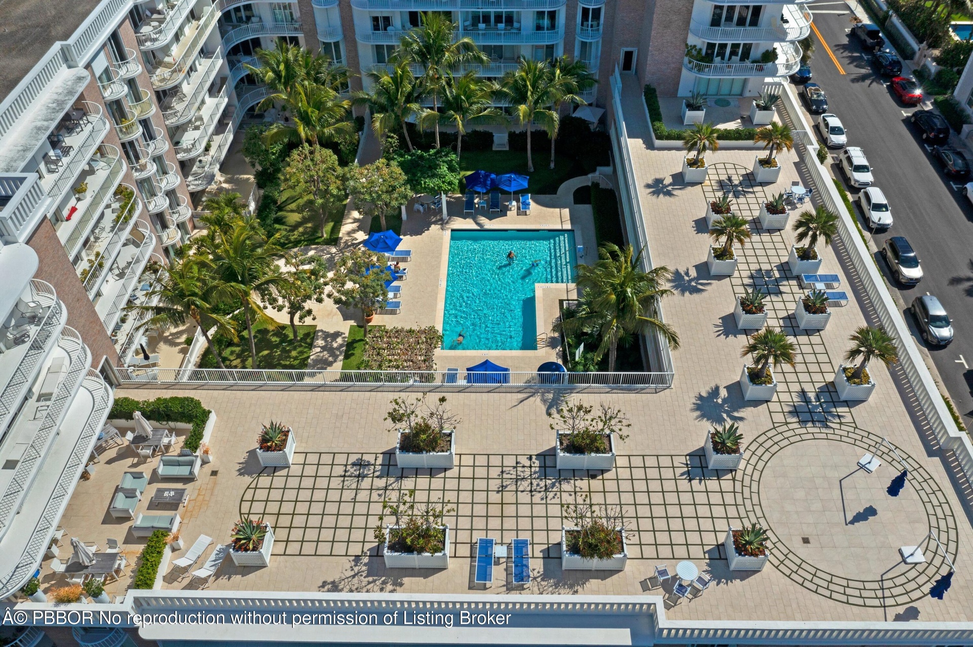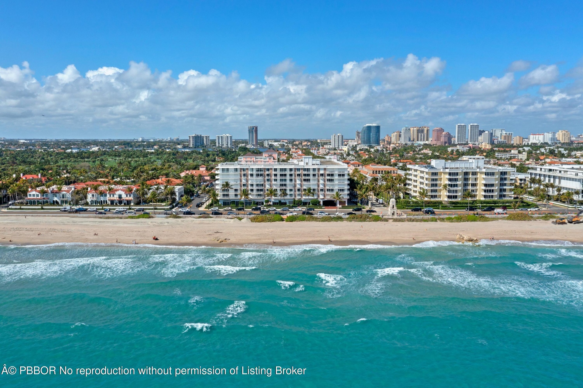 Rarely available 2 bed/2bath residence at Winthrop House, one of Palm Beach's most desirable full-service buildings. This condo offers a light-filled living and dining area with floor-to-ceiling sliding glass doors opening to a private balcony, ideal for indoor-outdoor entertaining. The kitchen features custom cabinetry, upgraded appliances, and white marble countertops. The primary suite includes a spacious bath and walk-in closet with custom built-ins. The second bedroom offers ample storage and its own private balcony. Additional features include impact windows, French oak flooring, and in-unit washer and dryer. Ideally located at the corner of Worth Avenue and South Ocean Boulevard, offering private beach access via tunnel, 24-hour doorman, heated pool, gym, and private garage parking