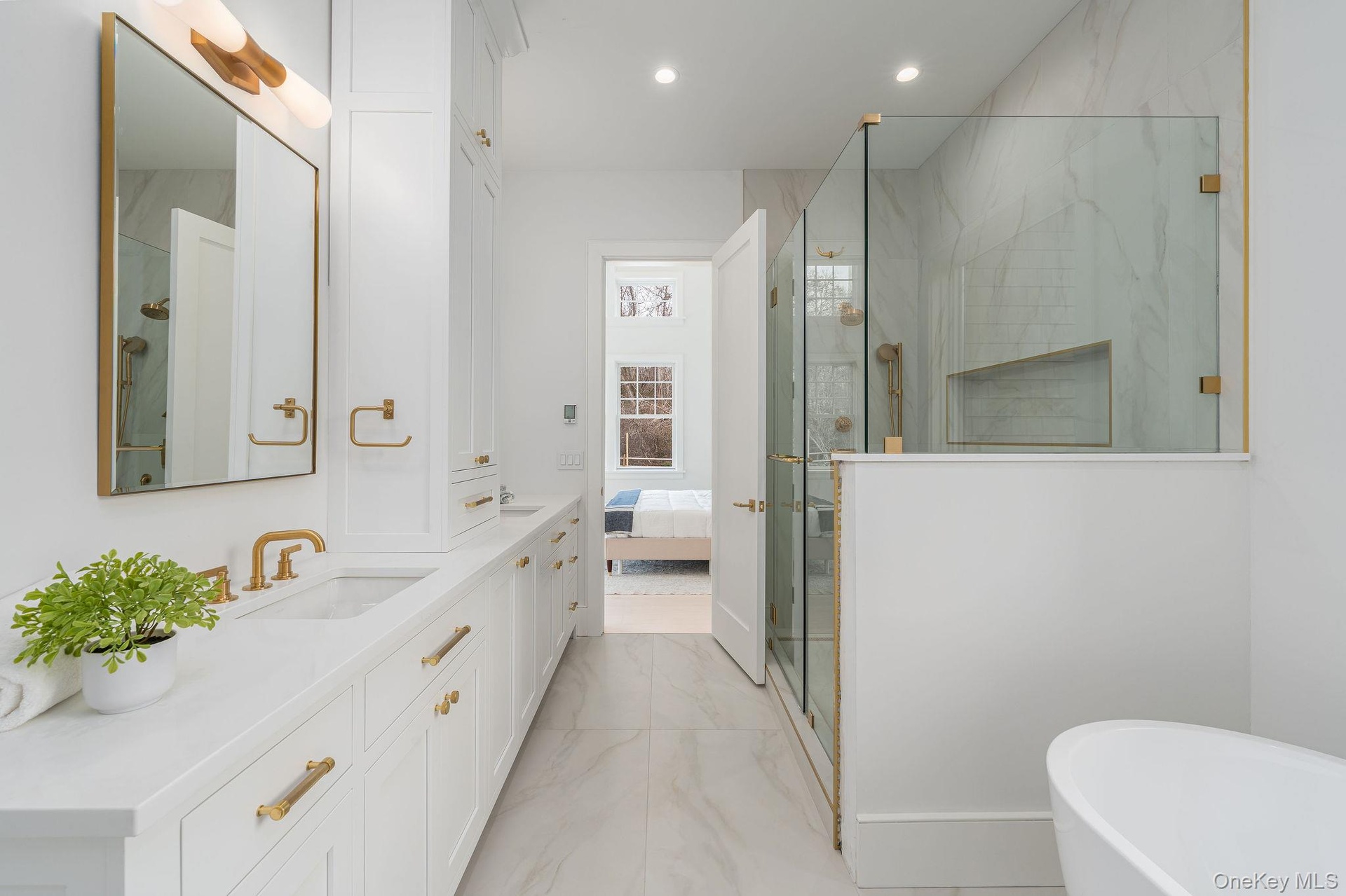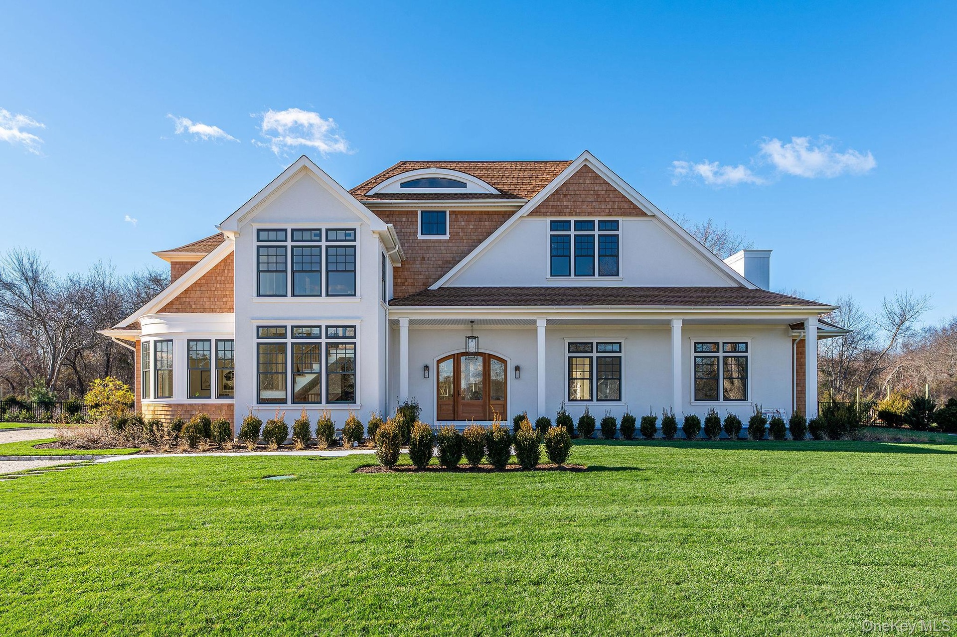 Welcome to the Laurel Collection by Marrcon. New Luxury Construction located in the heart of the North Fork's Town of Southold. This home is situated on .80 acres & boasts 4,237SF of living space with 4 bedrooms and 4.5 baths and combines clean lines of modern design with the allure of North Fork chic. This home comes with Authentic Western Red Cedar Shingle siding and a stucco accented stair tower that makes the grand foyer rise into the second story. There are 9ft high ceilings on the first and second floors in addition to vaulted and coffered ceiling details with 8-1/2” white oak floors throughout. Enjoy two bedrooms on the first-floor which includes a primary bedroom with a generous walk-in closet and private access to the masonry patio opening to the backyard pool and garden. The great room contains a 46” linear gas fireplace and is open to the well-appointed kitchen which includes custom inset cabinets, marble countertops and high-end GE Monogram appliances with a wet bar. The second floor has two bedrooms both ensuite with large tile and custom vanities. The second floor also contains a beautiful family room and a large laundry room with custom cabinetry and a sink. The basement can be finished to suit which includes 9’ ceilings. Enjoy the incredible entertainment ready backyard featuring a 20X40’ heated gunite saltwater pool, including automatic pool cover with a Napa Stone marble patio. The secluded backyard includes custom designed landscaping and masonry by our Landscape Architect.