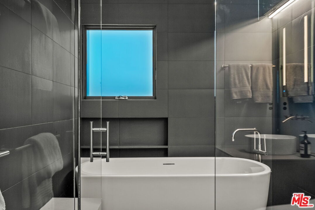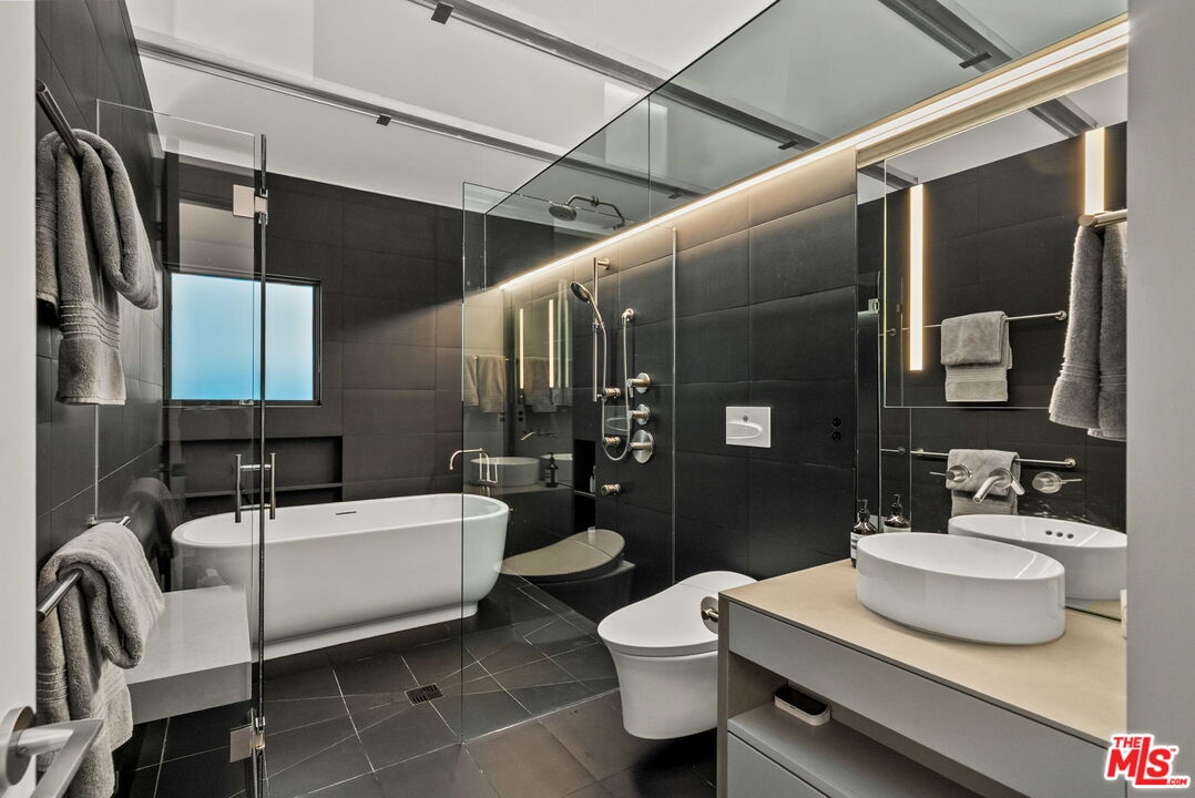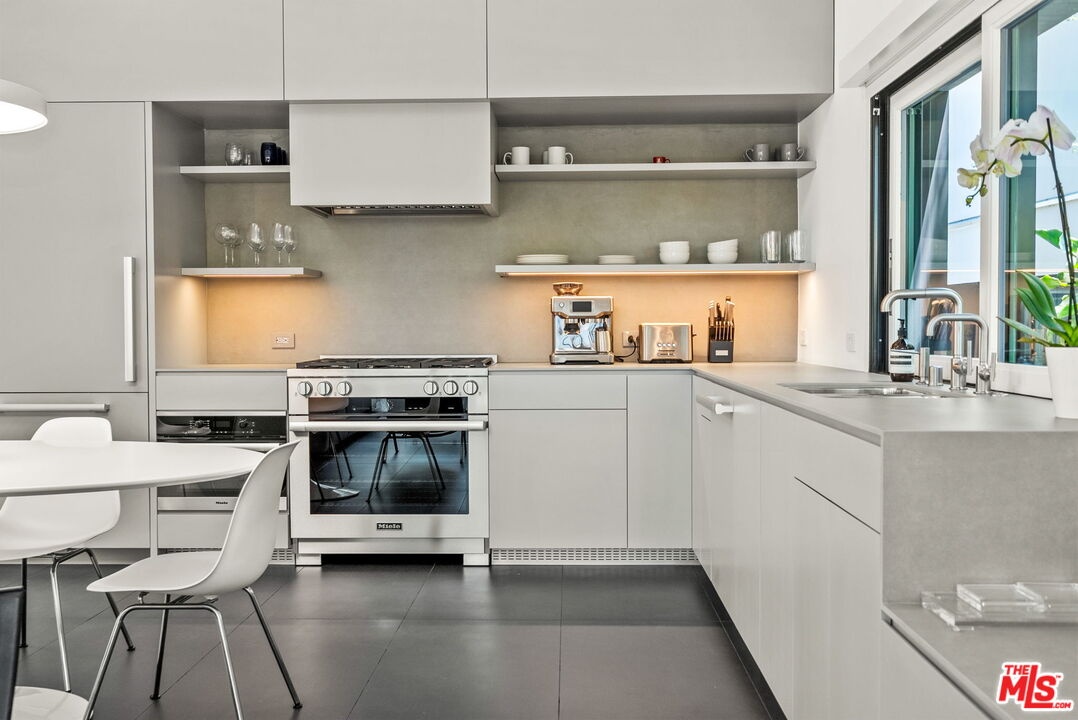 Venice Beach Custom Home - Available for lease for the first time: Exceptional location is just the start of this luxury smart home's charm. Just a half a block from Abbot Kinney Boulevard and approximately four blocks from world famous Venice Beach, this private 1-bedroom, 1-bath retreat brings the best of Venice living right at your doorstep. Walk to the beach, explore the iconic Venice Canals, or enjoy world-class shopping and dining just steps away on Abbot Kinney. Beyond the private gated entrance, a Japanese-inspired landscape and natural Ipe deck lead you to contemporary sliding doors that open wide to create a true indoor-outdoor living experience. This is a very special, very private home. Main Features: Thoughtfully designed interior/exterior: with approximately 1000 square feet, this smart home layout with high vaulted ceiling and open floor plan, blends modern elegance with effortless functionality. Custom cabinetry throughout includes a full-size pantry, numerous pull-out shelving closets and cabinets, utility/cleaning closet, and a dedicated laundry space with LG ThinQ washer and dryer. Large bedroom, closet & bathroom: The bedroom flows seamlessly into a custom walk-in closet, complete with a full-length mirror that opens to reveal hidden shoe shelving for over 20 pairs of shoes. The bathroom is a true centerpiece, featuring floor to ceiling tiles, a soaking tub for two, a walk-in shower complete with wall jets and a rain shower, wall hung full feature smart toilet, and a dramatic glass ceiling. Functional garages and exterior: This home features two separate garages with alley access offering rare versatility for Venice living. The first garage, finished in smoky grey with open entry, is pre-wired for EV charging. The second is fully enclosed, painted white, with a window and side door, making it ideal as an office, studio, or hobby space if not used for parking. Also includes additional pre-wired outlet for EV charging. A Venice Beach gem, offering elegant design, smart living, and effortless access to the very best of Venice. The property can be leased furnished or unfurnished. Furnishings are as pictured.
