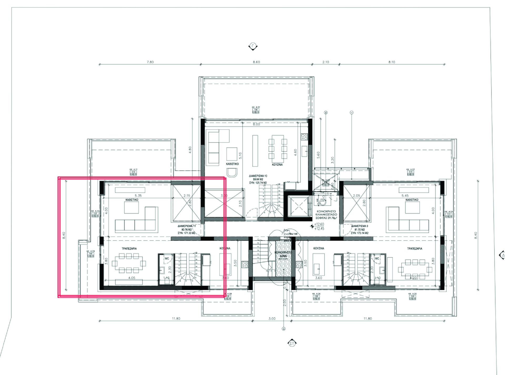 Occupying the top floor, the penthouse offers 173 sqm of internal living space, designed to maximize natural light, privacy, and functionality. Spacious open-plan living and dining areas connect seamlessly to generous outdoor spaces, where a private jacuzzi provides a refined setting for relaxation and entertaining. Large glazing enhances the sense of openness and indoor–outdoor flow, ideal for the Athens Riviera lifestyle.