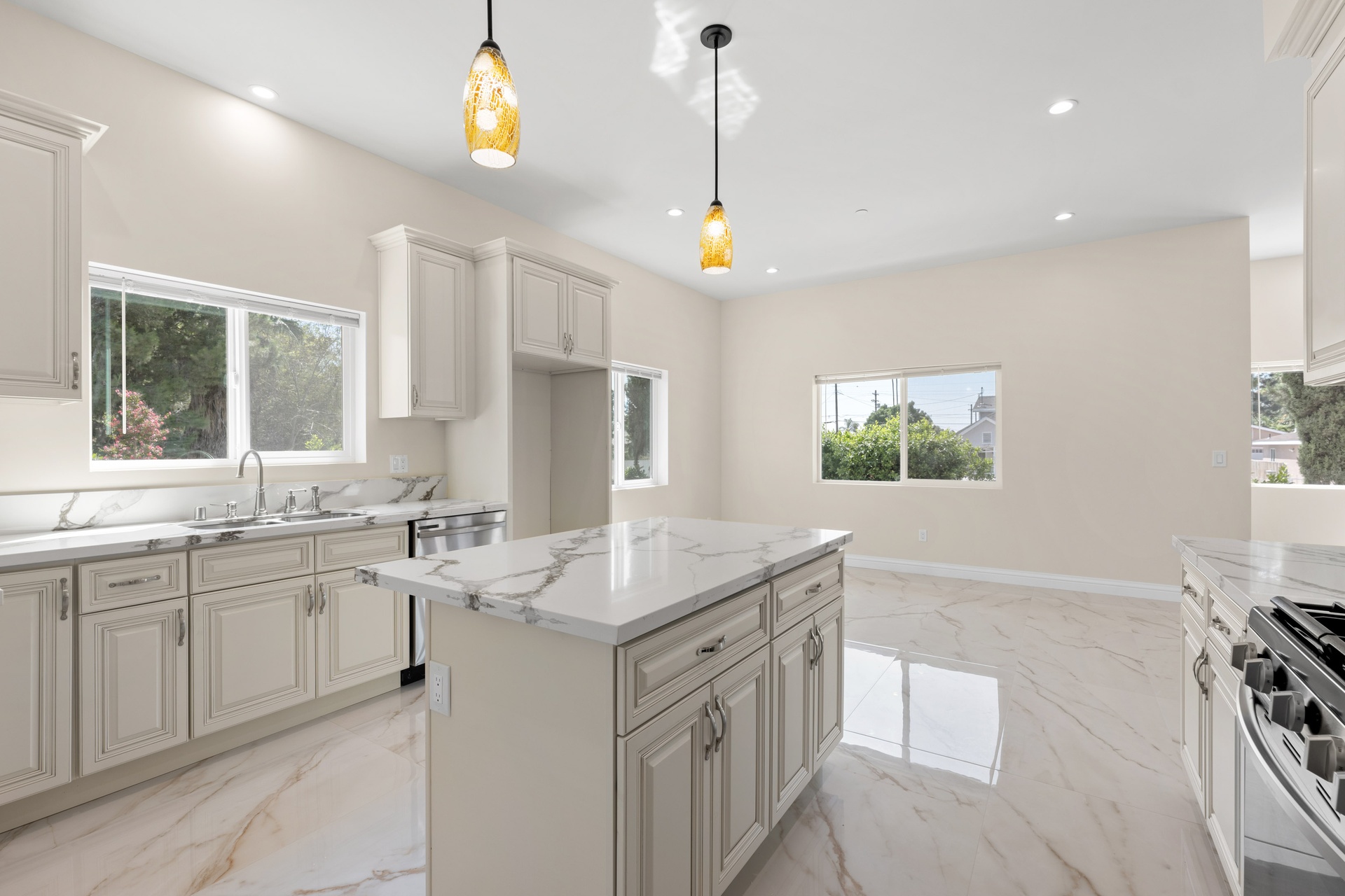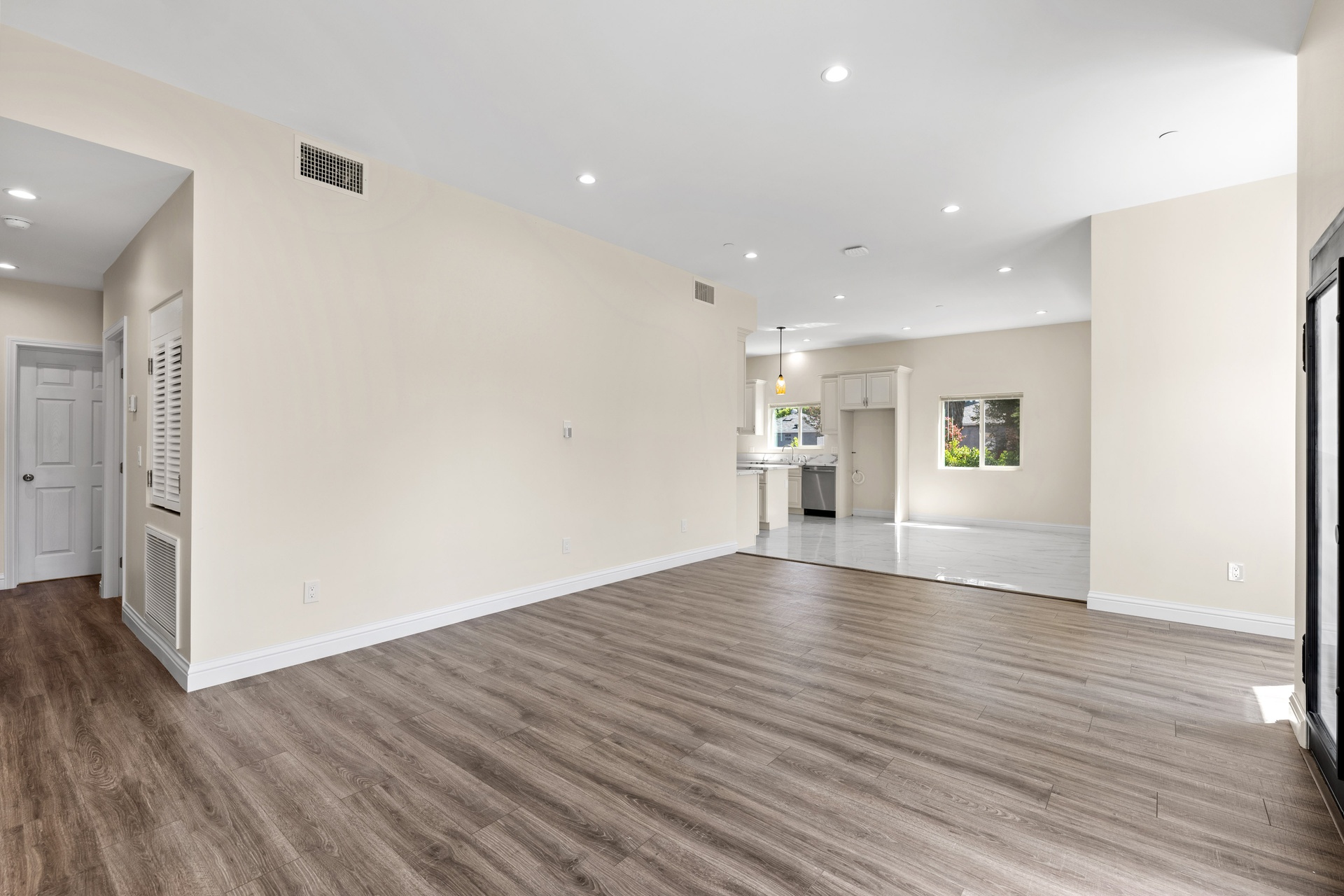 This beautifully designed unit offers a modern open-concept layout featuring laminate flooring, recessed lighting, and soaring ceilings that enhance the sense of space and light. Enjoy year-round comfort with central air conditioning and the efficiency of a tankless water heater, along with ample storage throughout.The contemporary kitchen is thoughtfully appointed with stainless steel appliances, a sleek range hood, dishwasher, garbage disposal, quartz countertops, and porcelain tile flooringperfect for both everyday living and entertaining.Bedrooms are bright and generously sized, each offering walk-in closets for added convenience. Every unit includes a private laundry area with individual washer and dryer hookups. Additional highlights include two dedicated parking spaces and separately metered utilities, ensuring efficiency and independence for each residence.Ideally located just one mile from the exciting NOHO West developmenta 25-acre mixed-use destination featuring Trader Joe's, Regal Cinemas, Nordstrom Rack, LA Fitness, and morethis property provides easy access to shopping, dining, and entertainment. Residents will also appreciate the proximity to public transportation, schools, and grocery stores.Set in a vibrant, well-connected North Hollywood neighborhood with a strong sense of community, this triplex presents an exceptional opportunity for both homeowners and investors alike. Schedule your private showing today and discover all this property has to offer.