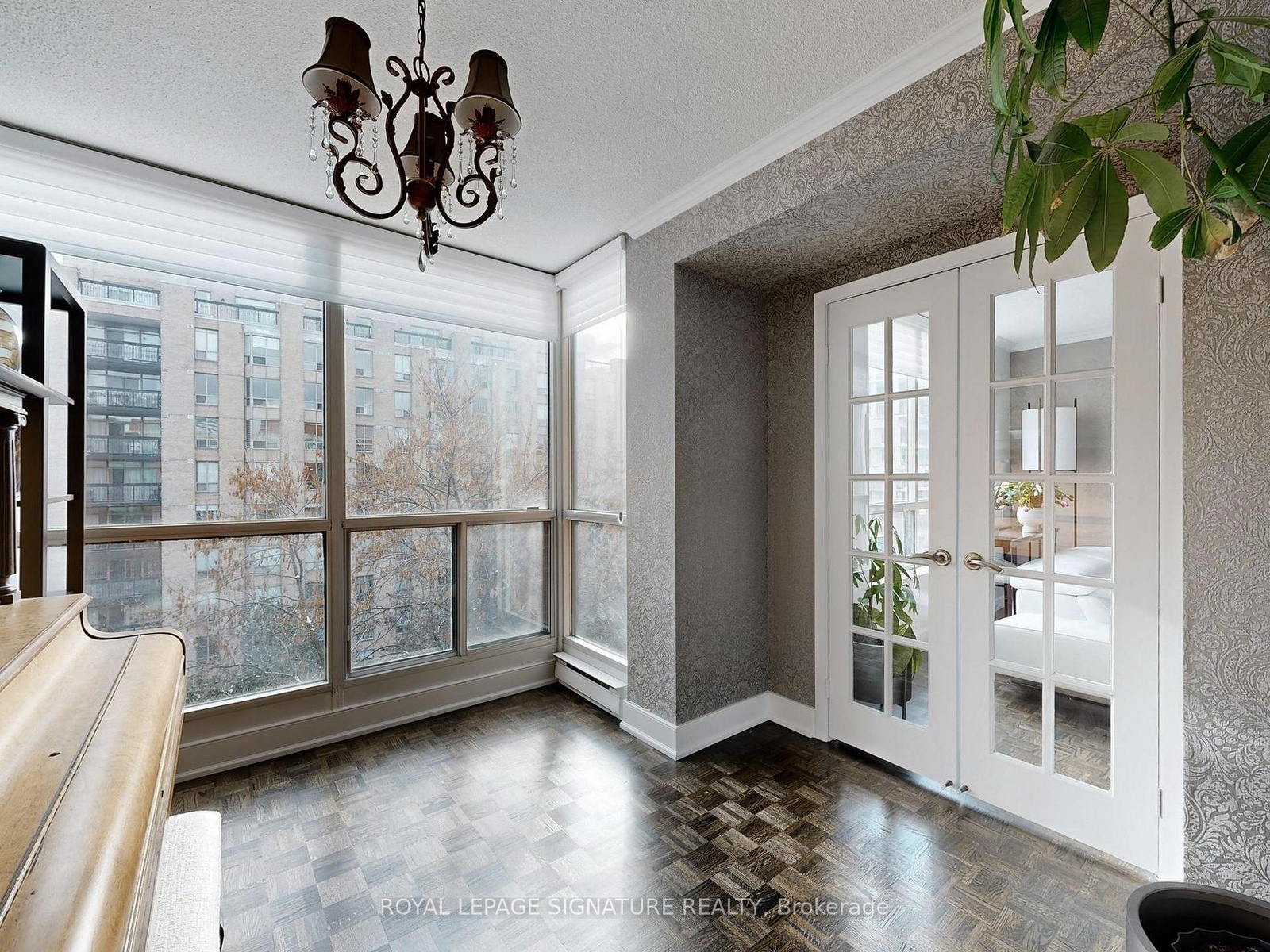 Beautifully Updated, Carpet-Free 1+1 Suite - Move-In Ready! Step into this impeccably maintained 827 sq. ft. residence offering a seamless, turnkey lifestyle in one of Toronto's most desirable locations. This bright and spacious suite features a large primary bedroom with a king-size bed and an oversized den that functions perfectly as a second room or home office. Enjoy south-facing exposure with abundant natural light and tranquil garden views. Located at Avenue Road & Bloor, you're just steps to the St. George subway station, U of T, Yorkville, the ROM, world-class shopping, dining, and every imaginable amenity. The celebrated Dunhill Club offers exceptional building amenities, including a rooftop garden with a jacuzzi, BBQ area, outdoor seating, and a peaceful backyard garden with a gazebo. Hydro, water, heating, and air conditioning are all included in the rent. A rare opportunity to enjoy comfort, convenience, and prime downtown living at its finest. (ALSO AVAILABLE FULLY FURNISHED FOR A FEE)