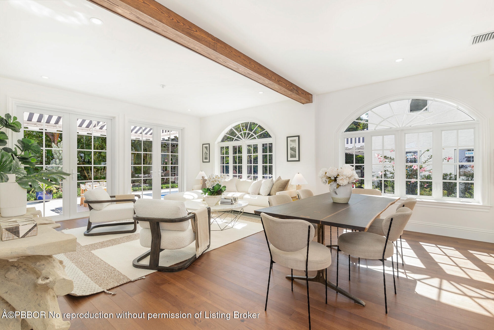 Almost all rooms have multiple exposures. The living, dining and great rooms are light filled all day long. Multiple seating areas allow you to have large groups with more intimate conversation areas. The living room and great room open to the expansive outdoor patio with ample room for exterior dining, seating, lounging and sunning, all overlooking the pool.