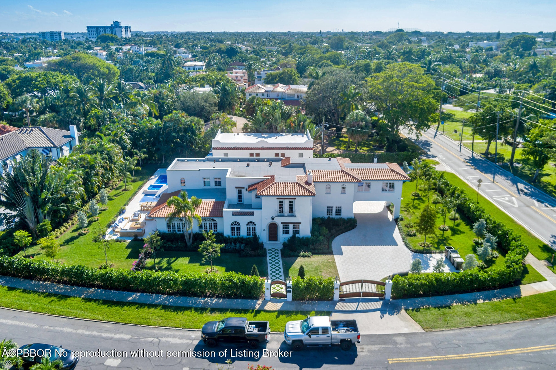 One of the largest estate properties in West Palm Beach. Located in Prospect Park, this stunning historic home has been meticulously expanded and renovated by Summit Development and redesigned by Olivia Charney Interiors. This 24,829 SF property has 2 structures comprising of 7,494 Living Square Feet and 8,800 Total Square Feet. The Main House has 5 Bedrooms and 5 baths, all en-suite, with grand entertaining spaces including a large foyer, a dining room which can seat 10-12 people and butler's bar and service area. The eat-in kitchen has a breakfast area open to the great room and there is an expansive Living Room. There's even a porte-cochere with a north entrance to the drive. Off the kitchen the hallway leads down to the 5th bedroom in the house and an office overlooking the front yard. The kitchen has Wolf dual fuel ovens and gas range, a 36" stand-alone Sub-Zero refrigerator and a 36" freezer, and a Sub-Zero beverage center. The Scullery has a 2nd sink, dishwasher, refrigerator and a 1st floor laundry. Between the kitchen and the living room is the butler's pantry which includes a Sub-Zero wine refrigerator and ice machine