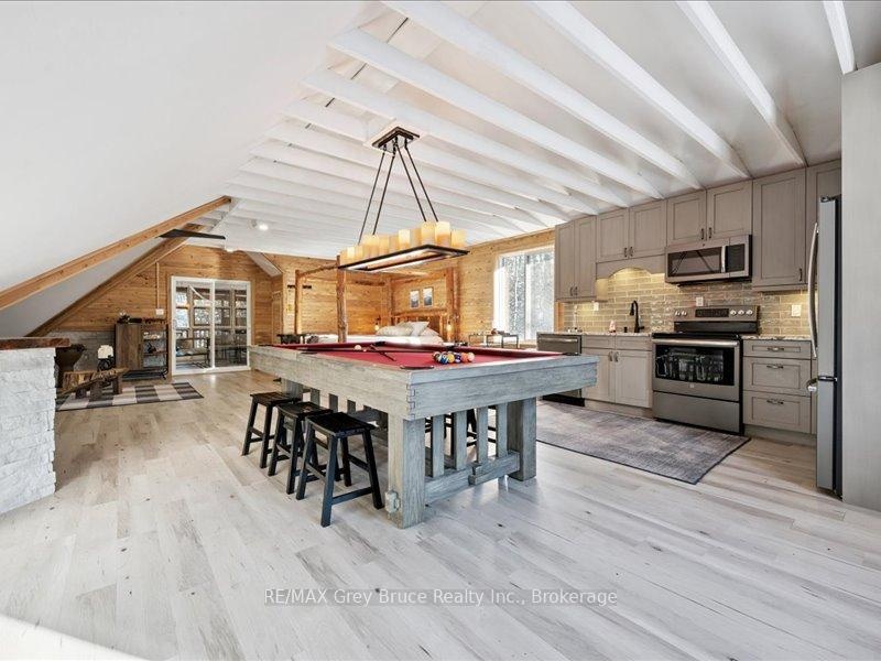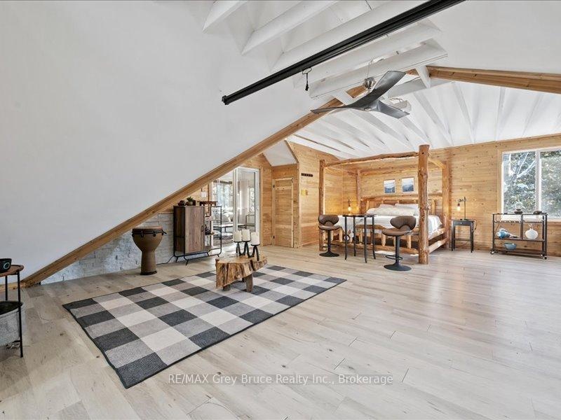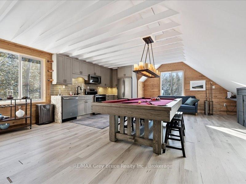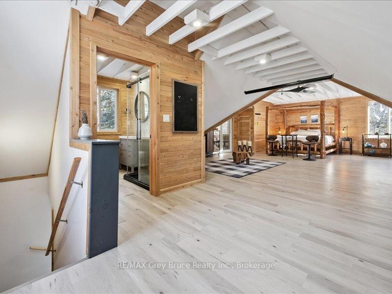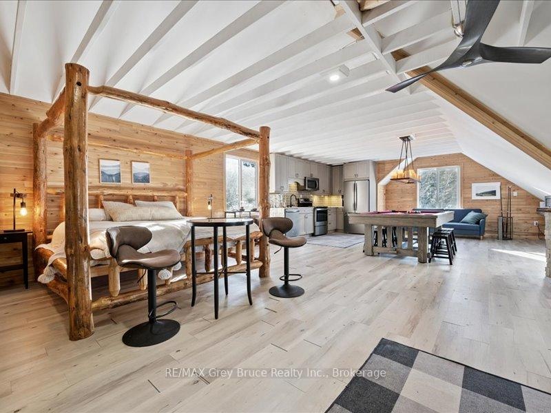Welcome to 102 Cape Chin North Road. Thoughtfully positioned away from the main residence, the loft provides a strong sense of independence while remaining immersed in nature. The suite features two bedrooms, 1.5 bathrooms, a full kitchen, main-floor laundry, and generous living spaces filled with natural light. Warm wood finishes, vaulted ceilings, and curated furnishings create an environment that feels both refined and restorative. Below, the massive heated garage, complete with a separate inlet garage, offers outstanding flexibility-ideal for secure vehicle storage, gear, hobbies, or creative pursuits. Outdoors, enjoy a private backyard carved from the forest, featuring a hot tub, two-level deck, and an upper screened-in porch-perfect for quiet mornings and evenings under the stars.In addition, the property includes access to a shared cabin, thoughtfully designed as a common retreat space. Ideal for family spillover during visits, gaming, writing, or simply stepping away, the cabin offers a flexible environment that supports creativity, connection, and moments of calm-without intruding on the privacy of the main suite. Offered fully furnished with utilities included, this executive lease is truly turnkey. Whether working remotely, transitioning between homes, or seeking a longer-term Peninsula retreat, this residence delivers a rare balance of comfort, discretion, and connection to nature.Located minutes from the Bruce Trail, Georgian Bay, Lion's Head, and Tobermory, this is an opportunity to experience the Bruce Peninsula not as a visitor-but as a resident.Available as an Executive Lease. Inquiries by appointment only.