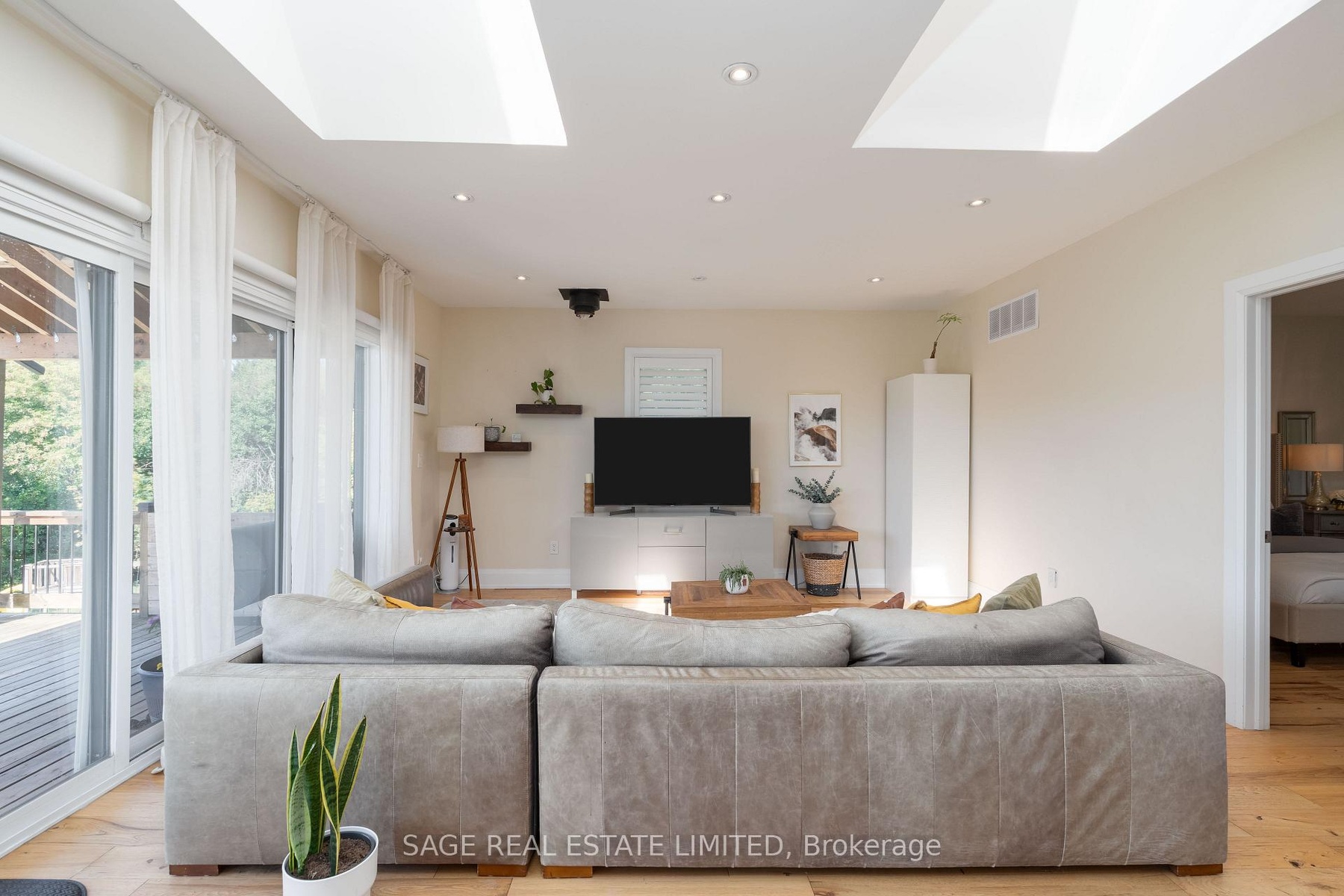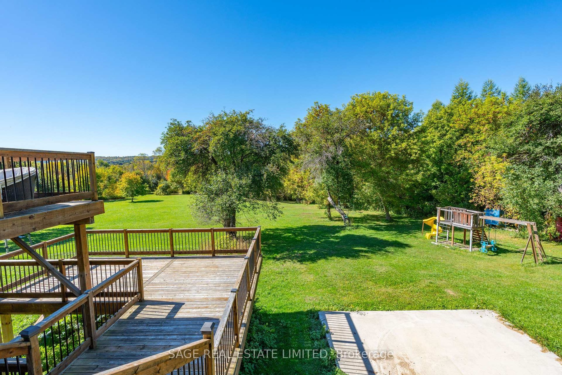 This isn't just a house, its a setting. Fully renovated and furnished, this modern farmhouse offers open, light-filled spaces with over 12 acres of land to enjoy. Floor-to-ceiling windows frame views of mature trees and open onto a sprawling multi-level deck, more than 3,000 sq. ft. combined, perfect for family gatherings, morning coffee, or quiet evenings. Skylights add even more natural light to the main living area. The kitchen is designed for function with stainless steel appliances, quartz counters, and a centre island that doubles as a dining area. The primary bedroom includes a 6-piece ensuite and a walk-in closet with custom organizers. Two additional bedrooms share a Jack & Jill 4-piece washroom, plus theres a powder room and ensuite laundry for everyday ease. Outdoors, the property delivers room to play, entertain, and explore, with expansive decks, a playground, open fields, forested areas and a private river walk. All just minutes from Caledon Village, local schools, and conservation areas, with easy access to Hwy 10.