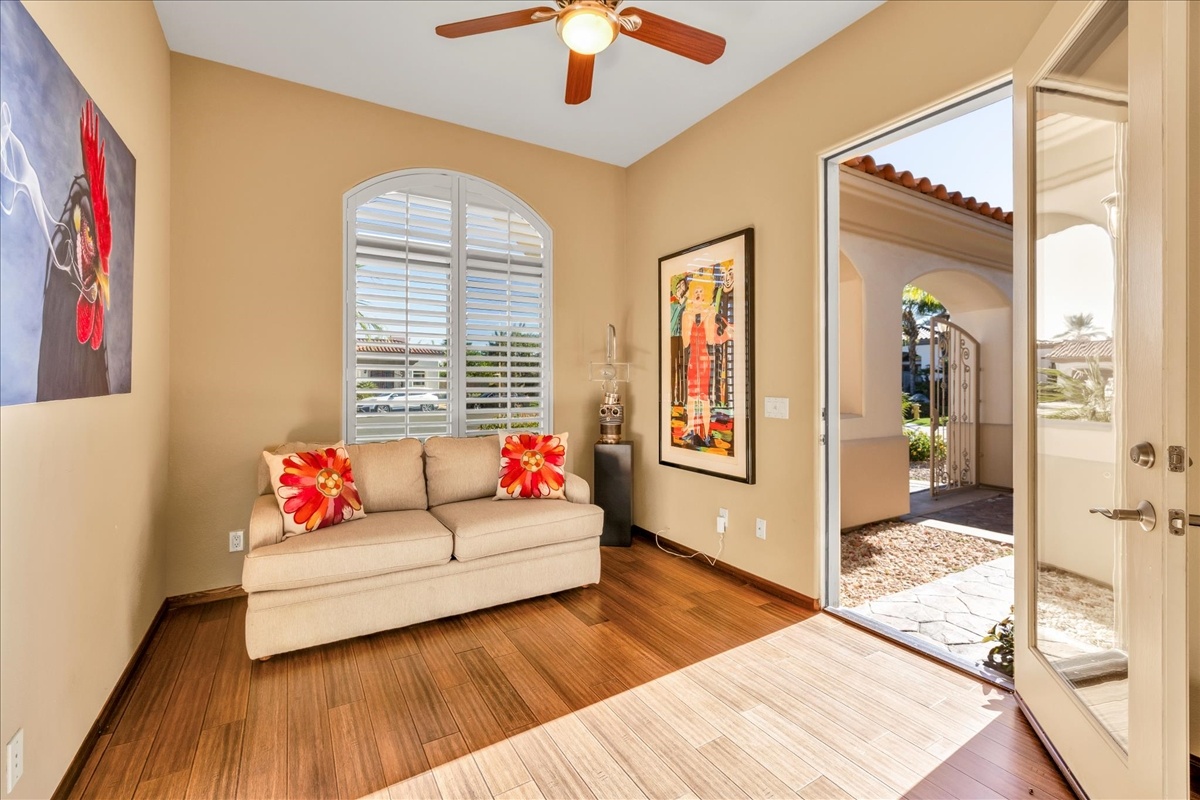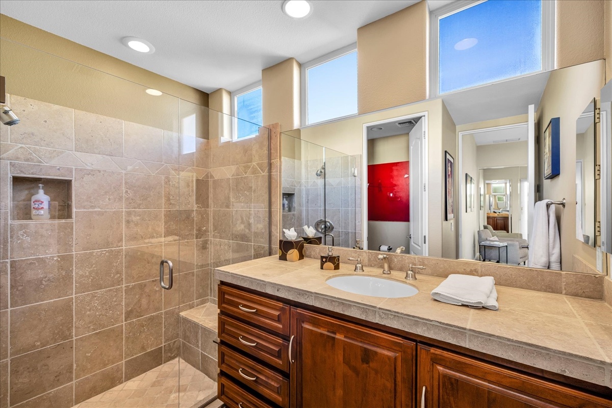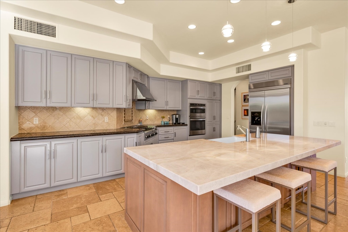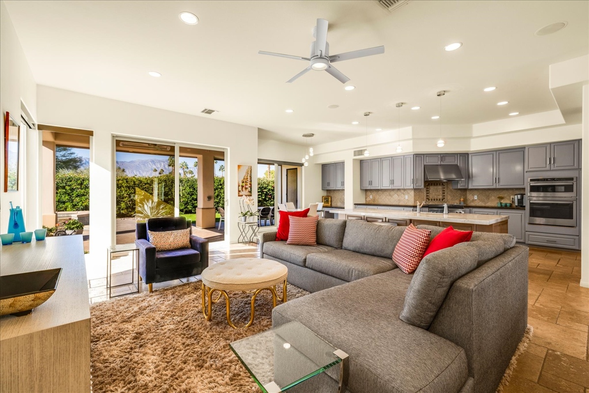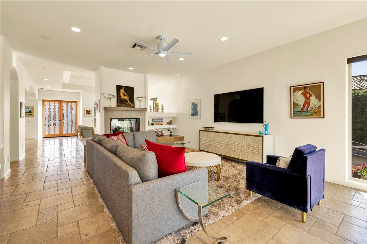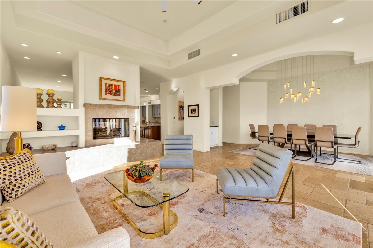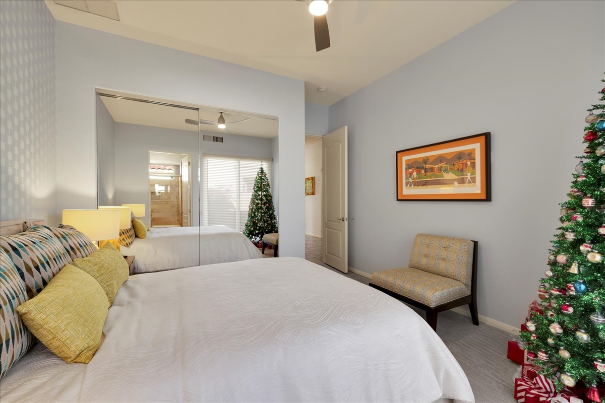 Wake up each day to luxurious Rancho Mirage living in the exclusive gated enclave of Carrera Estates. Set on an oversized lot with breathtaking San Jacinto Mountain views, this residence invites a lifestyle centered on elegance, entertaining, and privacy. Sunlight pours through expansive windows, illuminating soaring 14 foot ceilings, travertine floors, and open living spaces designed to gather and relax. Featuring 4 bedrooms, 5 bathrooms, including a casita with a private entry to welcome guests. Gather in the gourmet kitchen which seamlessly flows into the great room and formal dining areas. Retreat to the serene primary suite with its high ceilings, dual vanity bath, and walk-in closet. All bedrooms are ensuite with patio access. Evenings are best enjoyed outdoors, where lush landscaping surrounds a custom saline Pebble Tec pool and spa beneath a star-studded desert sky. Home has solar panels and a climate-controlled 3-car garage, plus a private gated entry. Minutes to Eisenhower Hospital and golfing. Enjoy a stroll to nearby dining, shopping, and entertainment. This home offers more than a place to live. It delivers a refined desert lifestyle.