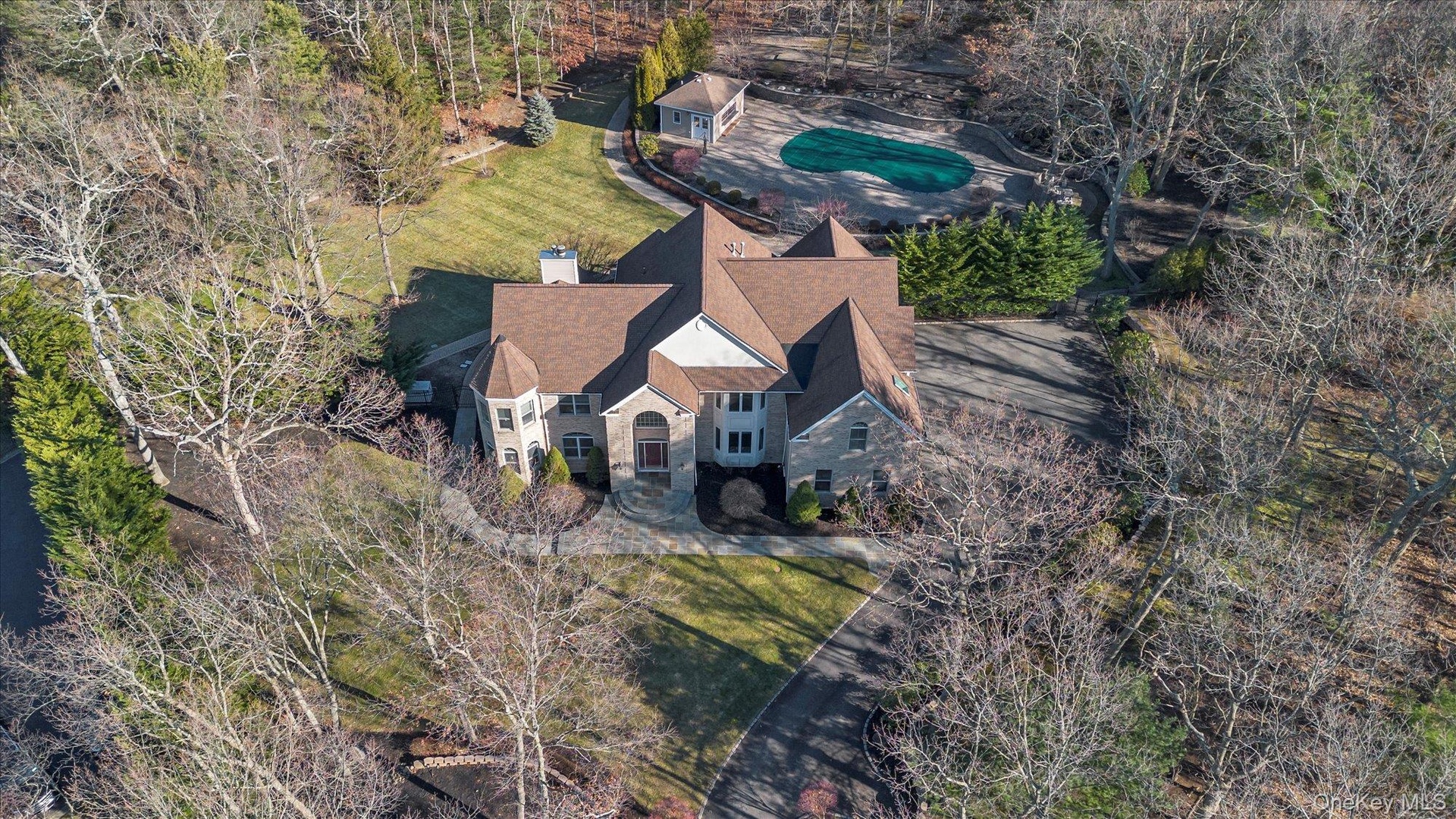 Welcome to this stunning post-modern Cortez brick Colonial, set on a meticulously manicured 2.2-acre property within a private cul-de-sac in the bucolic hamlet of Fort Salonga. This exceptional residence offers refined luxury, thoughtful design, and serene surroundings.