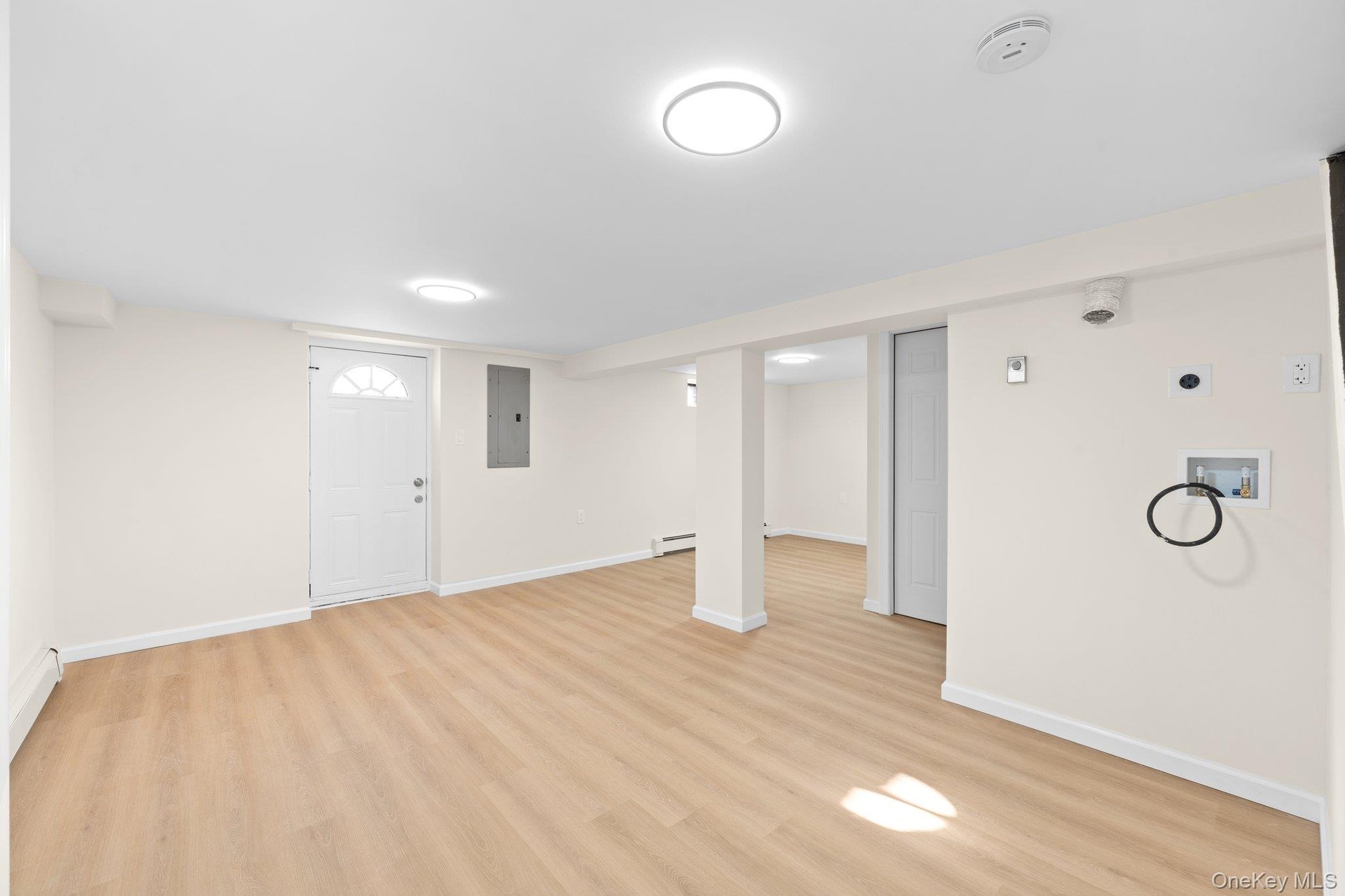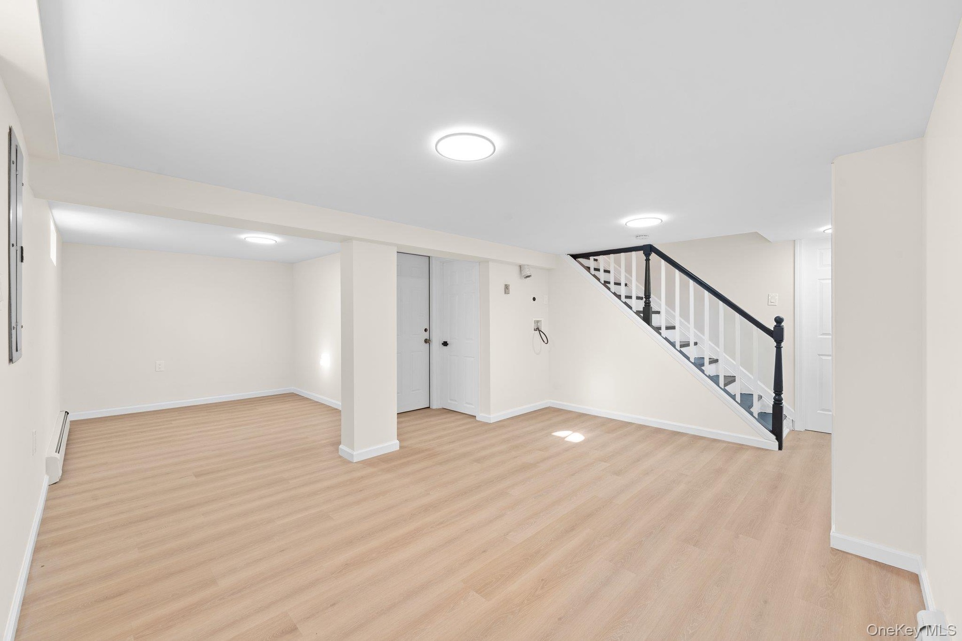 Upstairs, new flooring leads to two additional generously sized bedrooms with ample closet space. The finished basement adds valuable living area and includes a dedicated, fully renovated bathroom, outside entrance, and additional unfinished storage space—ideal for a home office, recreation area, or guest suite.