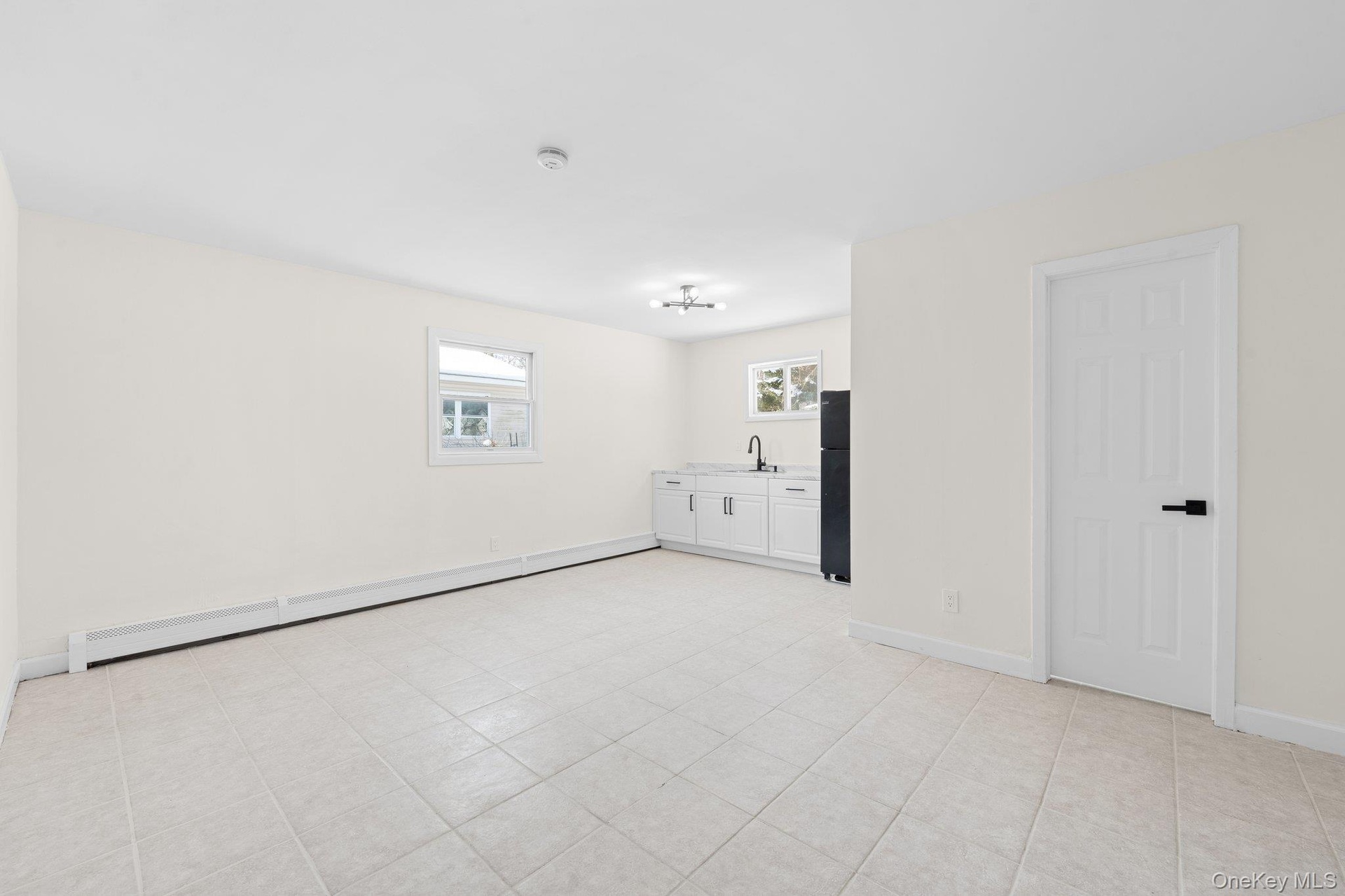Inside, you’ll find a bright and open floor plan featuring hardwood floors, fresh paint, new trim and doors throughout. The fully renovated chef’s kitchen is the heart of the home, showcasing shaker cabinetry, stainless steel appliances, and a stylish tiled backsplash. The first floor offers two spacious bedrooms and a wall-to-wall tiled full bathroom, providing flexible and convenient living.