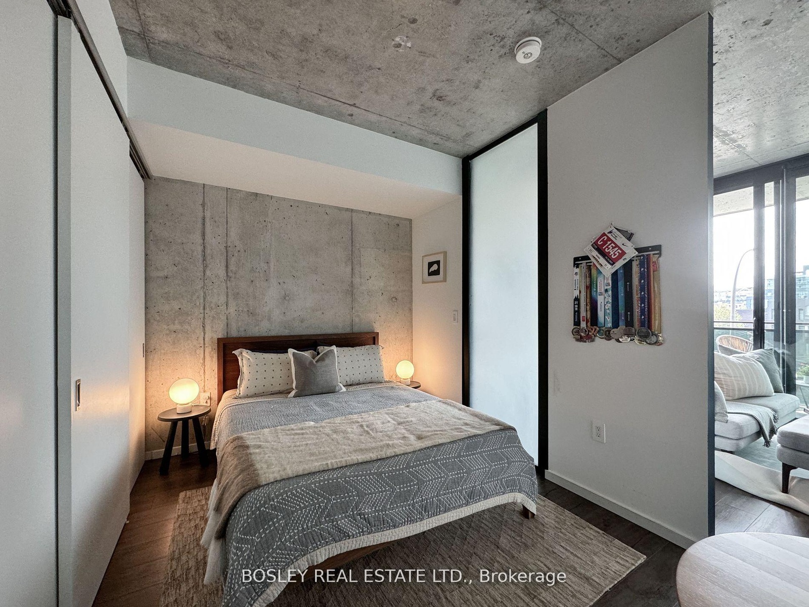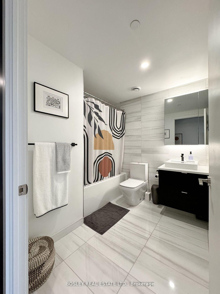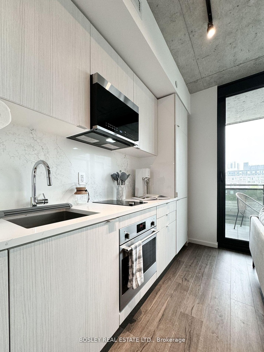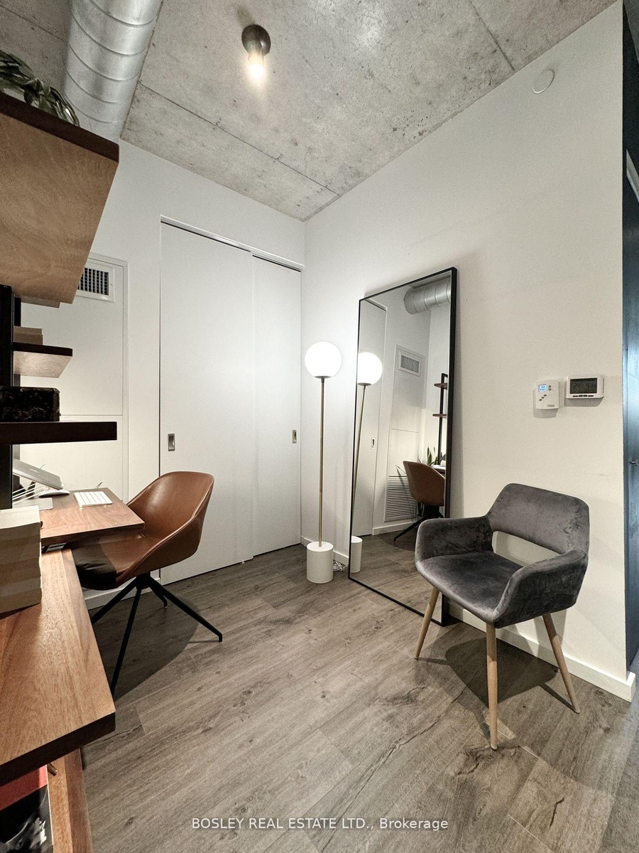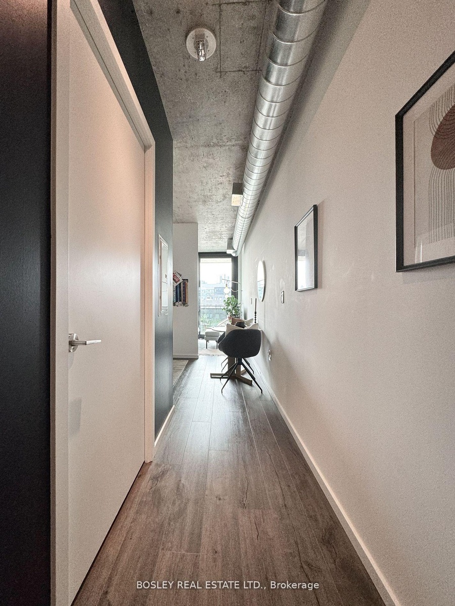 Discover This Bright & Airy Yet Cozy Urban Suite Wrapped In Bold Architectural Modernity - A Perfect Starter Suite Or Pied-A-Terre! Suite 410's Lofty List Of Features Include 9ft Ceilings With Exposed Concrete & Ducts, Expansive Floor-To-Ceiling Windows With An Unobstructed North-West View, An Oversized Balcony, Closets Aplenty, Engineered Hardwood Floors, And More. Host Cute Summer Dates Or Unwind & Relax Under The Glow Of Stunning Sunsets On The Oversized Balcony! Work With Ease And Comfort In The Den Space That Can Also Flex As A Formal Dining Space, Dressing Area, And More. Slumber In Peace In The Intimate Bedroom Retreat That Features An Expansive Closet And Exposed Concrete Feature Wall! Moreover, The Oversized Bathroom Is Perfect For Self-Care Spa Nights + Features Chic Floor-to-Wall Tiling + 5 Ft. Turn-Radius. Building Amenities Include A Large Gym/Workout Space, Rooftop Entertainment Lounge With Outdoor Terrace For Larger Gatherings, And More. Local Amenities Abound: Picnic In New Frosted Glass Partition To Create Demarcation Of Space Between Br And Living! 2 Bike Racks + Locker Inclusive; Great Young Urban Professional Condo Community, Attentive Concierge, In-House Manager + Super.