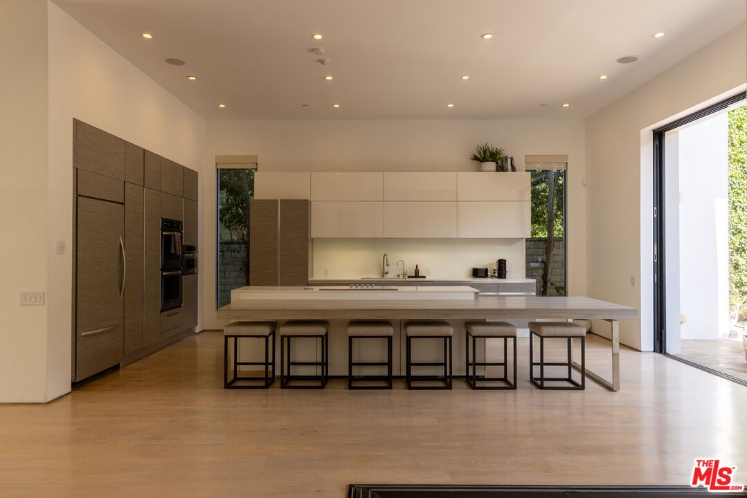 Located in the heart of Beverly Grove, this modern home offers a great mix of style, comfort, and space. With about 4,000 square feet, it features 5 bedrooms and 6 bathrooms - all en suite - giving everyone plenty of privacy. Willing to sell furnished or unfurnished. Inside, you'll find soaring ceilings and a striking floating staircase that add to the open, airy feel. The kitchen is fully equipped with high-end appliances, perfect for cooking or entertaining. The living room, complete with a fireplace, opens smoothly to the backyard, creating an easy flow between indoor and outdoor spaces. The backyard is a true retreat, with a saltwater pool, spa, mature landscaping, and plenty of room for relaxing or hosting. There's also an outdoor fireplace and TV area that make it a great spot to unwind with friends or family. The master suite stands out with its own fireplace, walk-in closet, sundeck, and a luxurious bathroom with Porcelanosa finishes. The home is also outfitted with smart technology and solar panels for energy efficiency. This gated property offers both privacy and convenience, just minutes from The Grove and the Sunset Strip - some of LA's best dining, shopping, and entertainment. If you want a stylish, comfortable home with plenty of room to live and entertain, 132 N Laurel Ave is a wonderful choice.