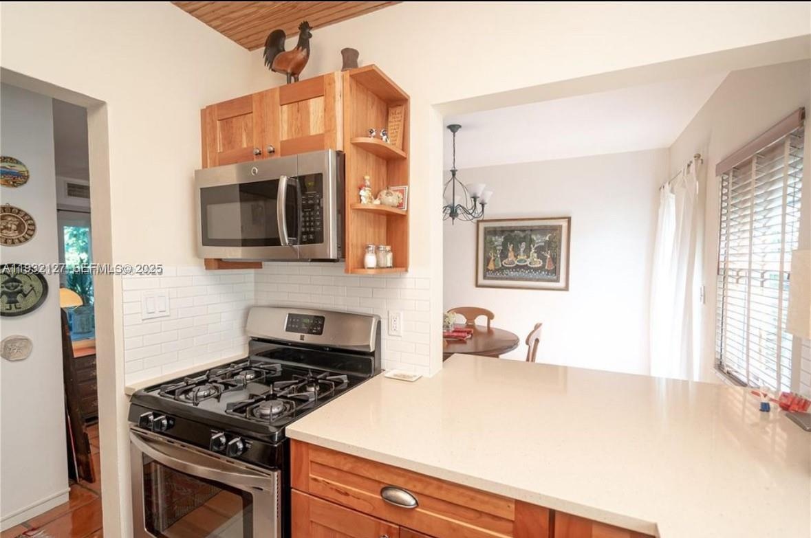 Boho-style charm in this Miami Shores garden first-floor apartment home with amazing natural light. Located in Shores Plaza East, a lush boutique community just east of Biscayne Blvd, this 2-Bed/2-Bath home features a fully renovated open kitchen with gas range & warm wood tones, terracotta floors in living area, terrazzo in primary BD, a designated screened-in terrace/lanai (over 230 SqFt), split floor plan, impact windows & doors, central AC, bath tubs in both bathrooms, and low HOA. This condo feels more like a home than a condo, with beautifully landscaped grounds & charming 2-story buildings. You will feel right at home with the warm and inviting energy of this unique property. Professional photos coming soon!