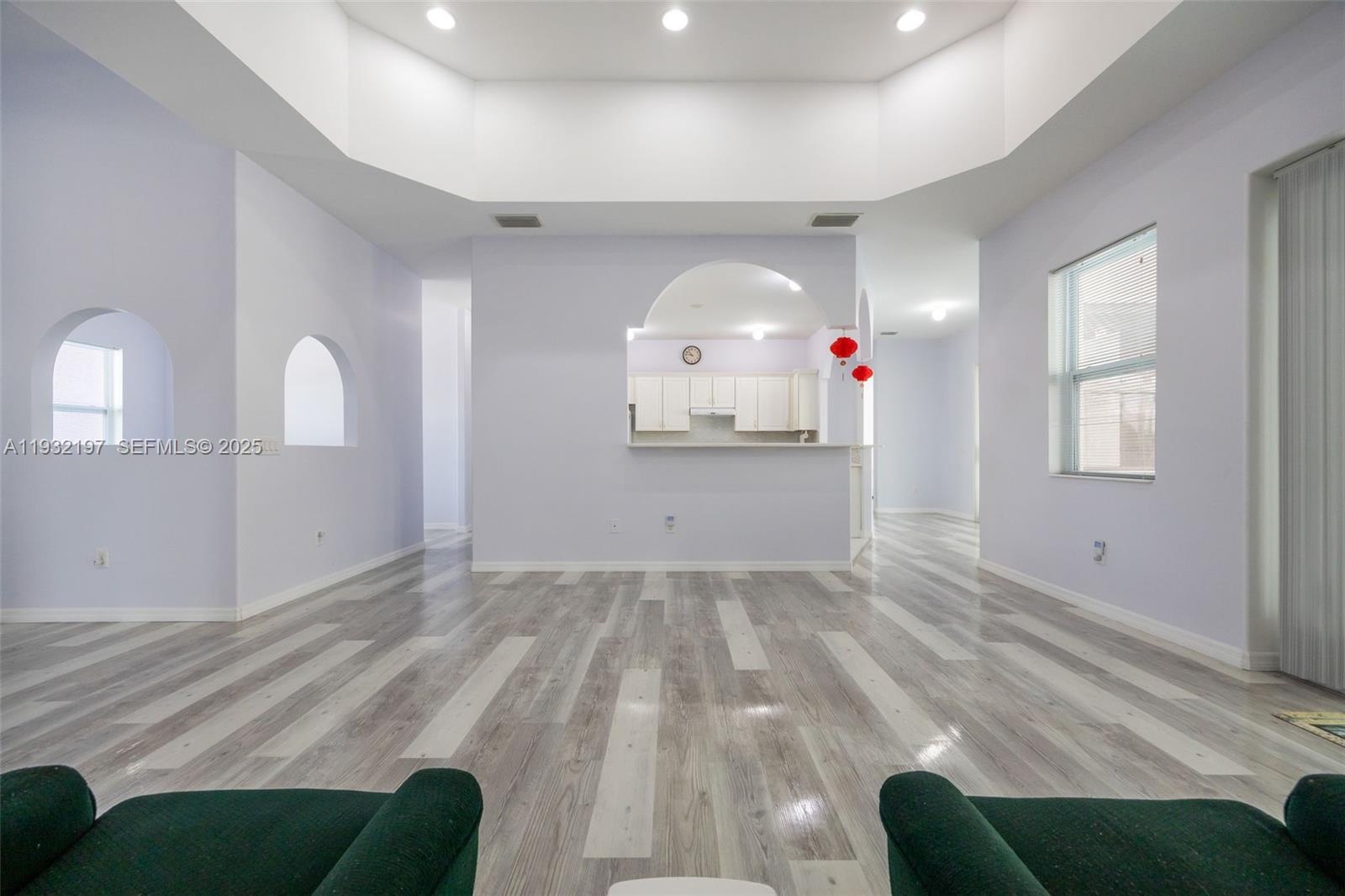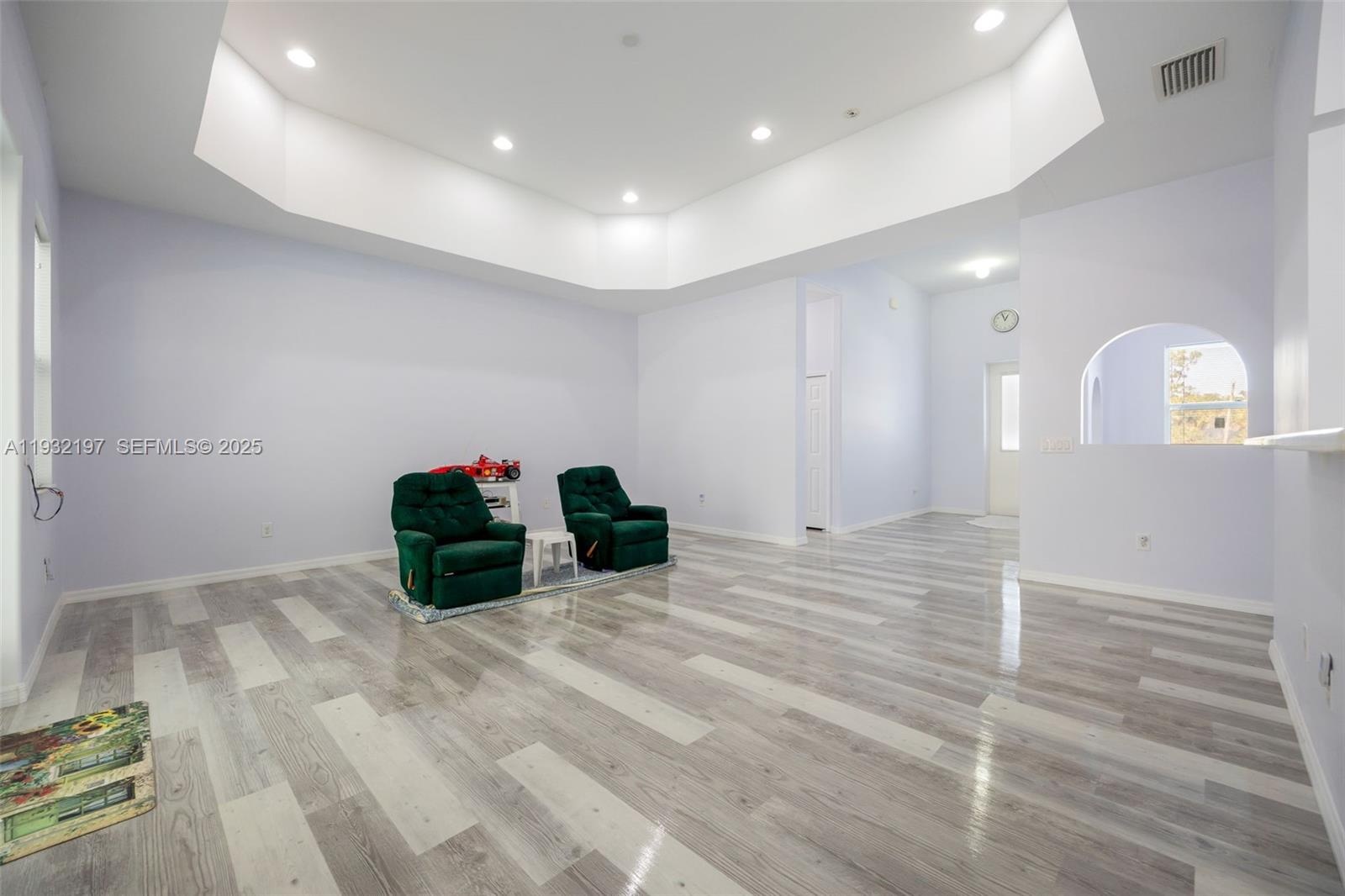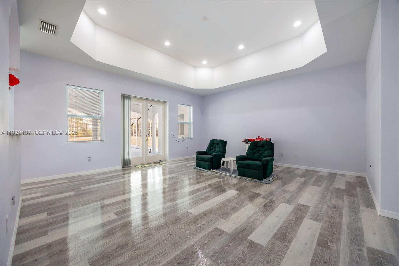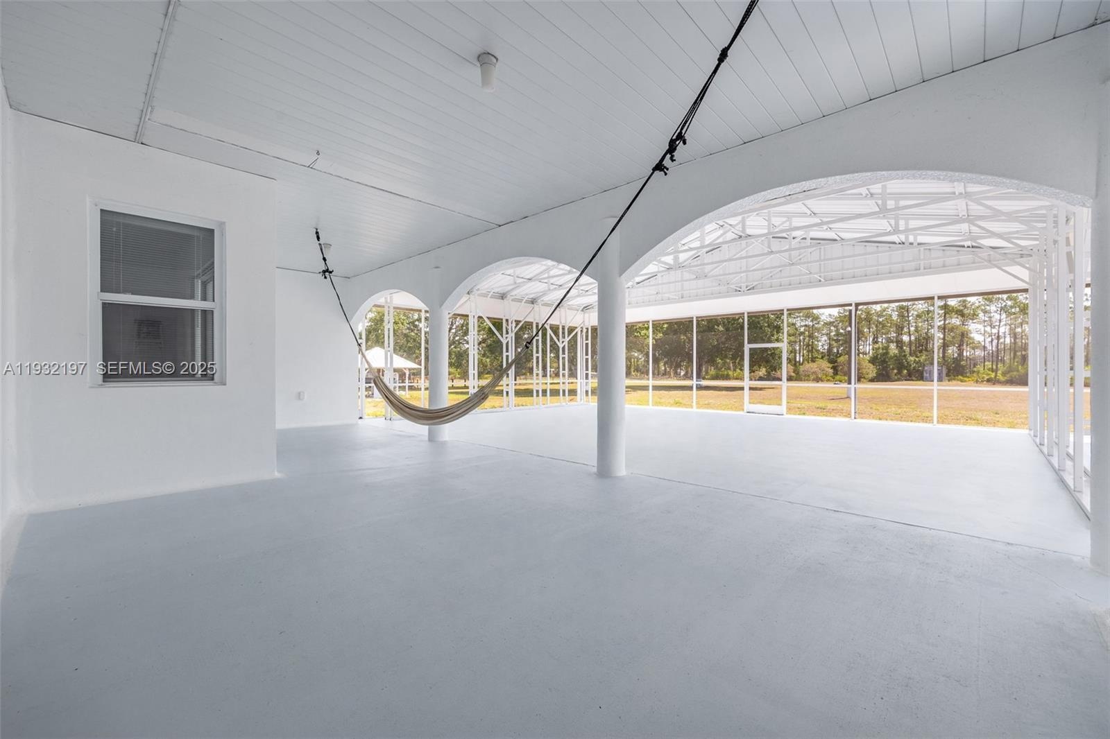 Outstanding in its Field! You will find this Custom Built 4 bedroom, 3 bath home placed in the middle of 4.85 acres of QUIET! Located down a peaceful, dead end road you will find this well built home with a metal roof and completely fenced offering years of carefree living. Inside you will find and easy to love floorplan and very spacious rooms. A well designed kitchen is the heart of the home offering an abundance of quartz countertops, a small island worktable, a gas stove (there is an electric plug installed behind the stove if you want to change to electric) and breakfast bar. High 10, 12 and 13 foot ceilings and 8' doors throughout with abundant windows lend to plenty of natural lighting. Step outside onto the under truss back lanai and into a massive,14 gauge steel sturdy screened porch where possibilities are endless, party area, roller skating, this porch is amazing and is sure to please all. There is an abundance of outdoor electrical plugs, Nothing was overlooked with this solidly built home. A 45 ' container exist on the property and will convey. (One guest bathroom is completed, The master bathroom has room and plumbing for a tub and still needs vanities. The bathroom for the 2 bedrooms on the opposite side of the home still needs the vanities.) Seller is selling the home "AS Is". Finish the bathrooms to your own style and enjoy a Tranquil Country Lifestyle.