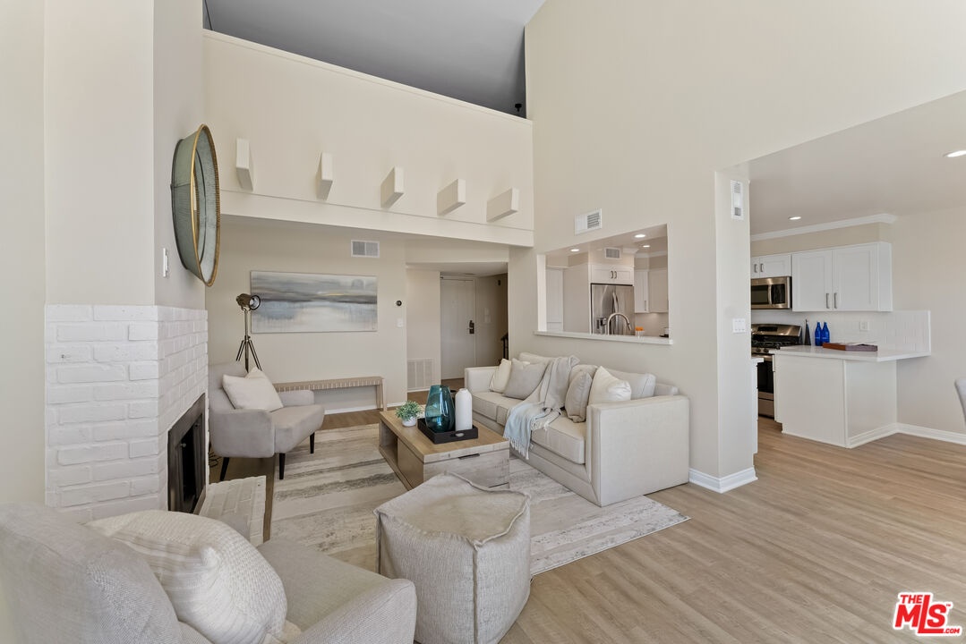 This beautifully designed townhouse-style penthouse is a rare offering in an A+ Santa Monica location, within a top-rated school district. The HOA just completed a major 3.4 million dollar building-wide renovation project that includes new roofing, gutters and downspouts, waterproofing and decking systems, upgraded drainage, podium deck improvements, fresh stucco and paint, offering exceptional long-term value and peace of mind to the next owner. Flooded with natural light, this serene and spacious south-facing home features an open, airy layout and an expansive private rooftop deck with panoramic city and treetop views. Indoor-outdoor living is seamless, with dramatic high ceilings, a white brick fireplace, and large sliding glass doors that open to a sunny outdoor seating area off the living room. The fully renovated designer kitchen includes high-end finishes and a breakfast bar, perfect for both entertaining and everyday living. Recent upgrades throughout the unit include new dual-pane windows (2021), a brand new AC unit (2024), new flooring in the loft (2020), and custom closet systems installed (2022). The layout offers a luxurious primary suite with a spa-like en-suite bath and an oversized walk-in closet, a spacious second bedroom with its own full bath, and a large loft that functions perfectly as a third bedroom, home office, or creative space. Additional highlights include in-unit washer/dryer, generous storage, and stylish finishes throughout. This home is part of a well-maintained, secure building featuring resort-style amenities including a pool and spa, gated side-by-side parking, a large storage room, elevator access, earthquake insurance, and strong financial reserves. All of this is just minutes from the best of Santa Monica, Mar Vista, and Brentwood close to premier restaurants, shops, parks, and markets. This move-in ready penthouse blends luxury, location, and lifestyle truly a must-see dream home.
