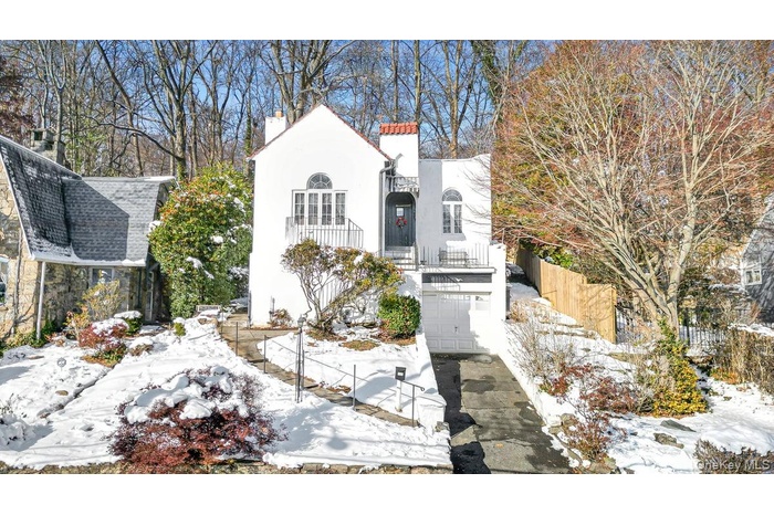 Exceptional pride of ownership defines this classic 3-bedroom, 2-bath residence, gracefully situated on a quiet, tree-lined cul-de-sac, nestled away in the heart of Bryn Mawr, offering rare privacy and serenity just 25 minutes north of Manhattan. Offered for the first time in over 50 years, the inviting interior features a sunlit living room with vaulted ceilings, highlighted by a gas fireplace, original hardwood floors, and timeless architectural details throughout. The thoughtfully designed layout includes two generously proportioned bedrooms along with a well-appointed primary bedroom, quaint hall bathroom, providing both comfort and flexibility. The lower level expands the living space with a versatile family room, full bathroom, ample storage and utility areas, and direct access to the garage—ideal for everyday living and entertaining. The exterior showcases enduring character with a stucco facade and distinctive slate Mediterranean-style roof. Recent improvements include a new gas boiler plus it features Central Air conditioning along with ample closets throughout as well.. Step outside and discover a tranquil private oasis with a backyard that borders the Dunwoodie Golf Course, creating a picturesque setting for gatherings, relaxation, and enjoying long summer evenings in complete privacy. Perfectly positioned for today’s commuter, just minutes from buses, Bronxville train station, shopping, major parkways and Bike/walking Trail. The perfect blend of comfort, convenience, and affordability, this special home is your own private sanctuary just north of New York City.